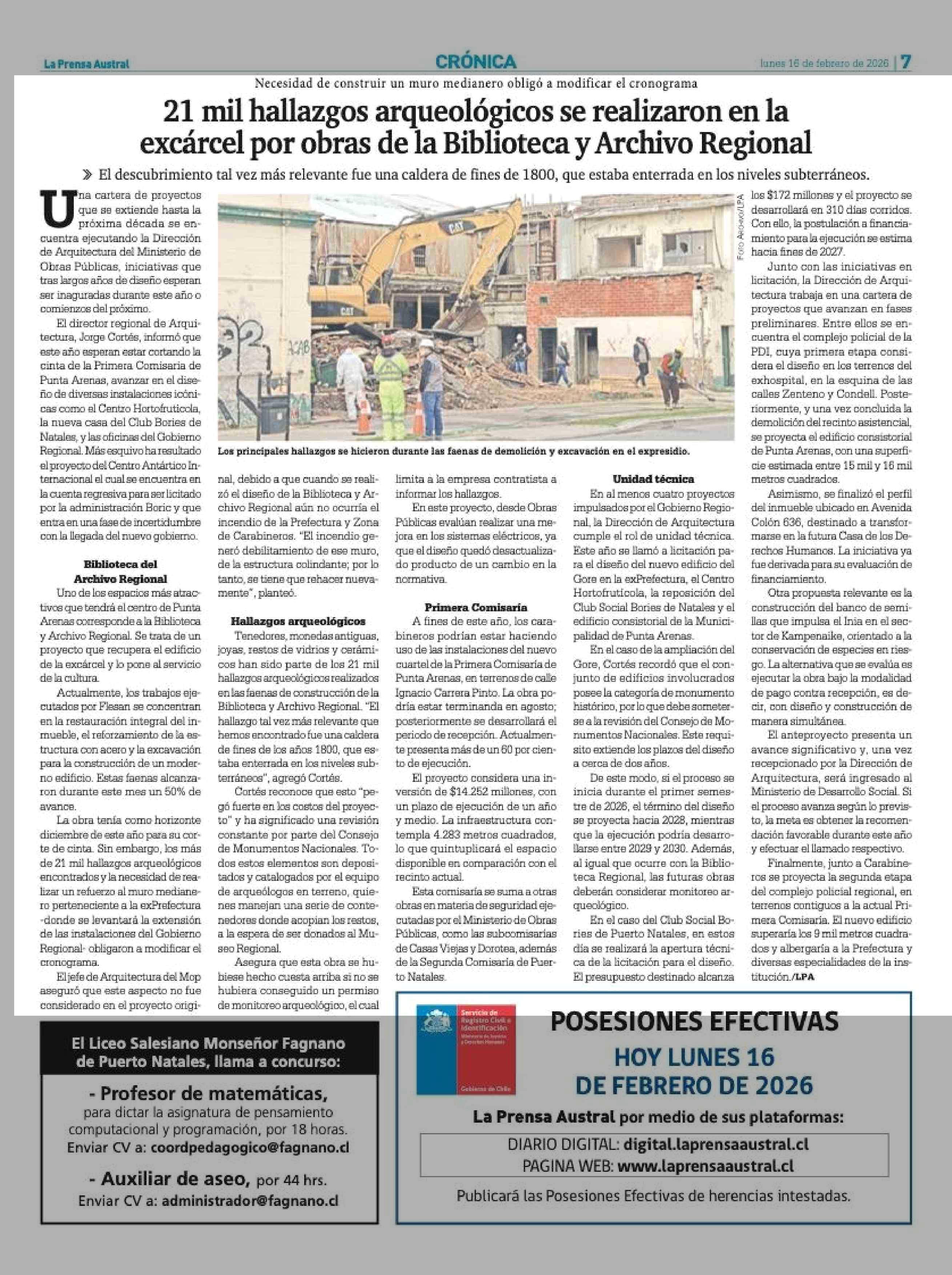 Fecha: 16-02-2026 Sector: Noticia general Región: Región de Magallanes y de la Antártica Chilena