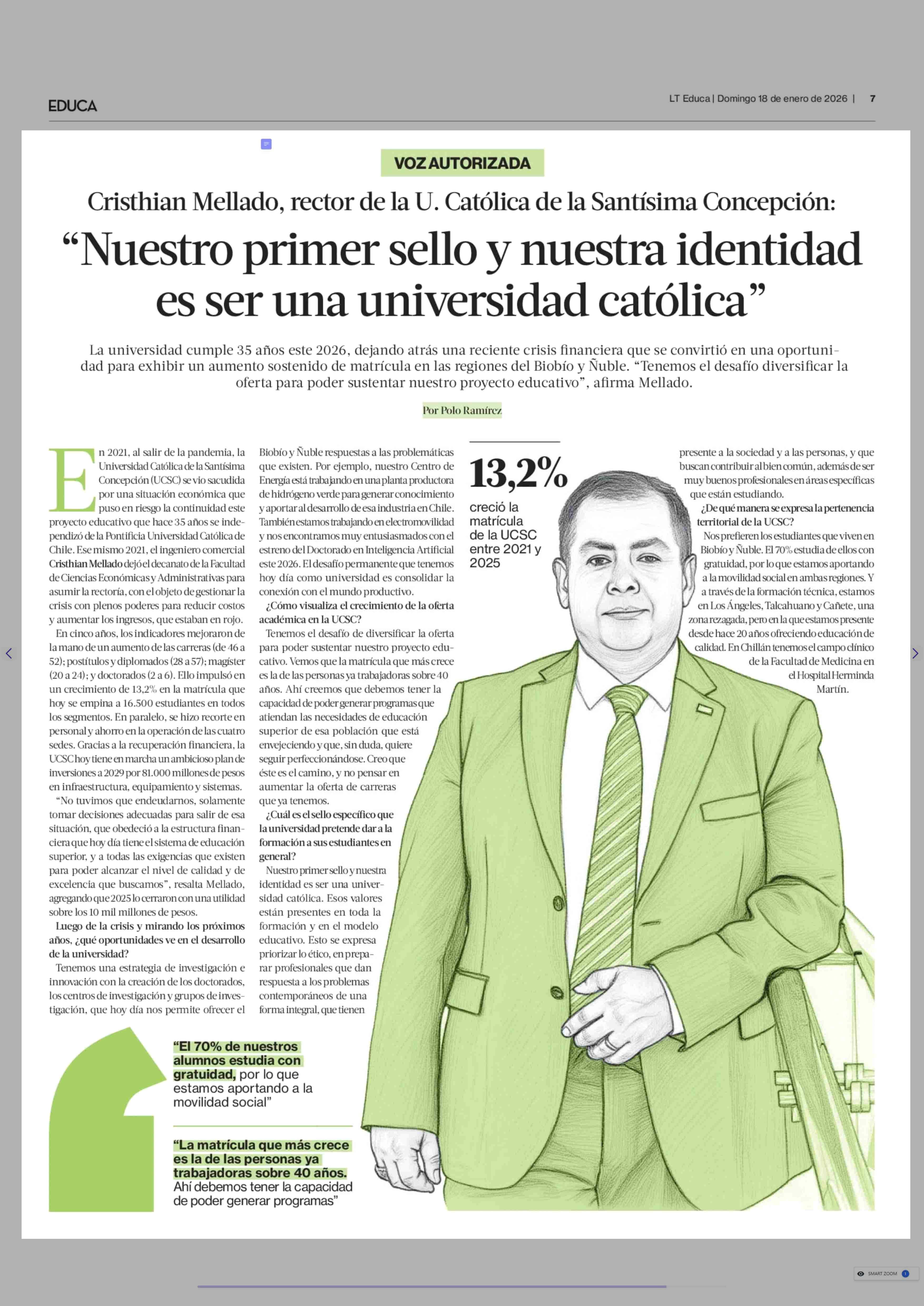 “Nuestro primer sello y nuestra identidad es ser una universidad católica” 18-01-2026 La Tercera |