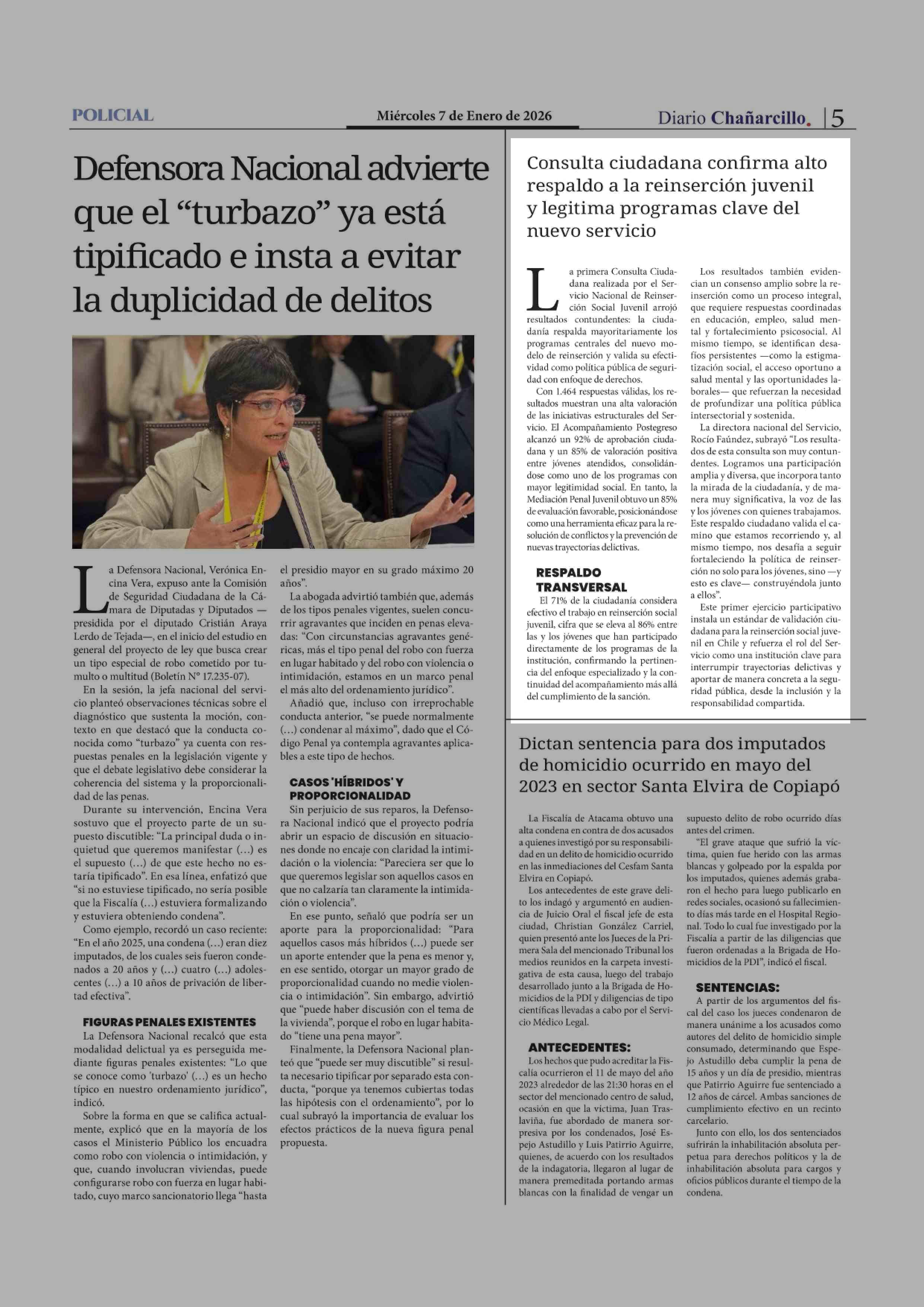 Consulta ciudadana confirma alto respaldo a la reinserción juvenil y legitima programas clave del nuevo servicio 07-01-2026 Diario Chañarcillo |