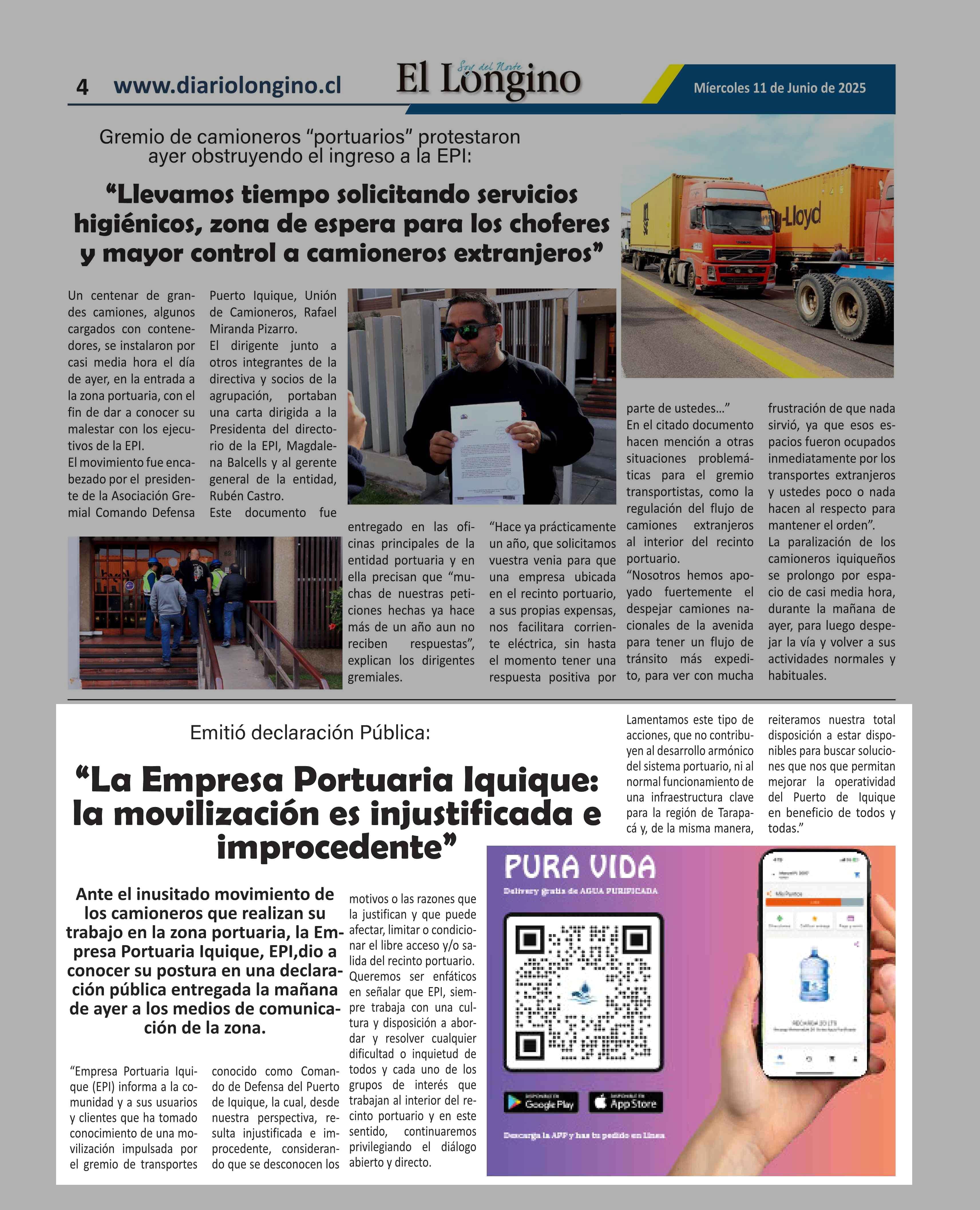 “La Empresa Portuaria Iquique: la movilización es injustificada e improcedente” 11-06-2025 El Longino |