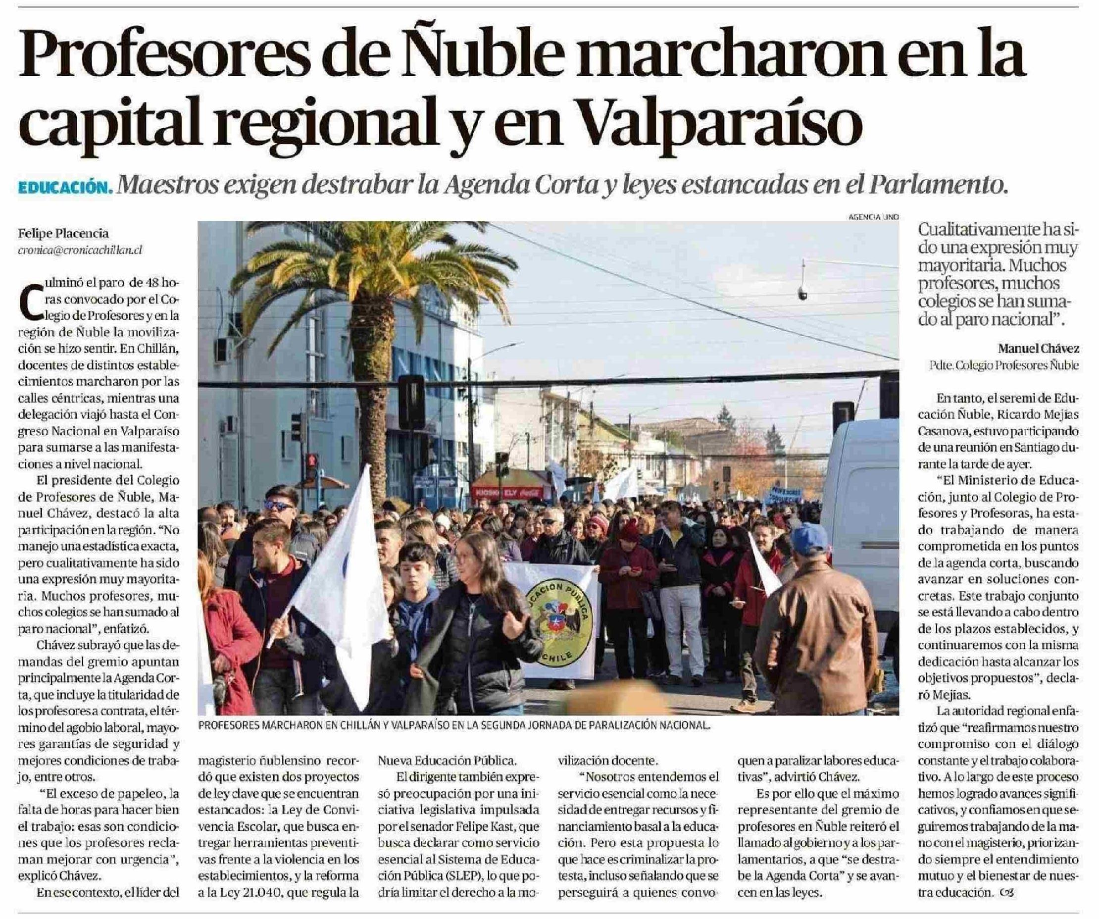 | Título: | Profesores de Ñuble marcharon en la capital regional y en Valparaíso |