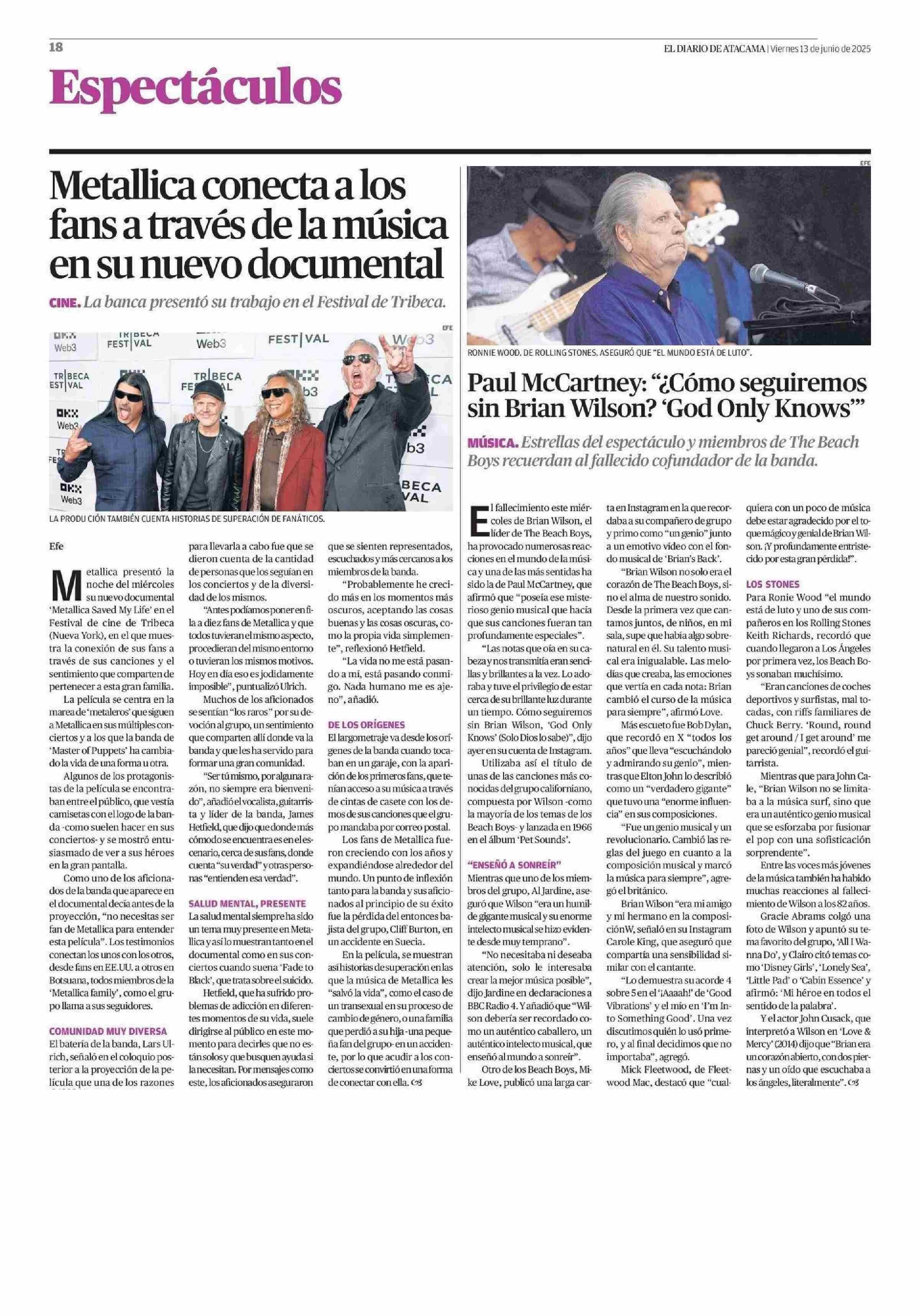 Metallica conecta a los en su nuevo documental fans a través de la música 13-06-2025 El Diario de Atacama |