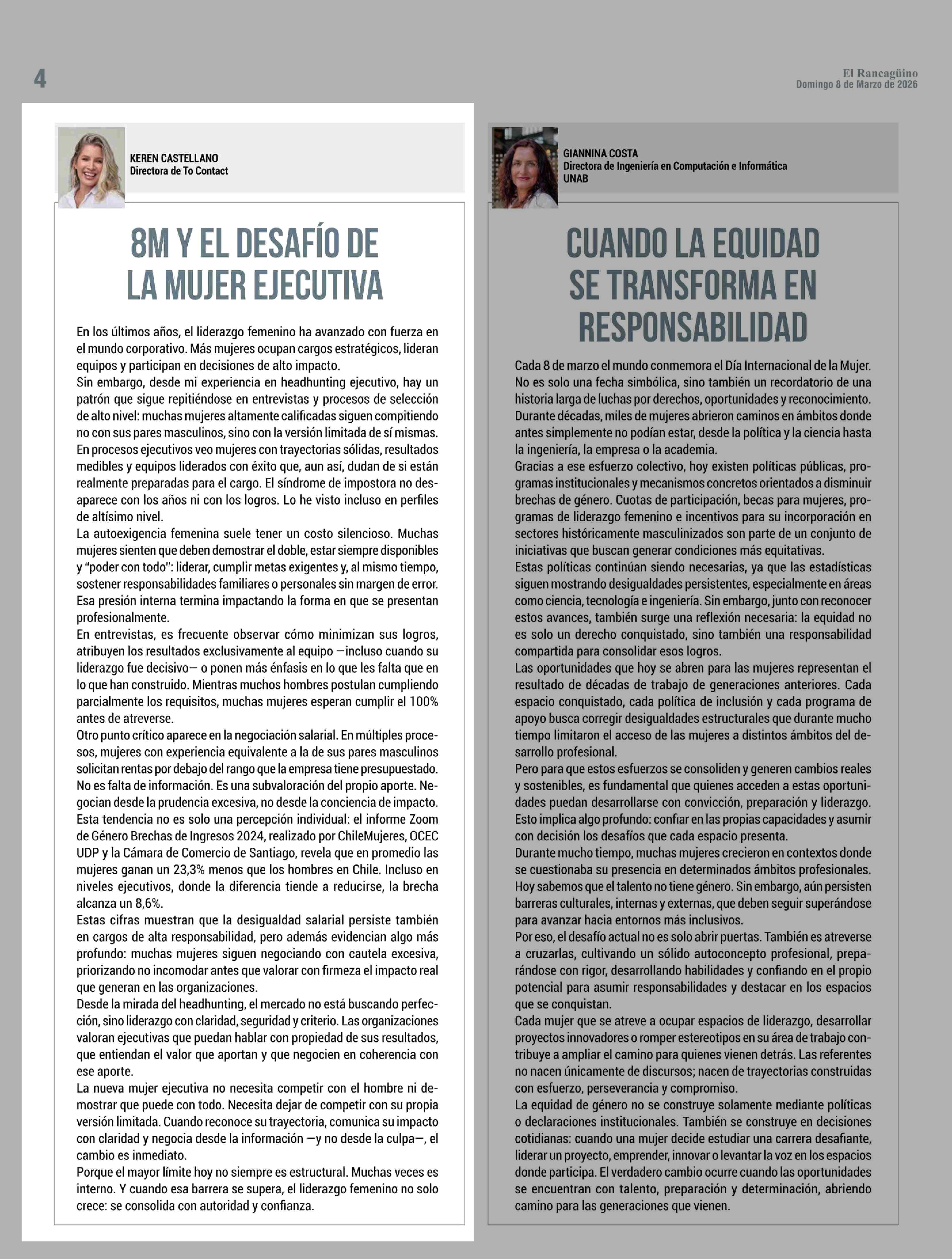 8M Y EL DESAFÍO DE LA MUJER EJECUTIVA 08-03-2026 El Rancagüino |