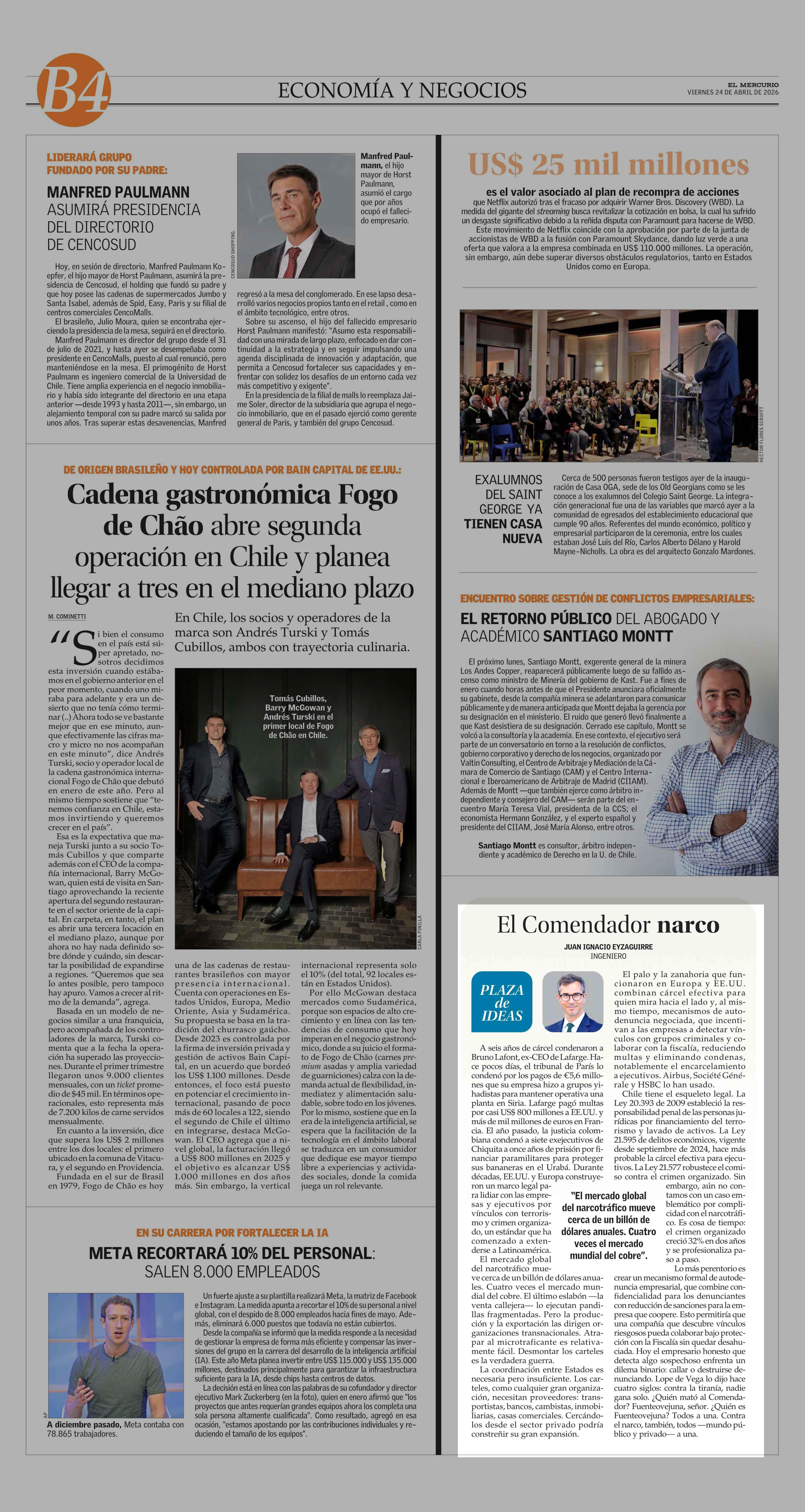 COLUMNAS DE OPINIÓN: El Comendador narco 24-04-2026 El Mercurio |