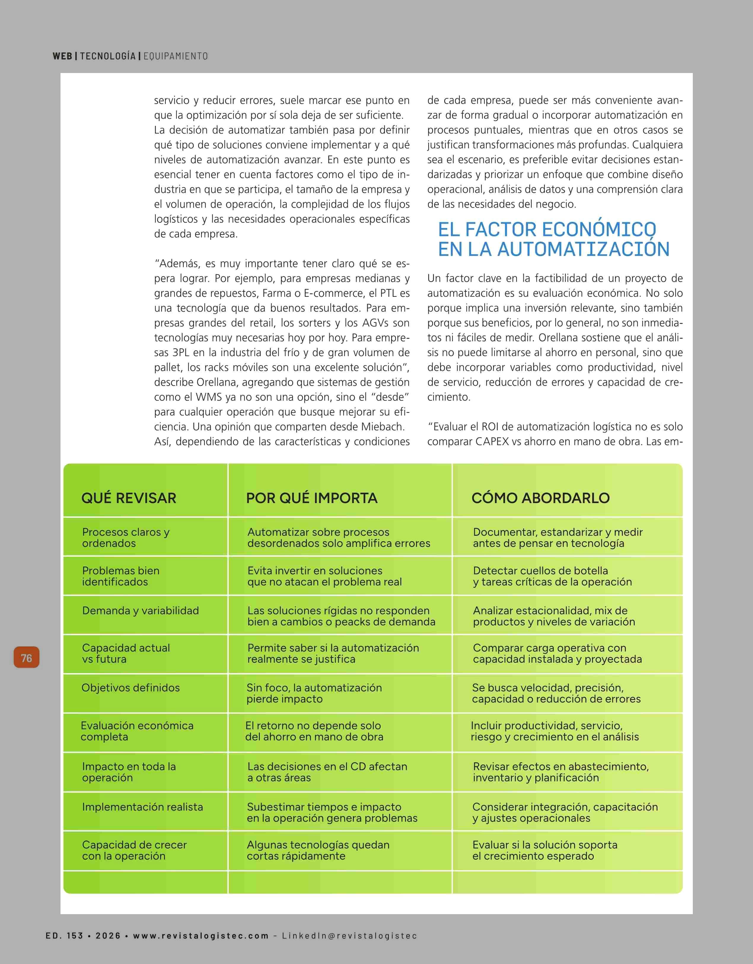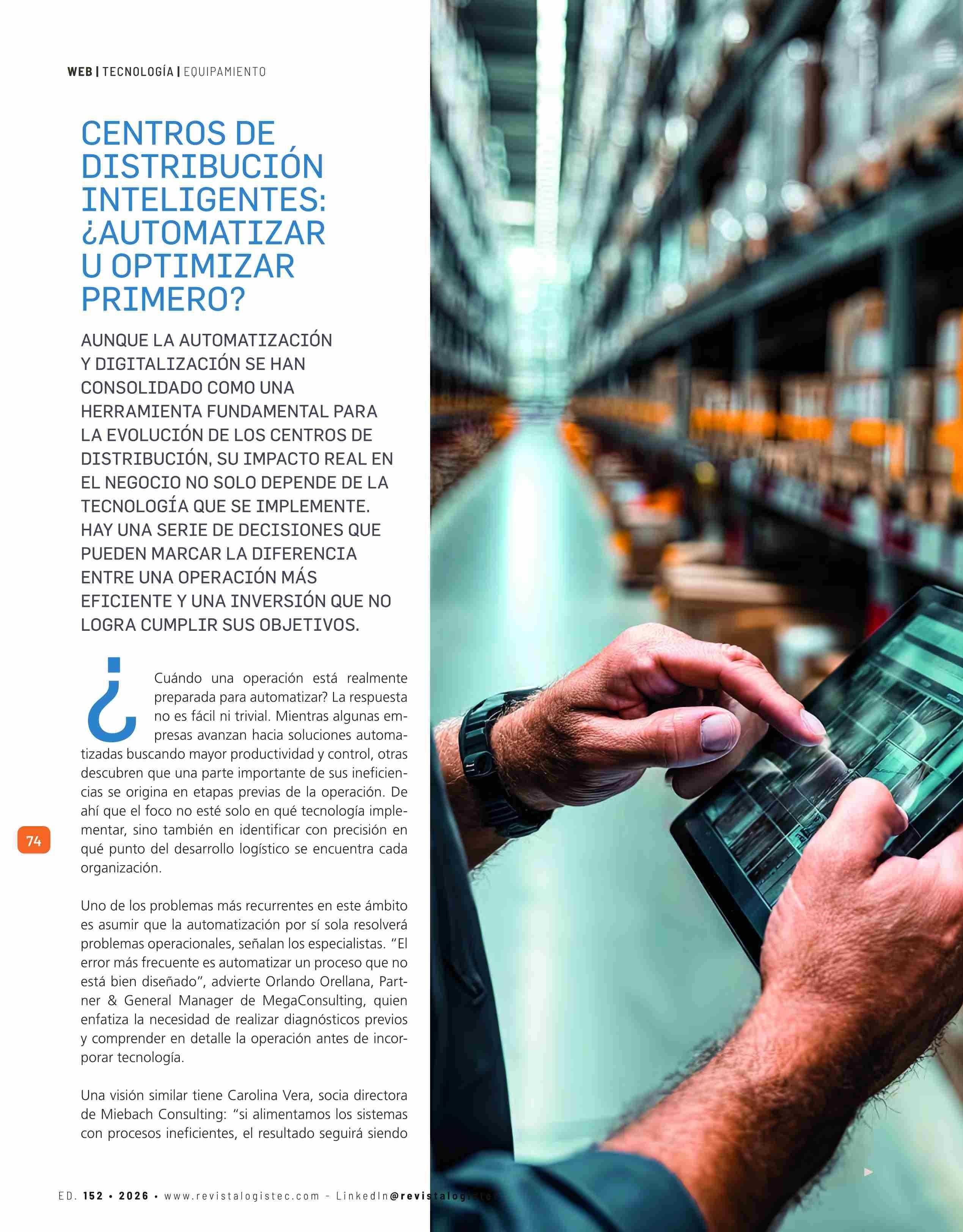 CENTROS DE DISTRIBUCIÓN INTELIGENTES: ¿AUTOMATIZAR U OPTIMIZAR PRIMERO? 23-04-2026 Revista Logistec |