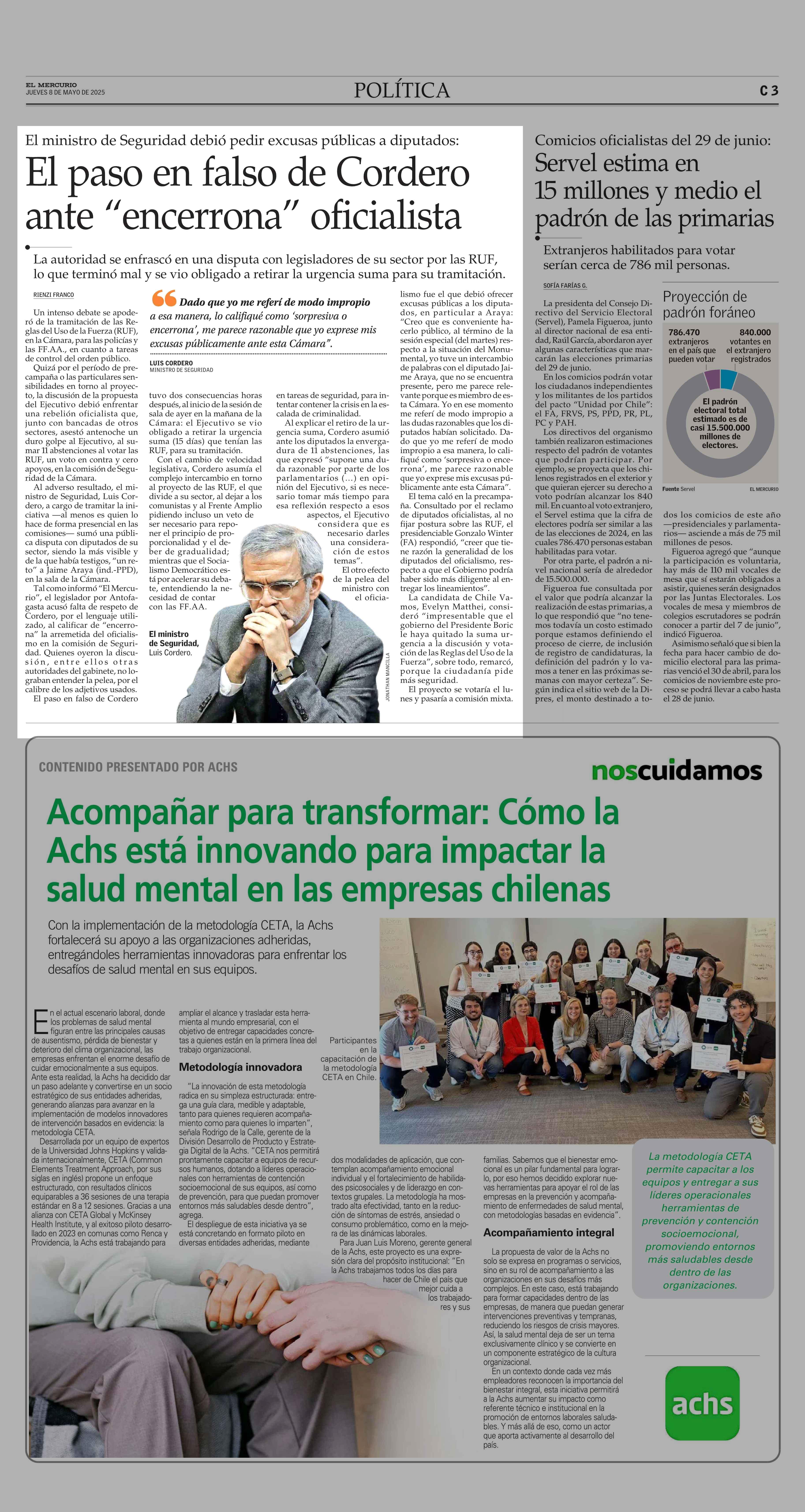 El paso en falso de Cordero ante “encerrona” oficialista 08-05-2025 El Mercurio |