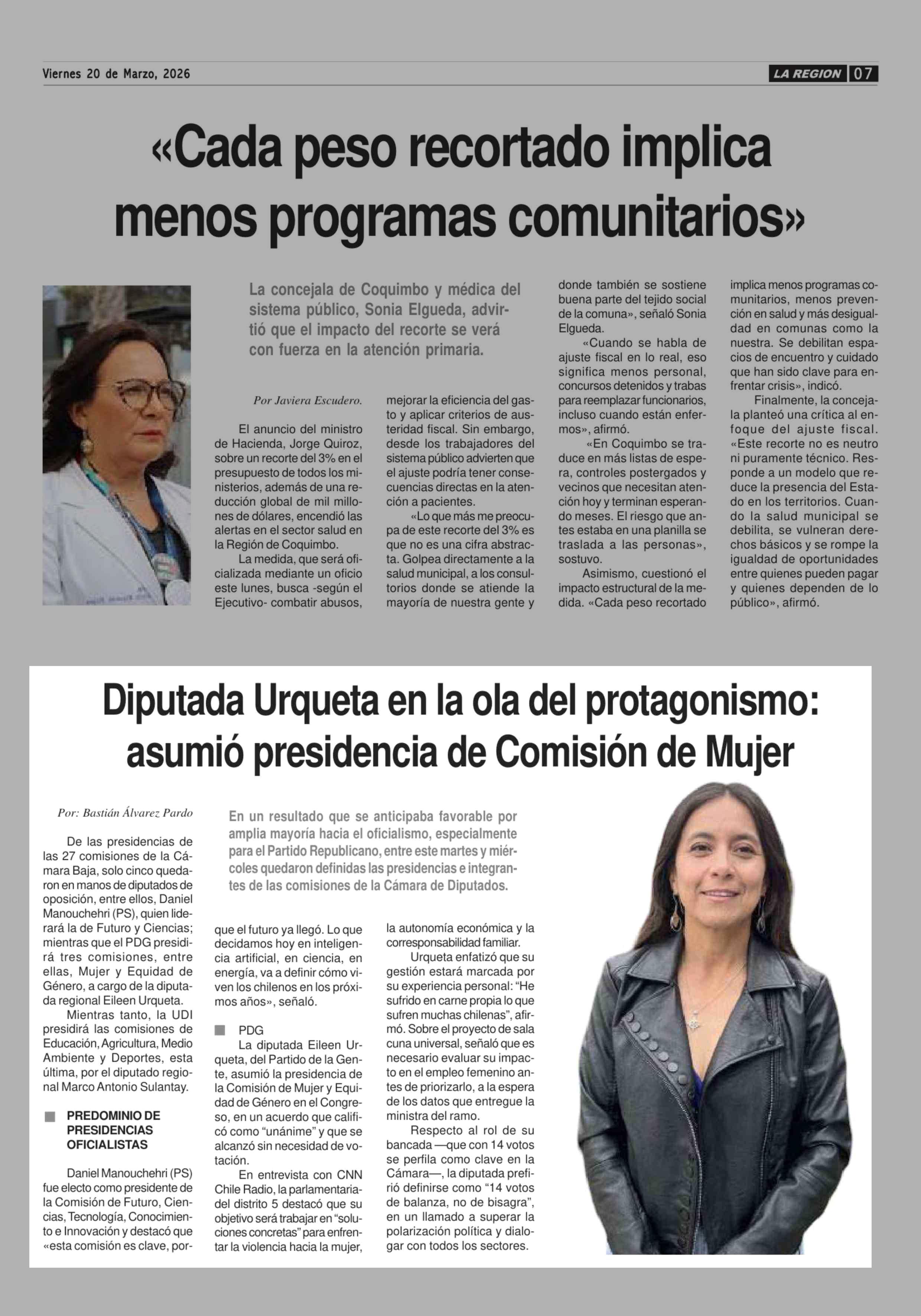 Diputada Urqueta en la ola del protagonismo: asumió presidencia de Comisión de Mujer 20-03-2026 Diario la Región |
