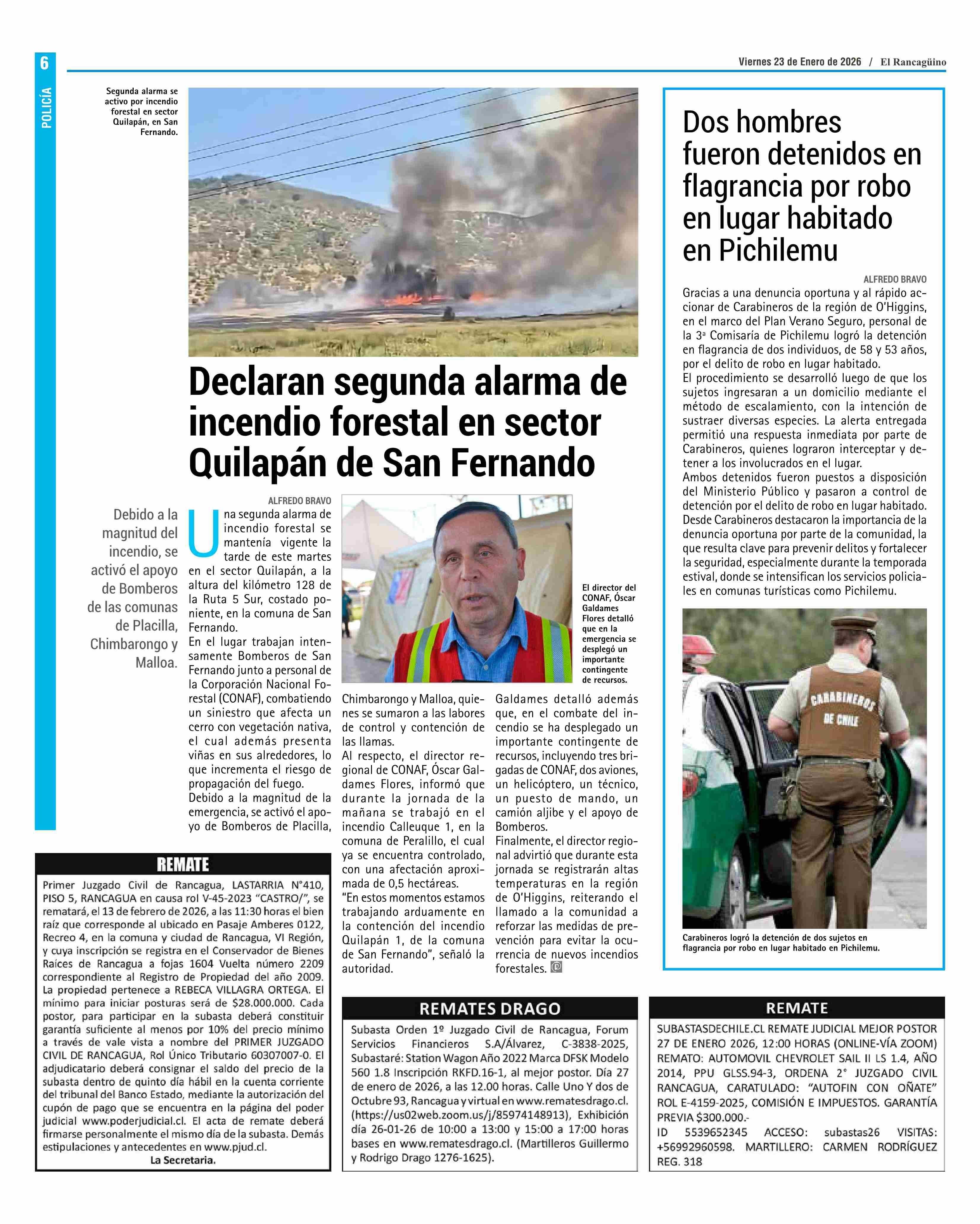 | Fecha: | 23-01-2026 | Sector: | Noticia general | Región: | Región del Libertador General Bernardo O'Higgins |