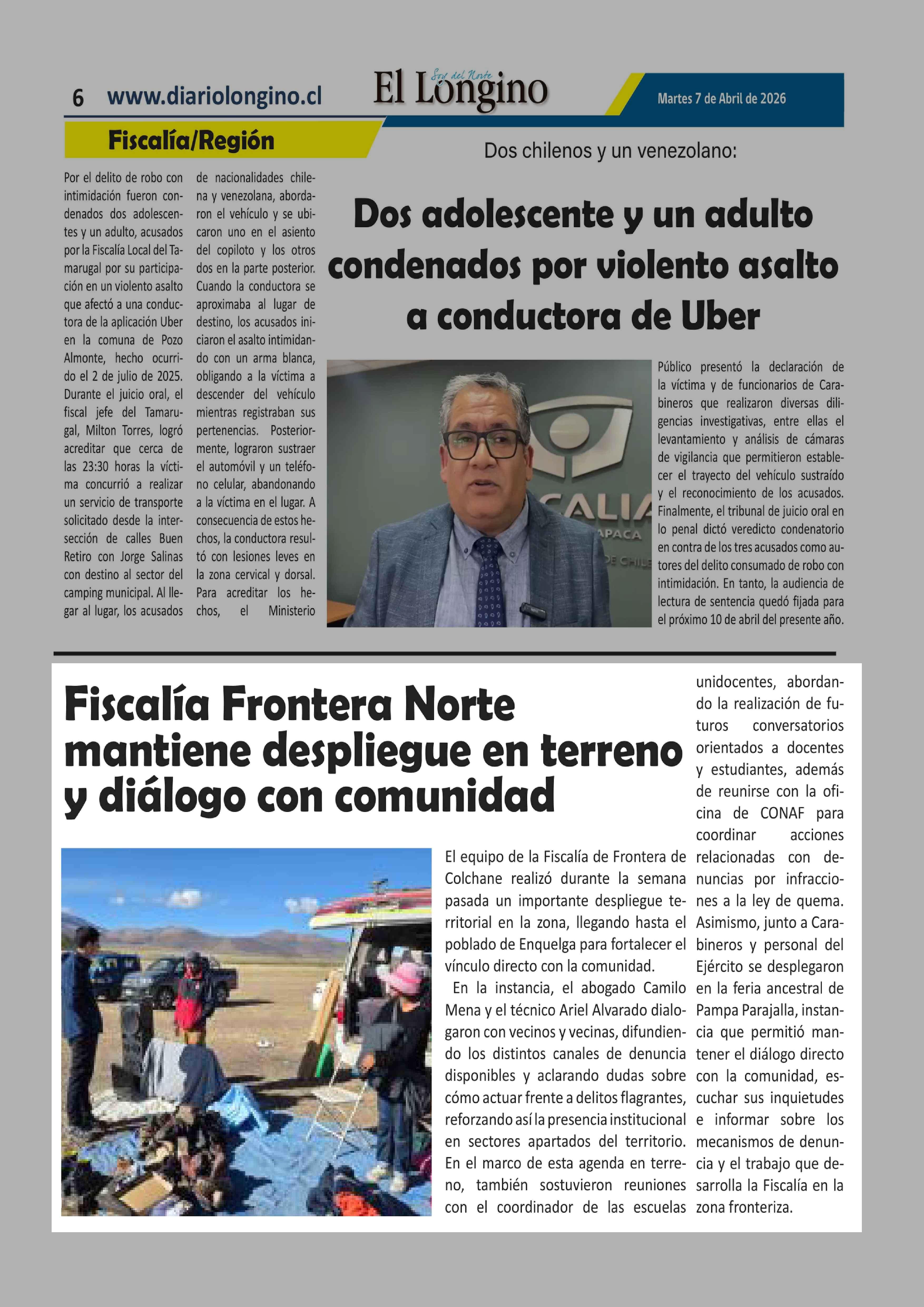 | Fecha: | 07-04-2026 | Sector: | Noticia general | Región: | Región de Tarapacá |