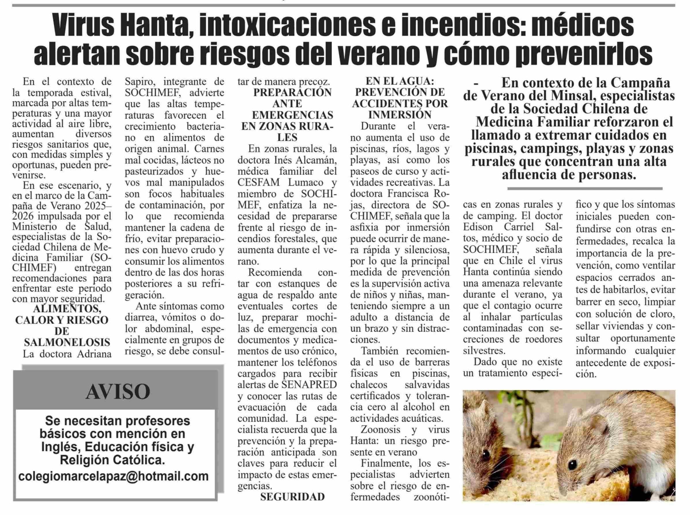 Título: Virus Hanta, intoxicaciones e incendios: médicos alertan sobre riesgos del verano y cómo prevenirlos