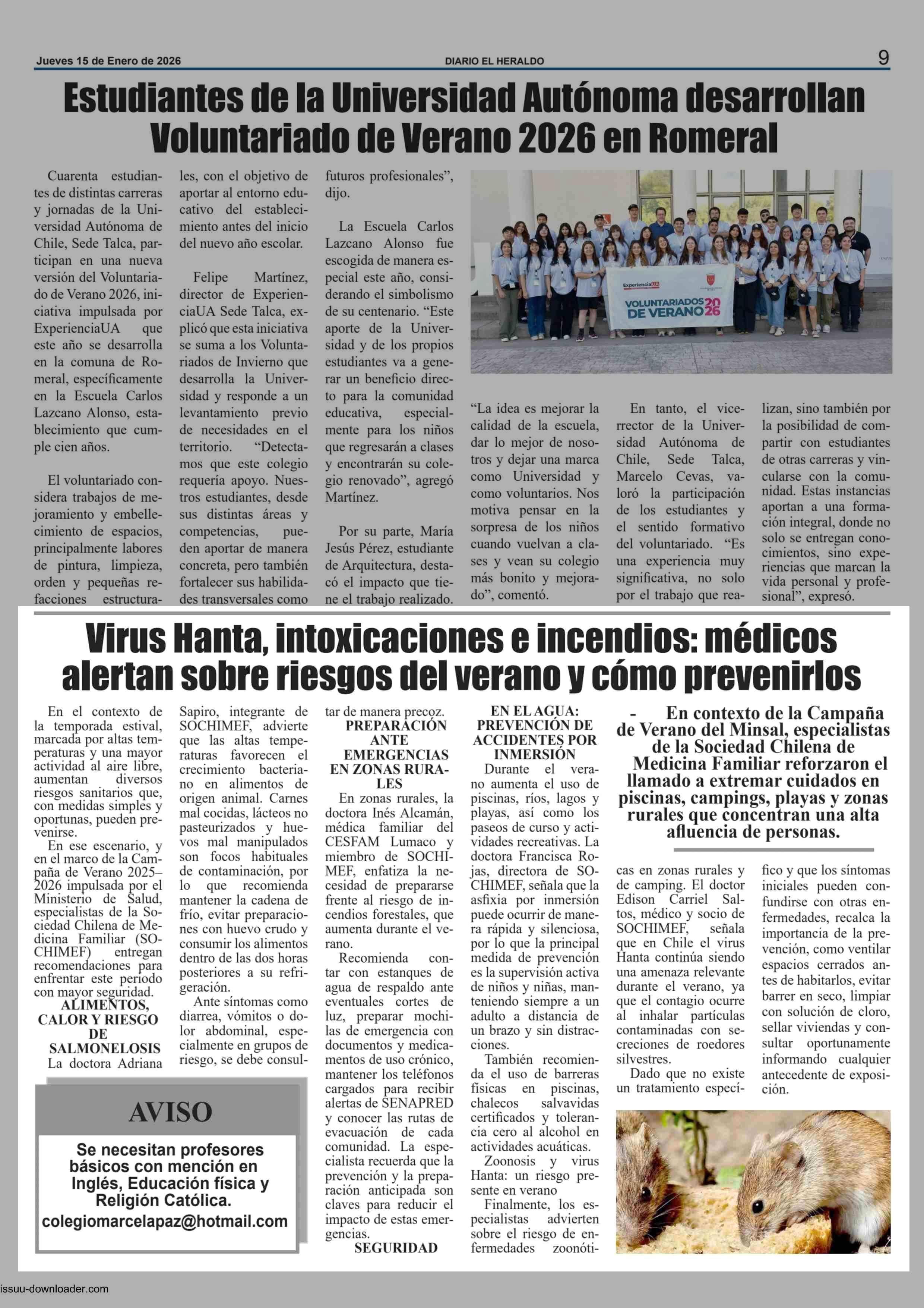 Fecha: 15-01-2026 Sector: Noticia general Región: Región del Maule