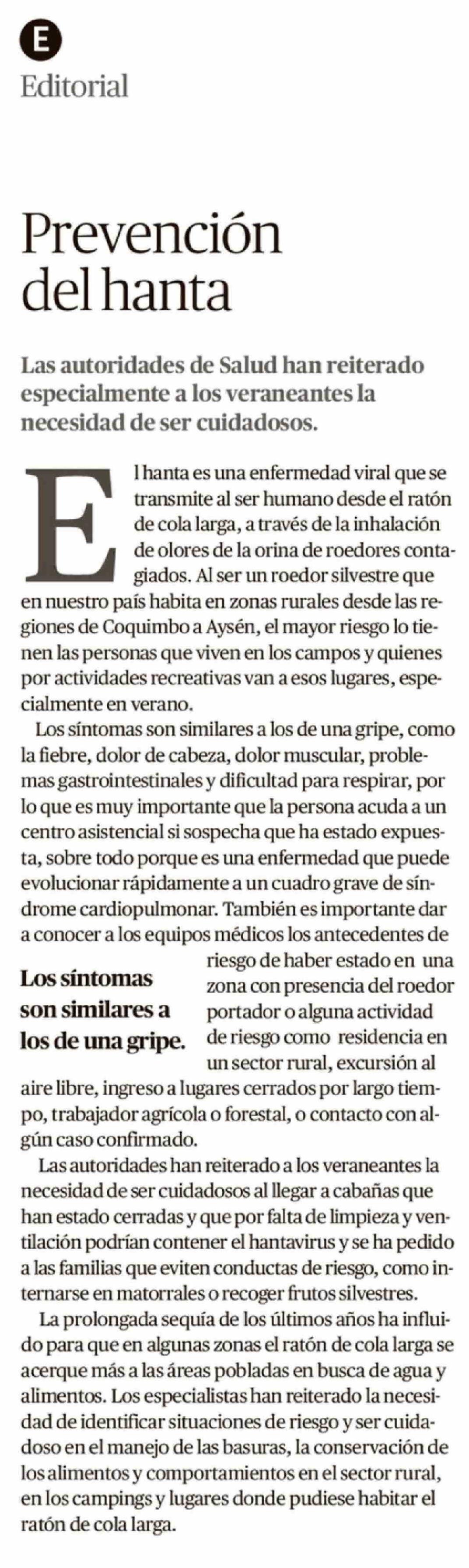 Editorial: Prevención del hanta