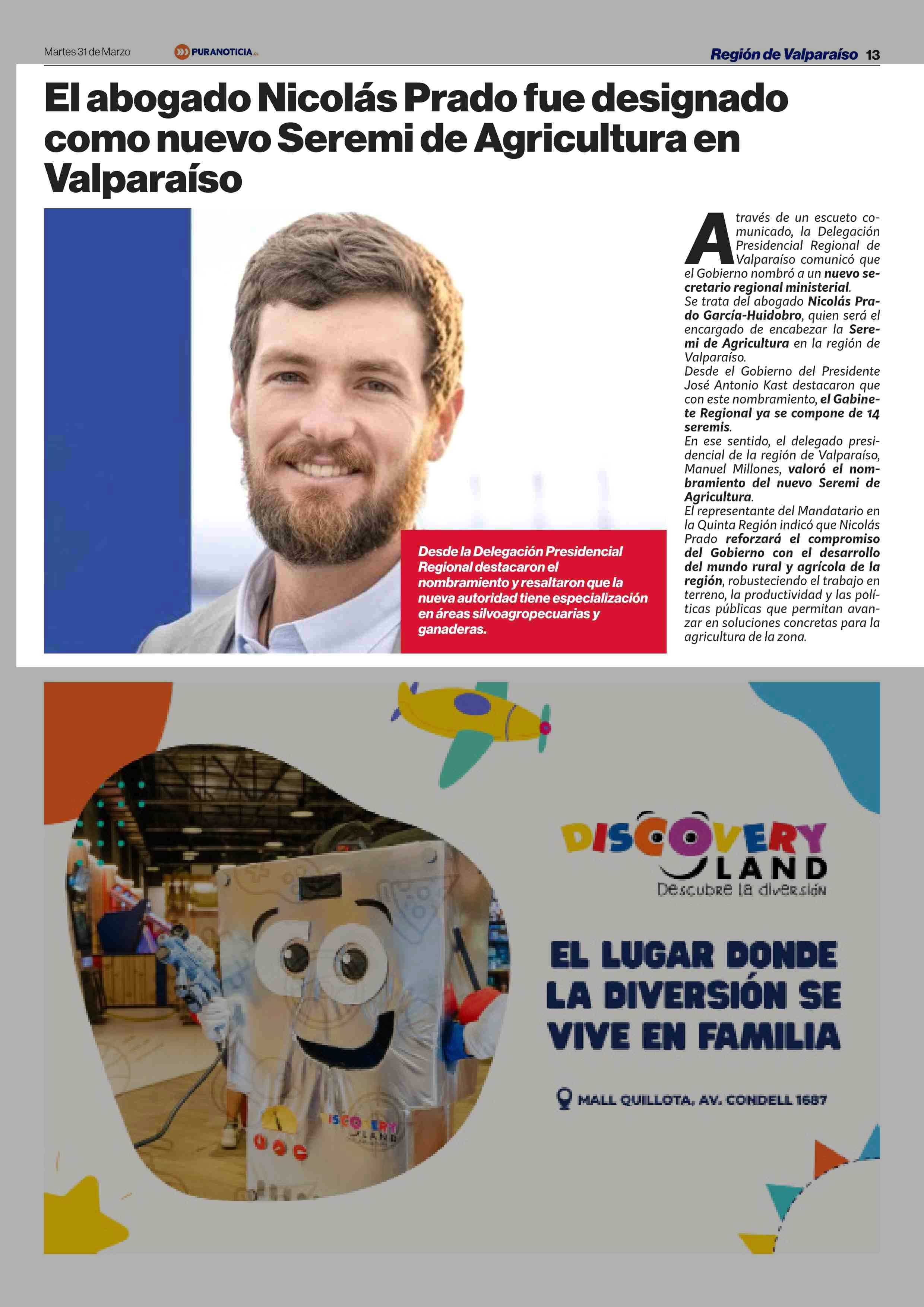 Título: El abogado Nicolás Prado fue designado como nuevo Seremi de Agricultura en Valparaíso