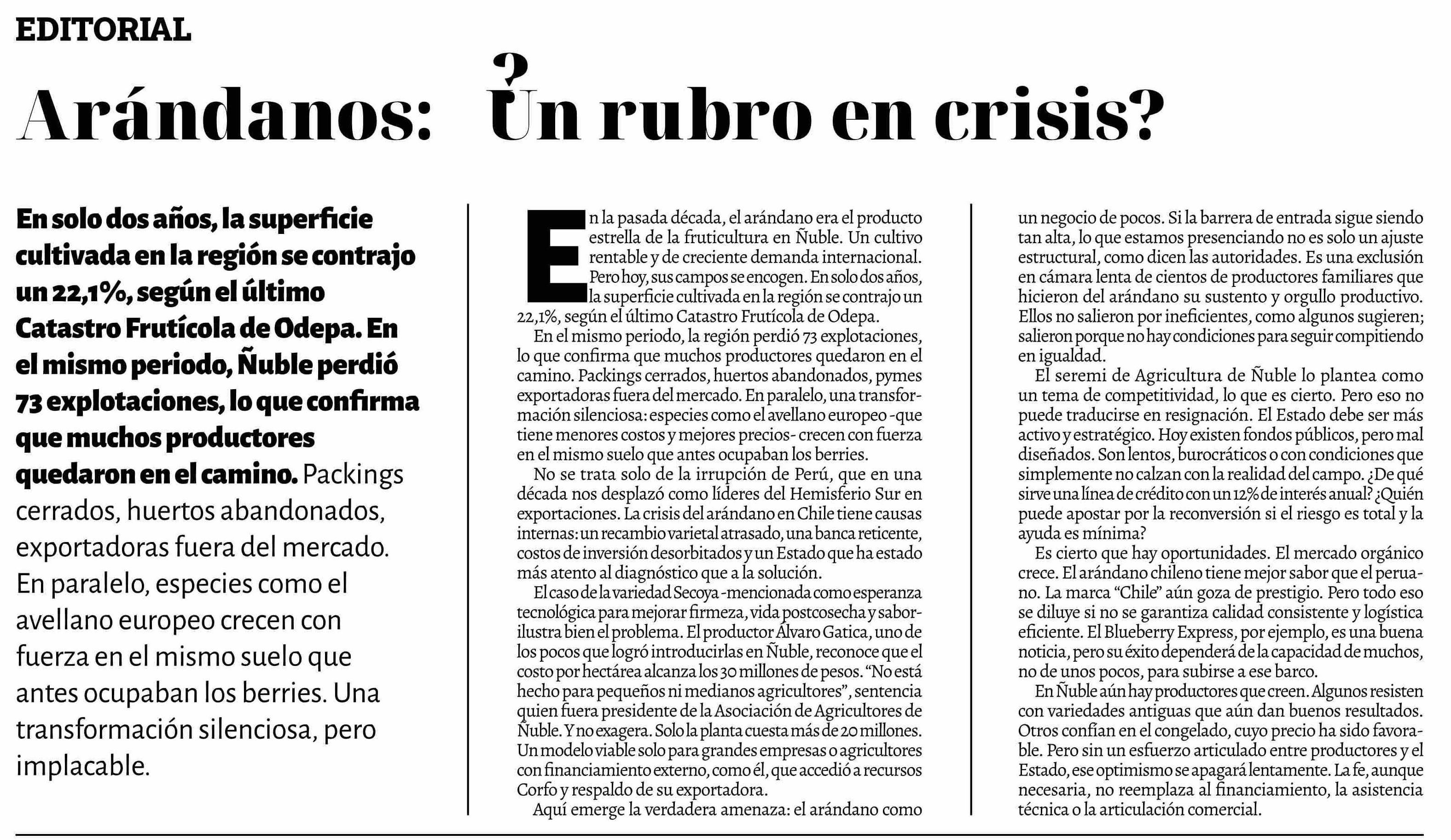 Editorial: Arándanos: ¿Un rubro en crisis? 04-06-2025 La Discusión |