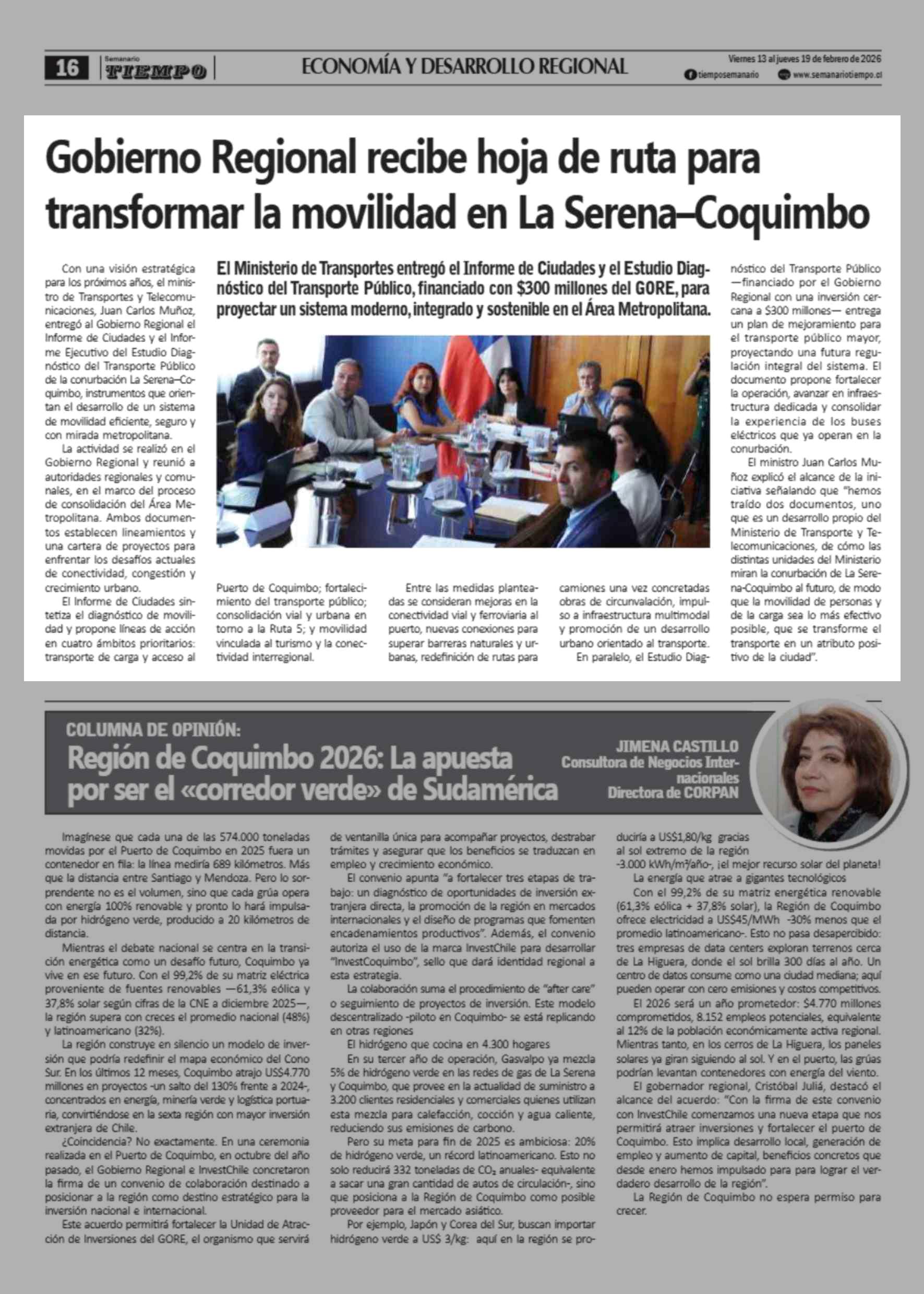 Gobierno Regional recibe hoja de ruta para transformar la movilidad en La Serena-Coquimbo 13-02-2026 Semanario Tiempo |