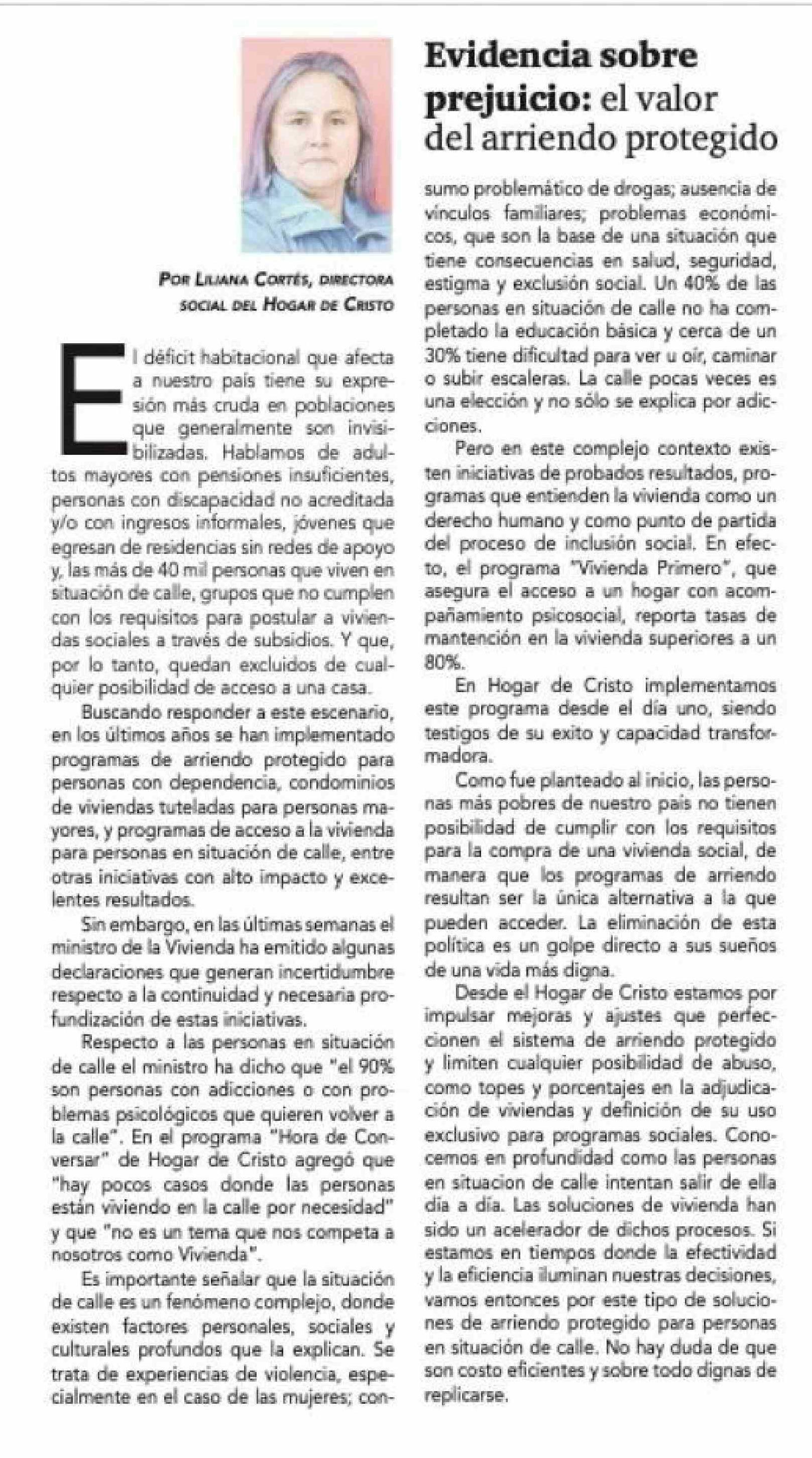 COLUMNAS DE OPINIÓN: Evidencia sobre prejuicio: el valor del arriendo protegido 18-04-2026 La Prensa Austral |