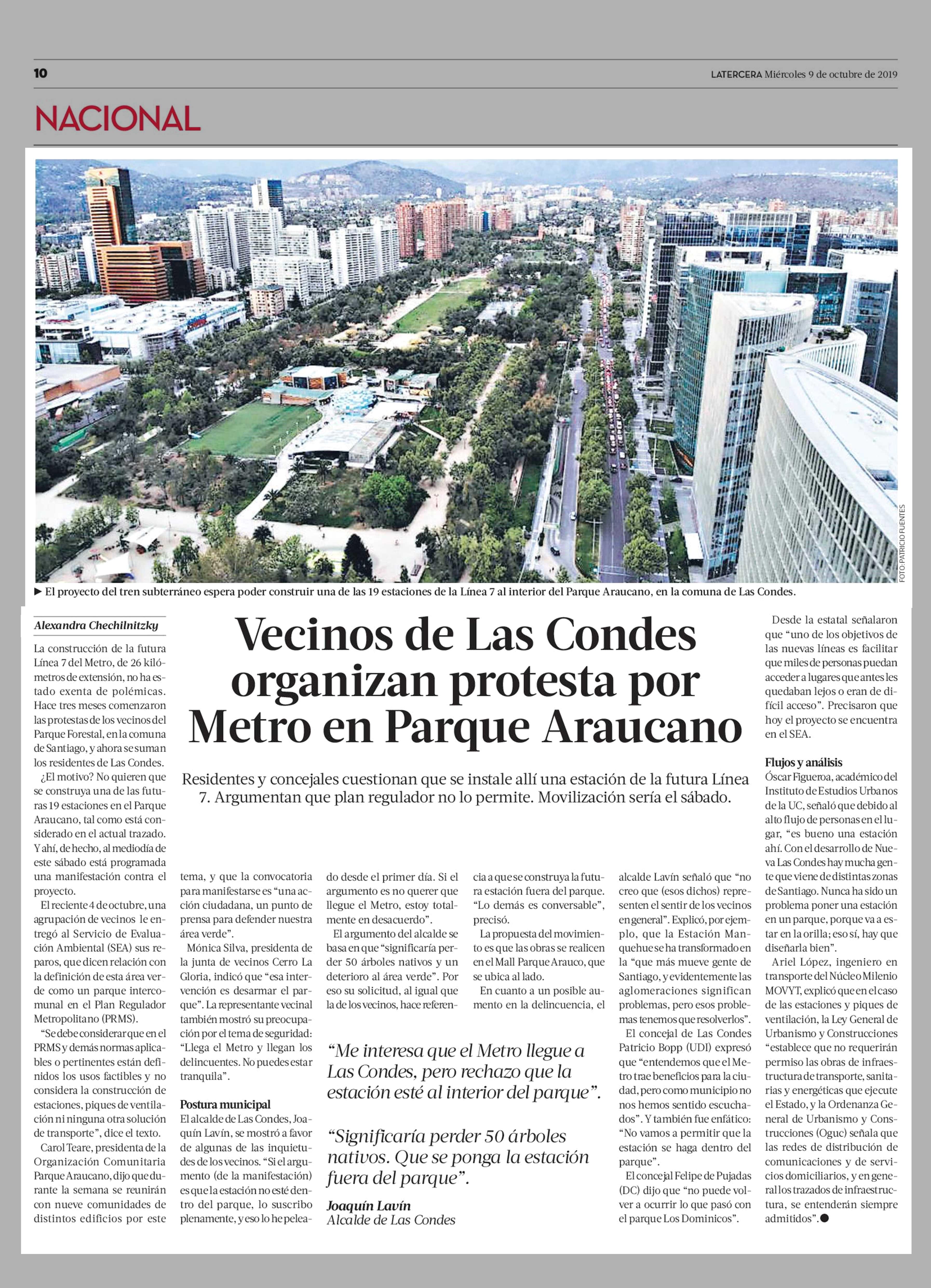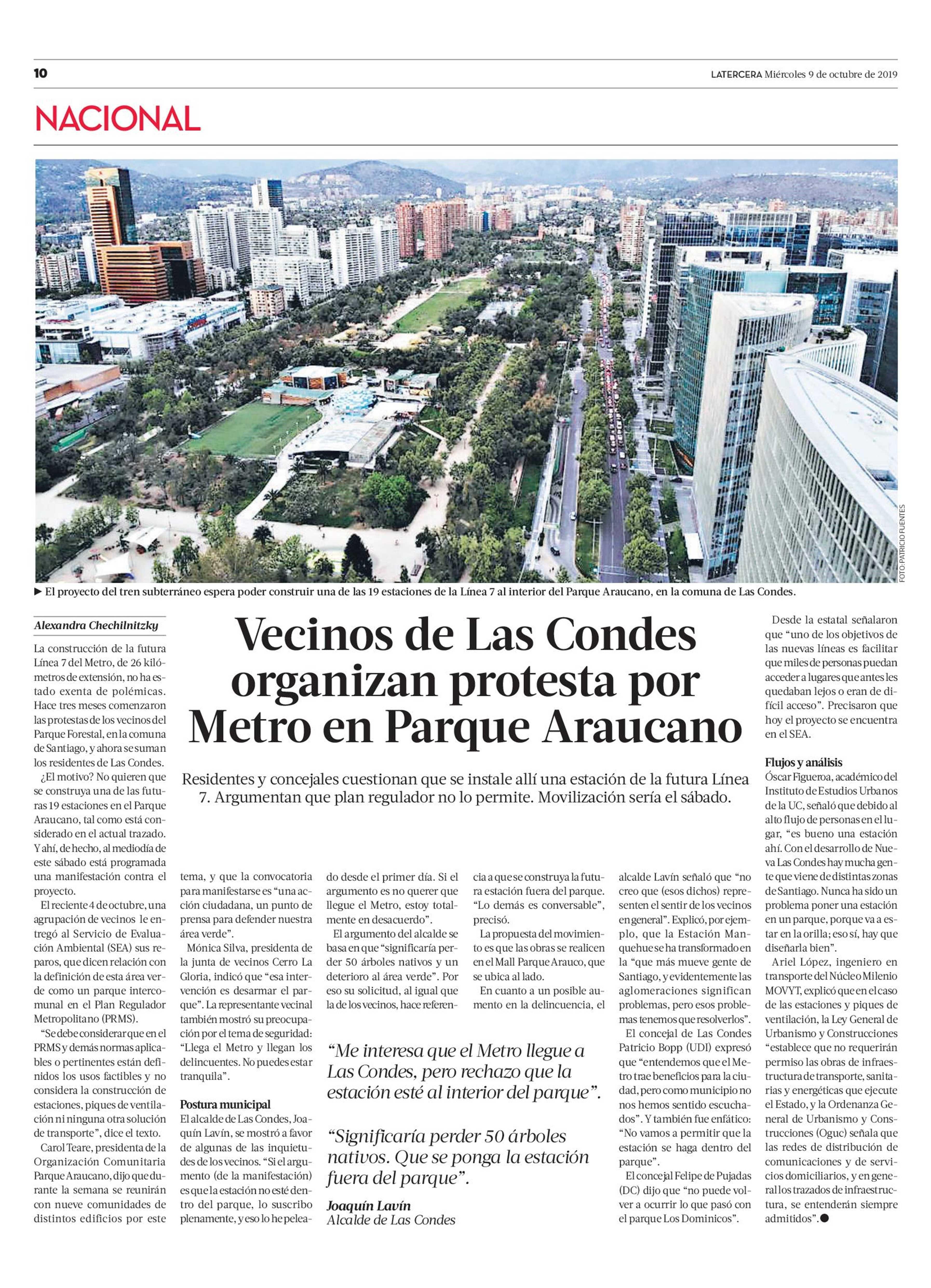 Vecinos de Las Condes organizan protesta por Metro en Parque Araucano 09-10-2019 La Tercera |