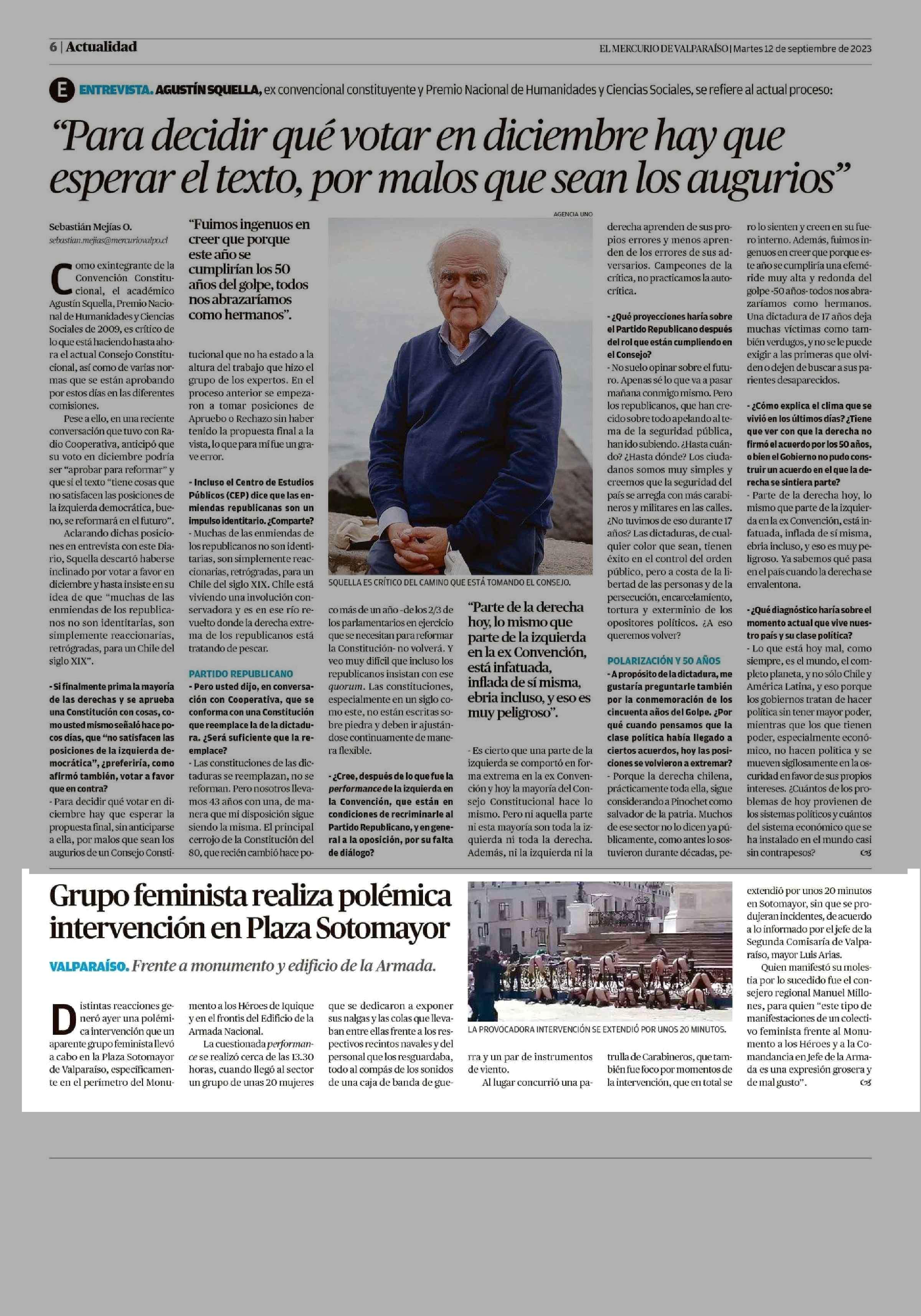 Grupo feminista realiza polémica intervención en Plaza Sotomayor 12-09-2023 El Mercurio de Valparaíso |