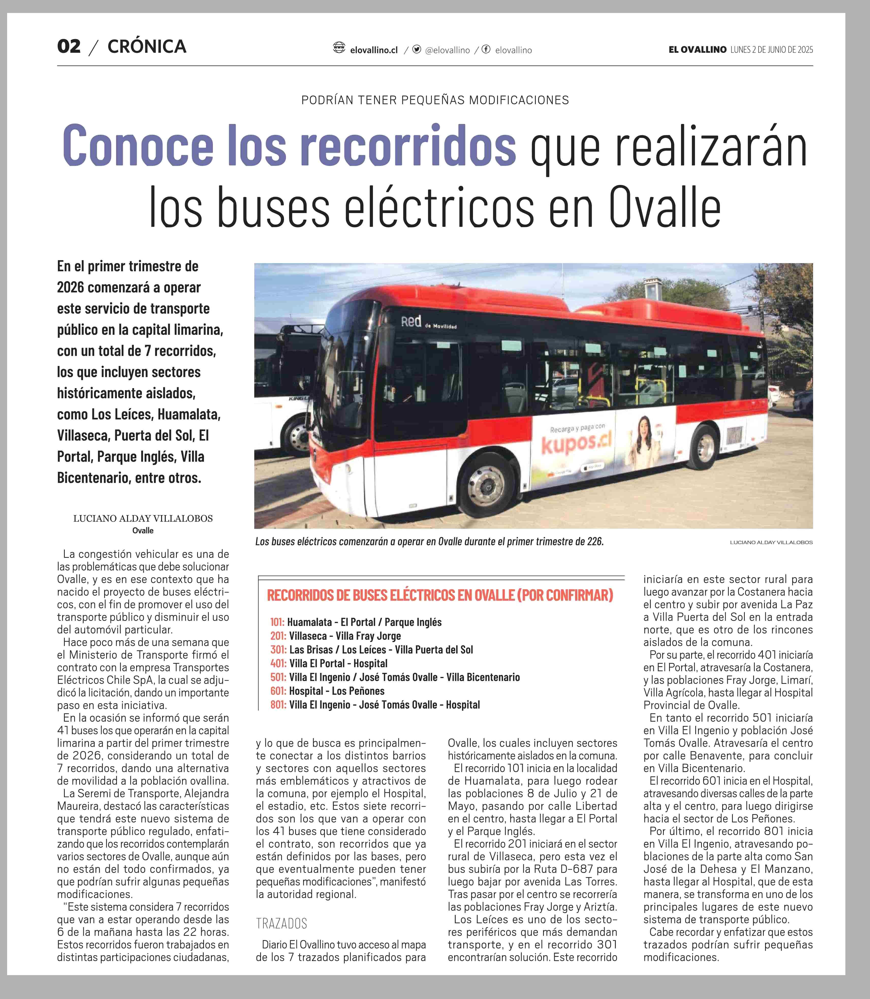 Conoce los recorridos que realizarán los buses eléctricos en Ovalle 02-06-2025 El Ovallino |