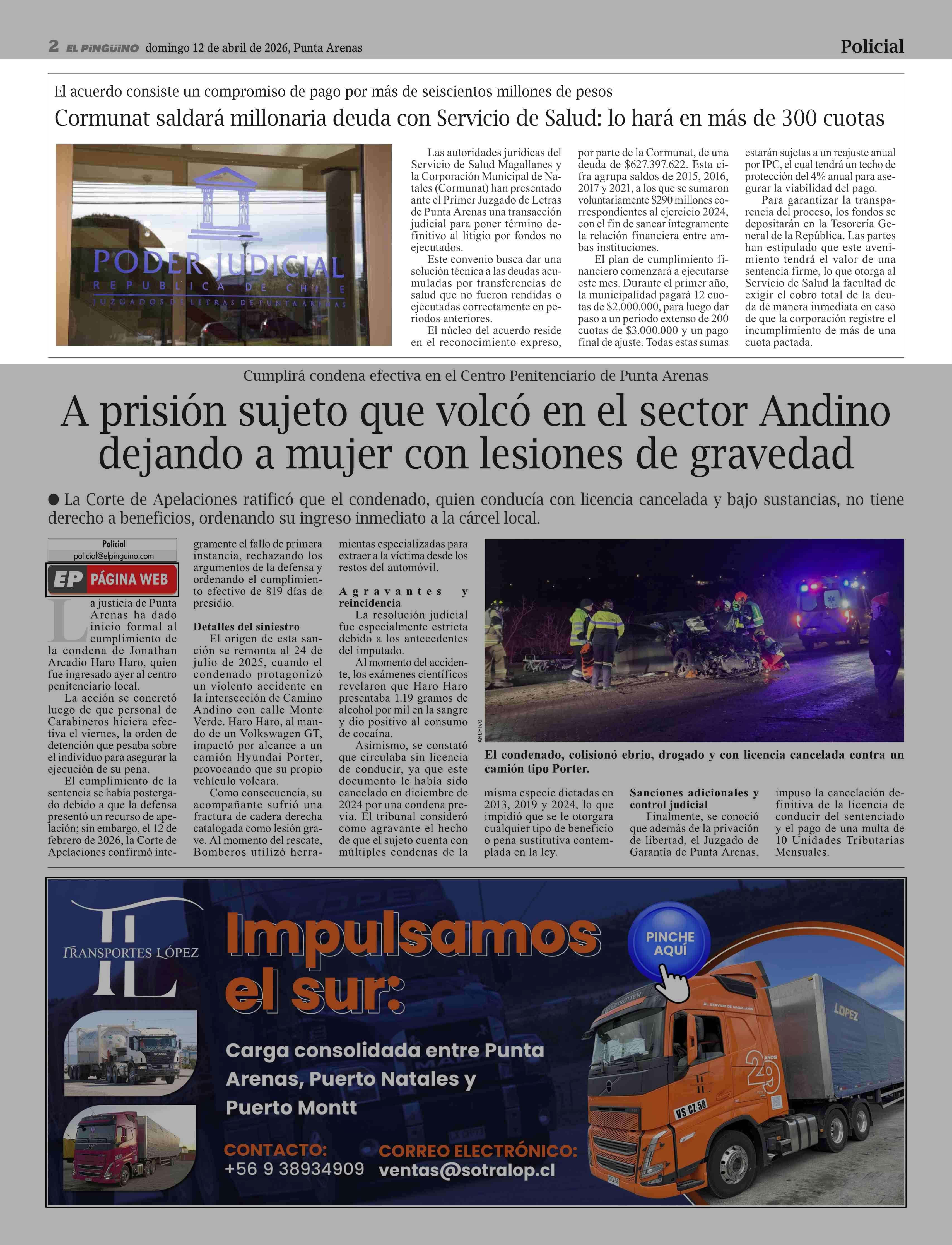 Fecha: 12-04-2026 Sector: Noticia general Región: Región de Magallanes y de la Antártica Chilena