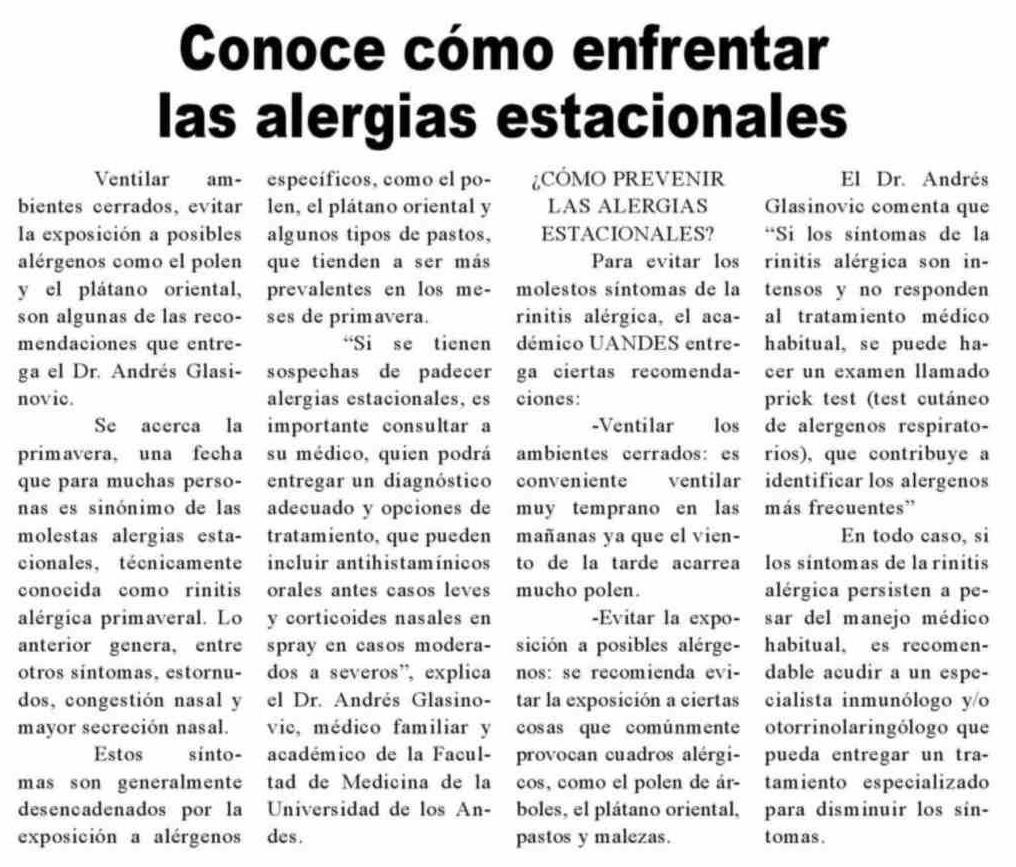Conoce cómo enfrentar las alergias estacionales 21-09-2023 Diario VI Región |