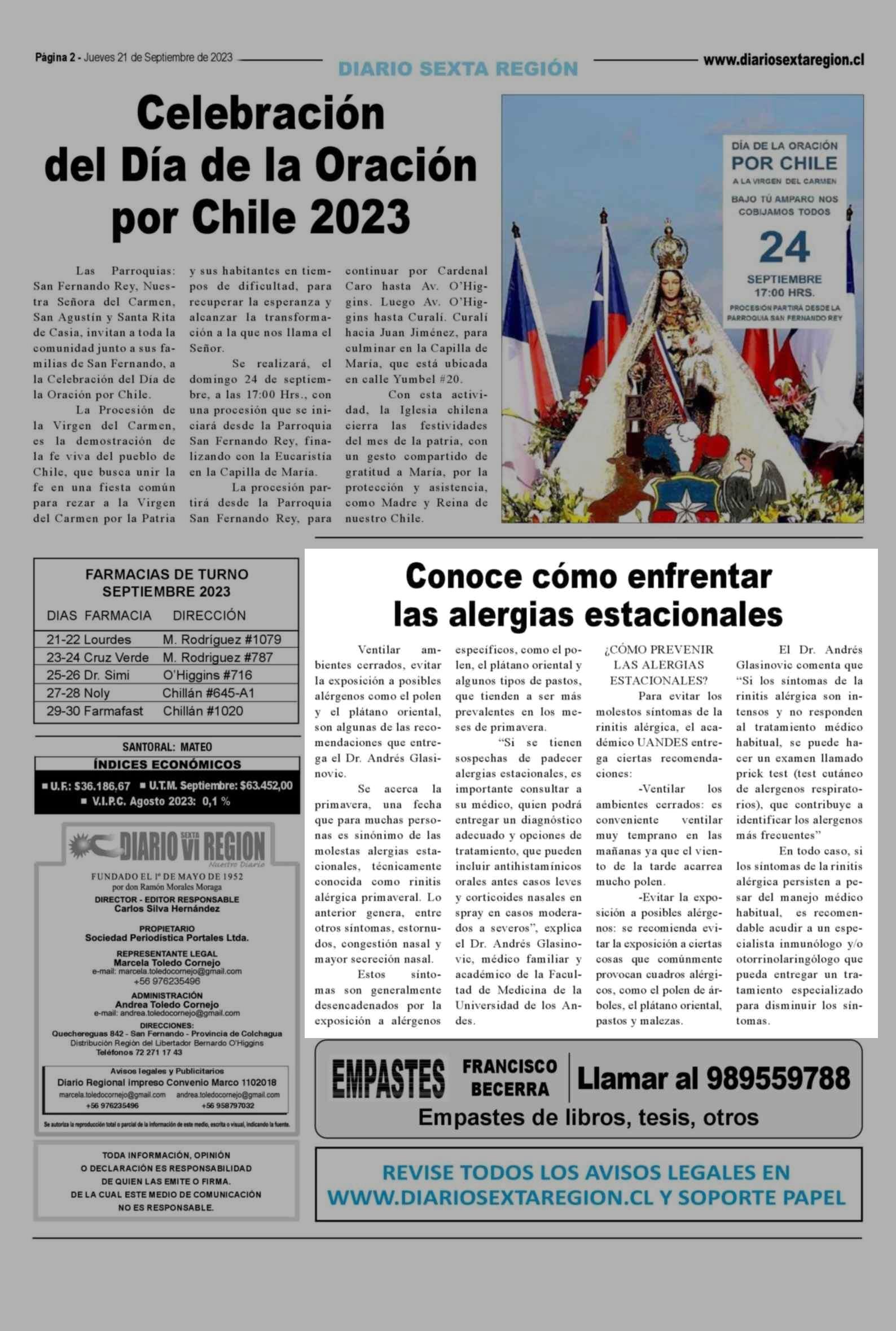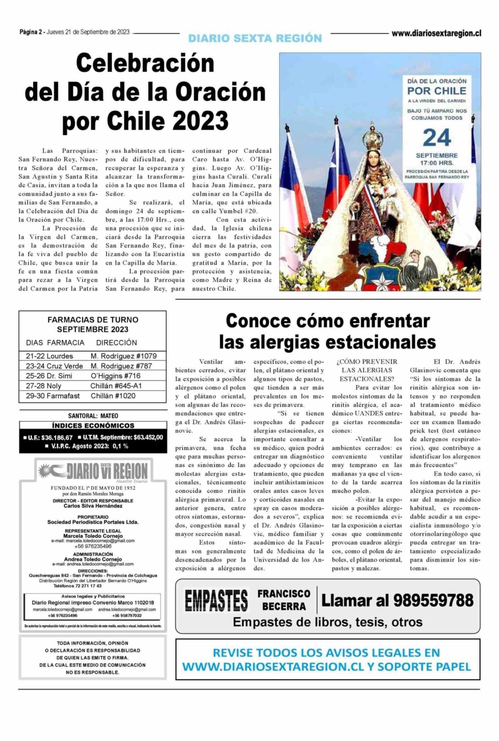 | Fecha: | 21-09-2023 | Sector: | Noticia general | Región: | Región del Libertador General Bernardo O'Higgins |