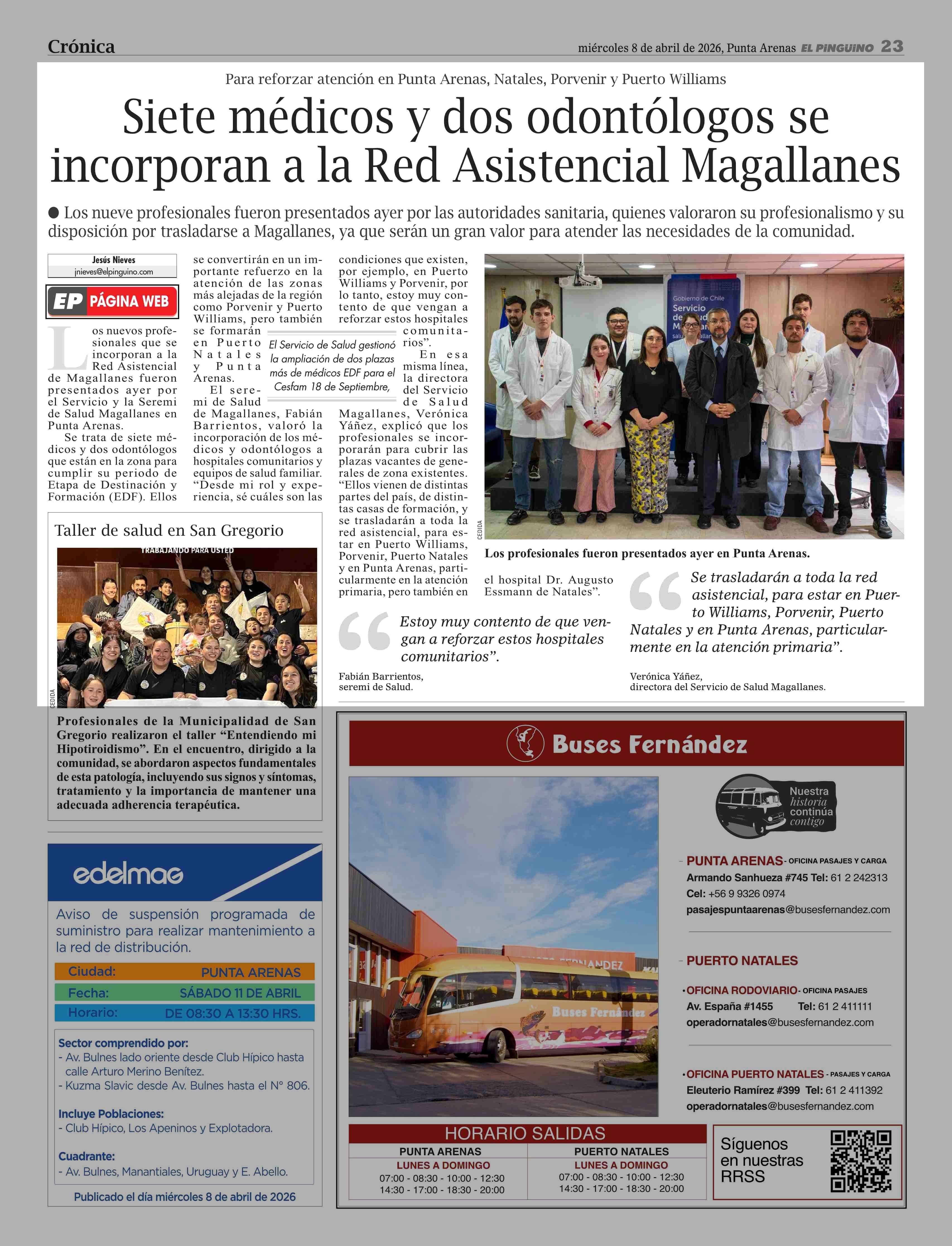 Fecha: 08-04-2026 Sector: Noticia general Región: Región de Magallanes y de la Antártica Chilena