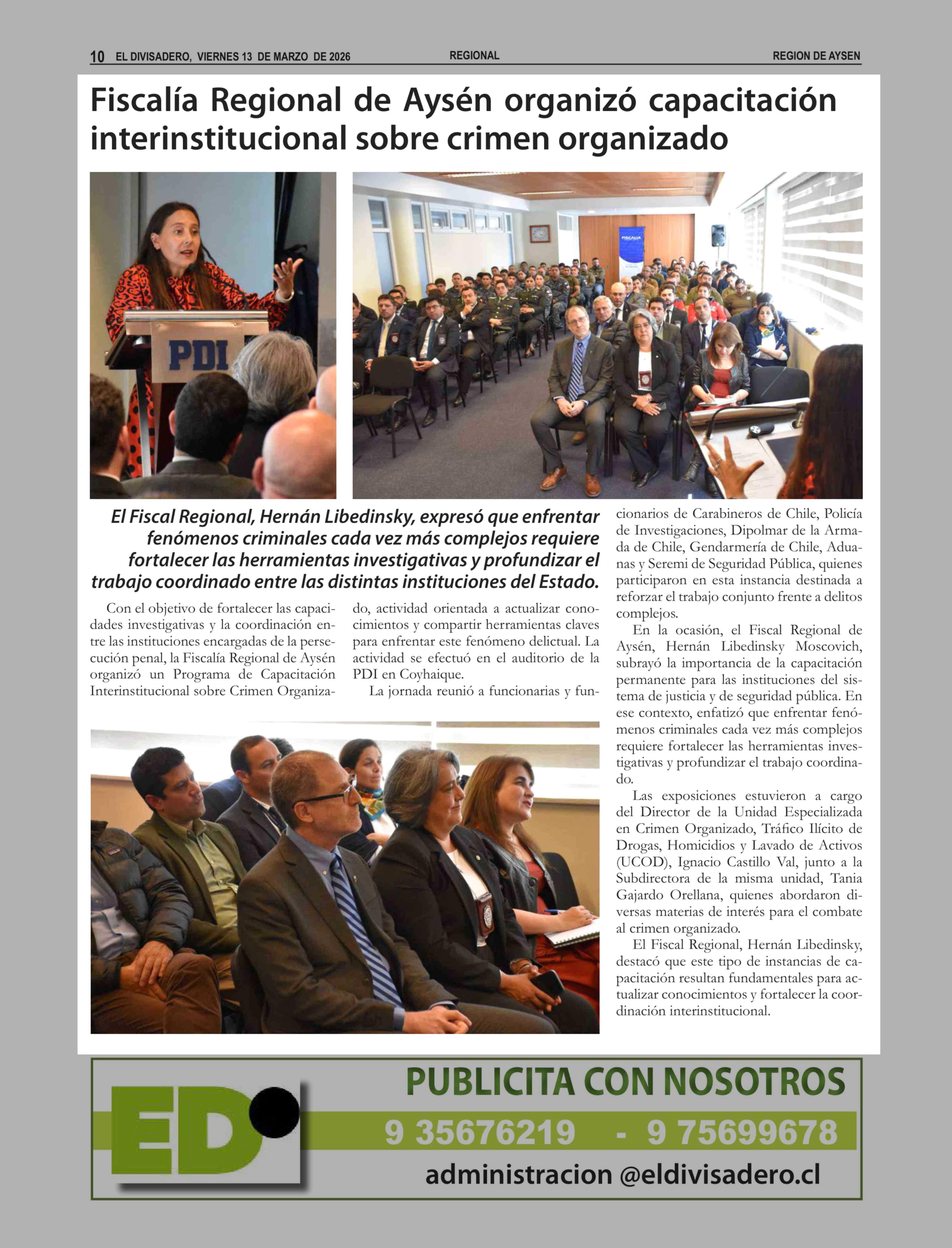 Fiscalía Regional de Aysén organizó capacitación interinstitucional sobre crimen organizado 13-03-2026 El Divisadero |