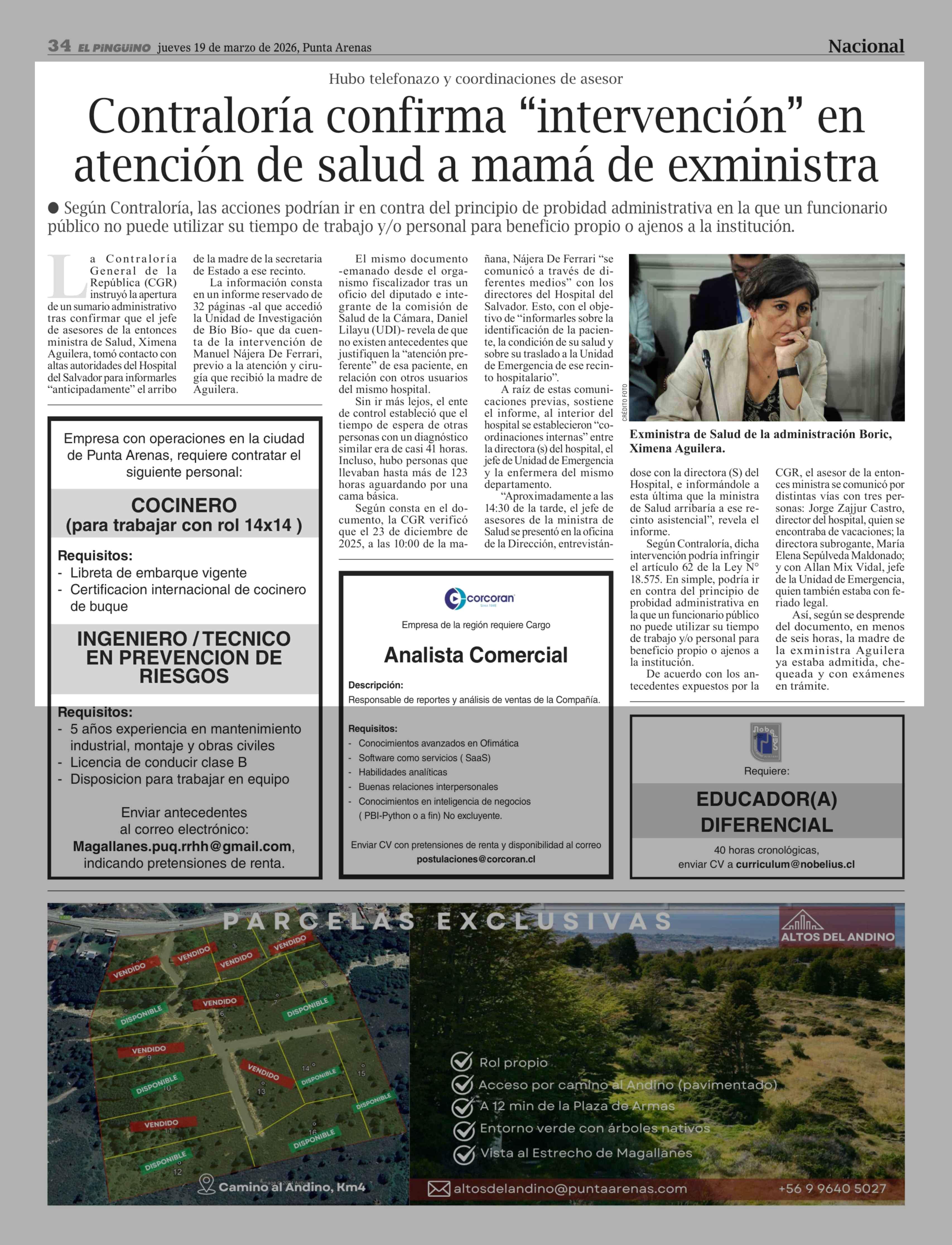 Contraloría confirma "intervención" en atención de salud a mamá de exministra 19-03-2026 El Pingüino |