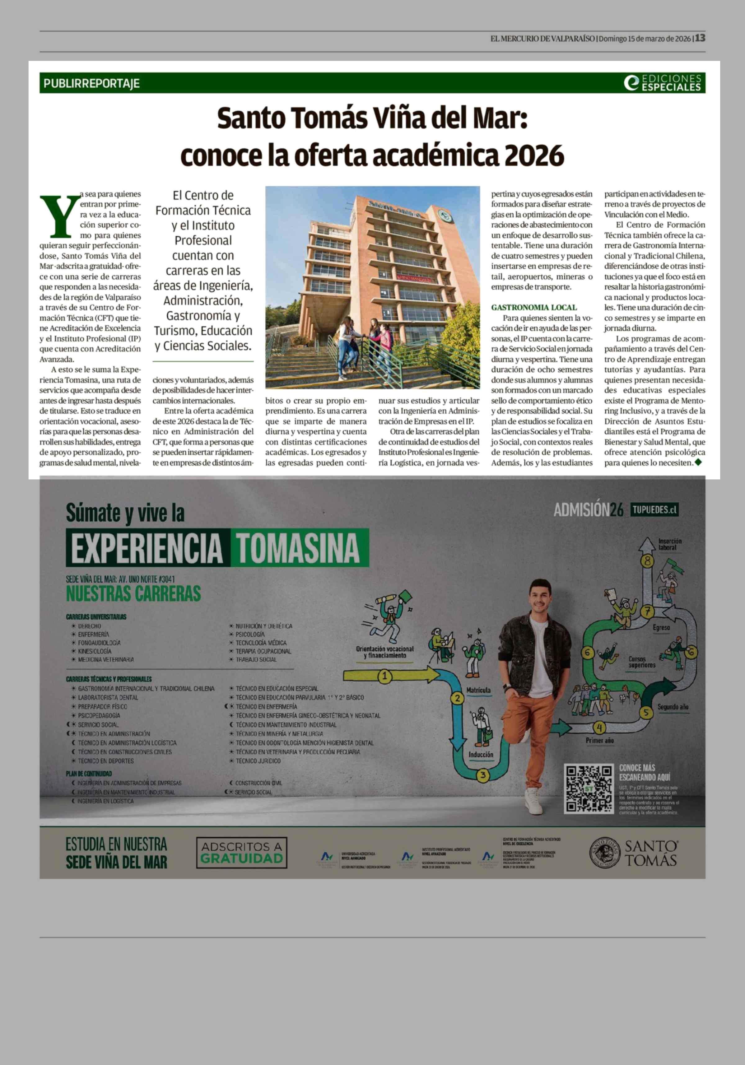 Santo Tomás Viña del Mar: conoce la oferta académica 2026 15-03-2026 El Mercurio de Valparaíso |