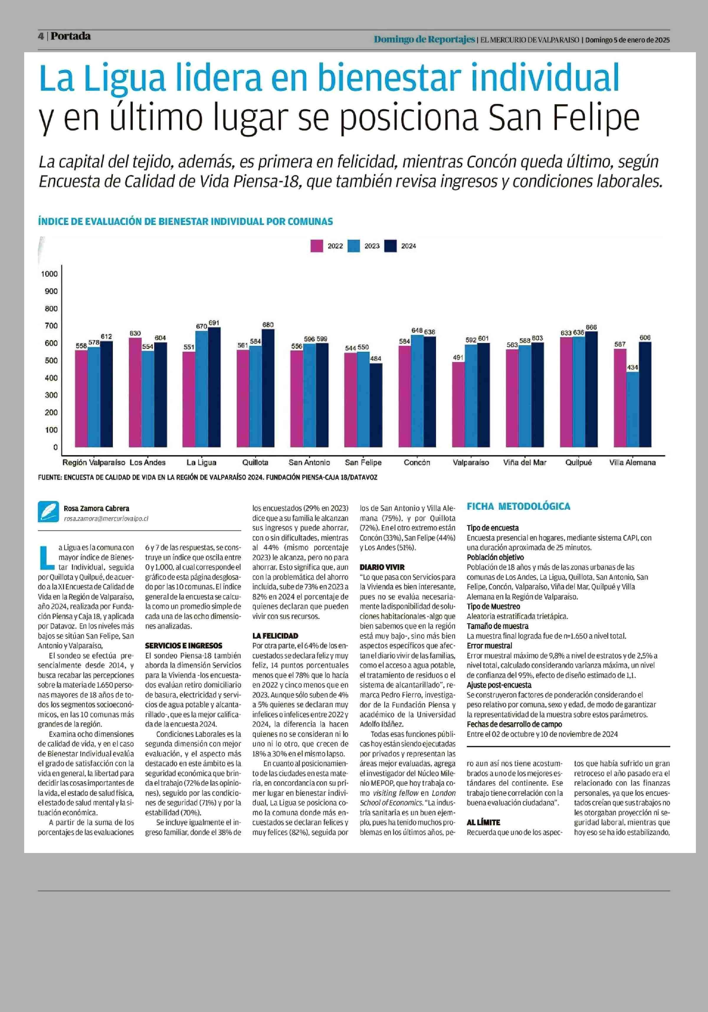 La Ligua lidera en bienestar individual y en último lugar se posiciona San Felipe 05-01-2025 El Mercurio de Valparaíso |