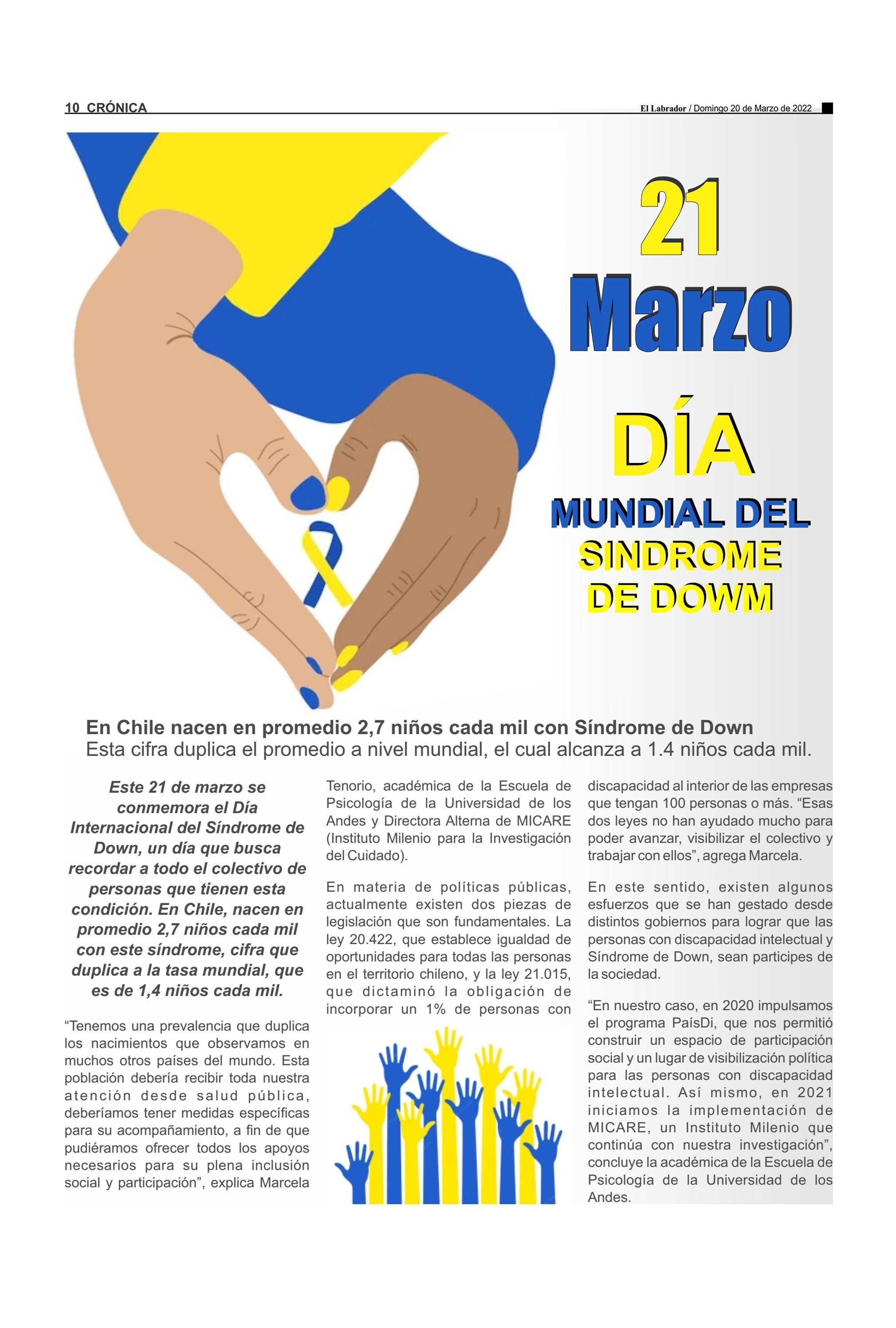21 Marzo DÍA MUNDIAL DEL SINDROME DE DOWM 20-03-2022 El Labrador |
