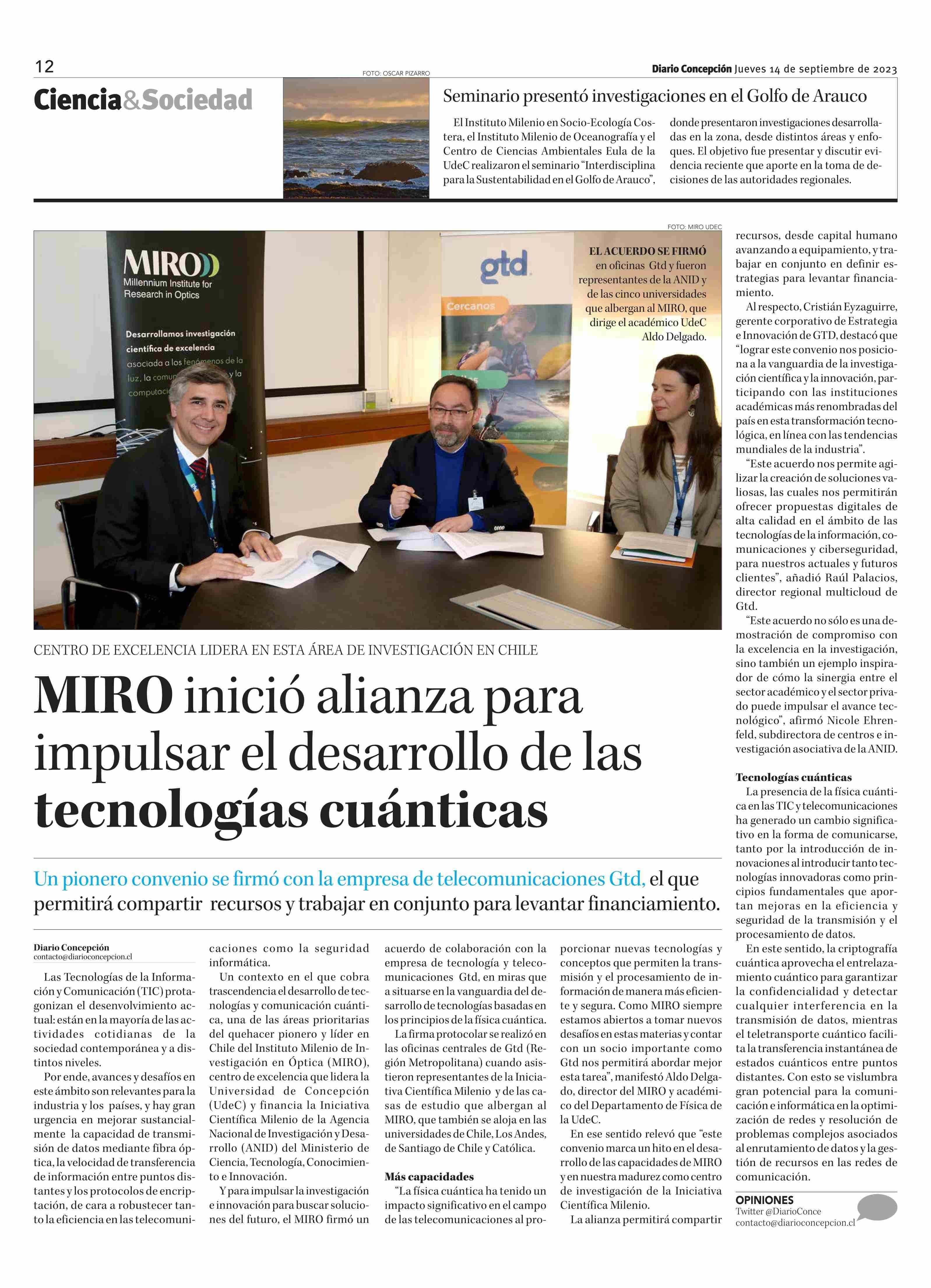 MIRO inició alianza para impulsar el desarrollo de las tecnologías cuánticas 14-09-2023 Diario Concepción |