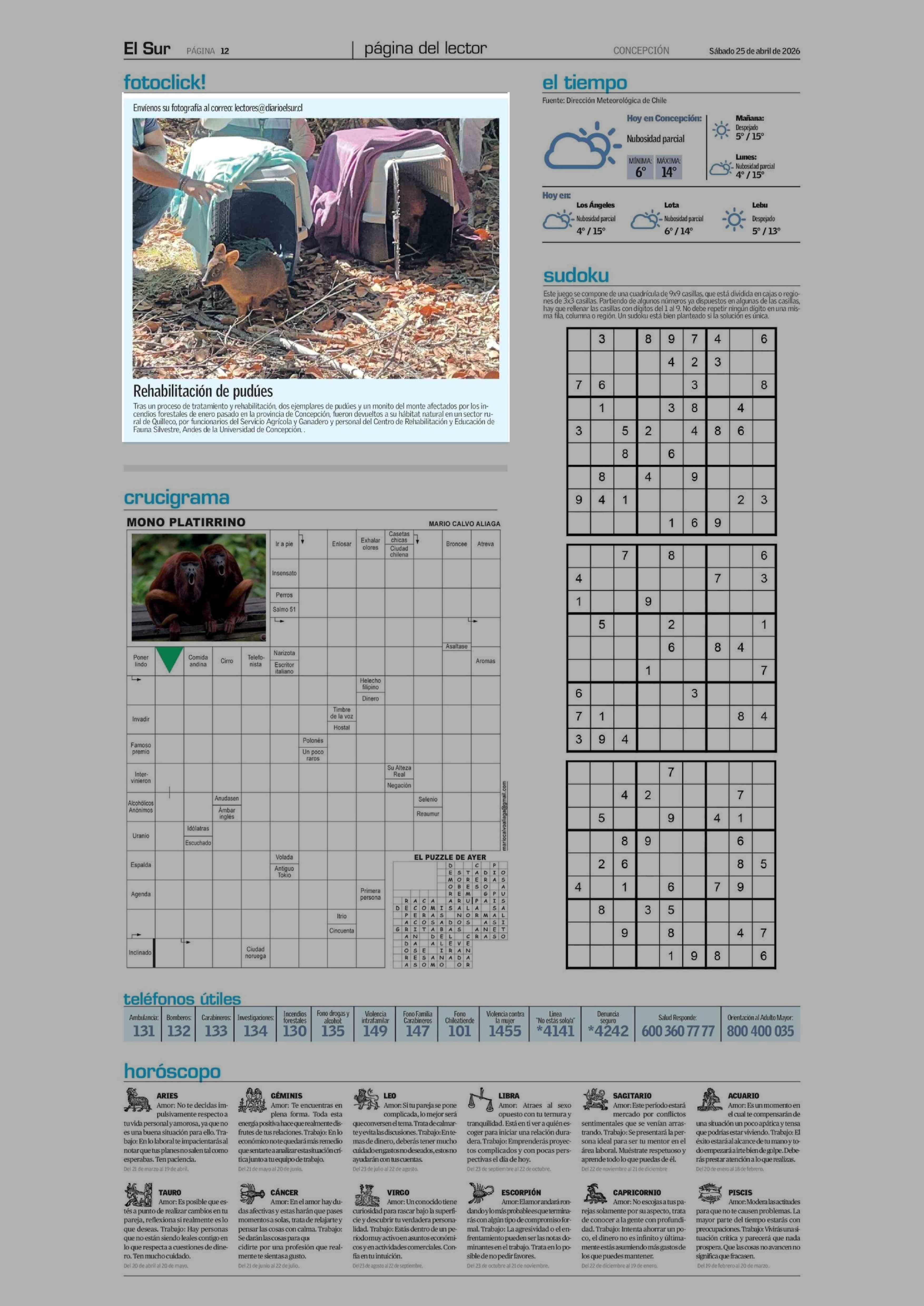 Rehabilitación de pudúes 25-04-2026 El Sur |