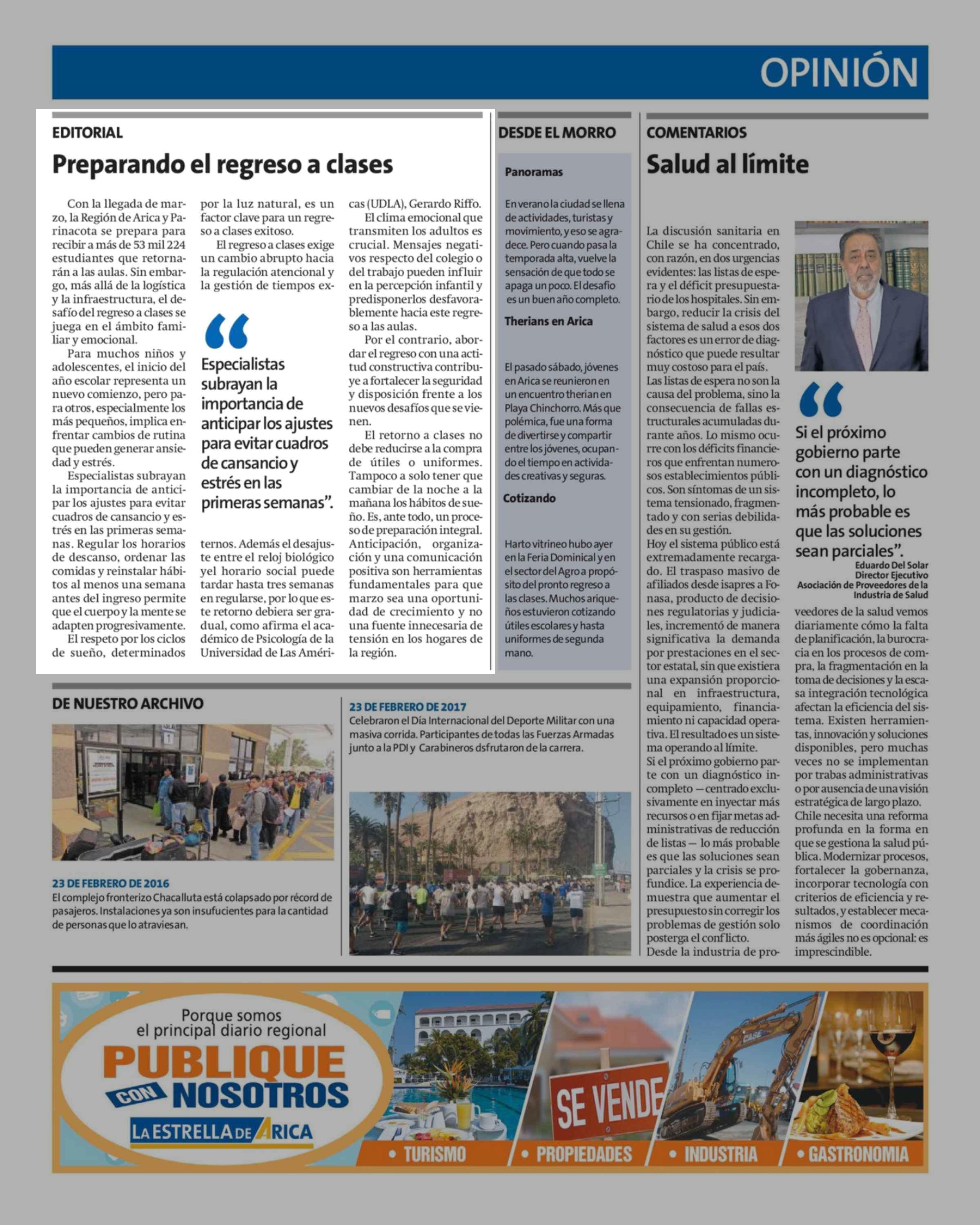 Editorial: Preparando el regreso a clases 23-02-2026 La Estrella de Arica |