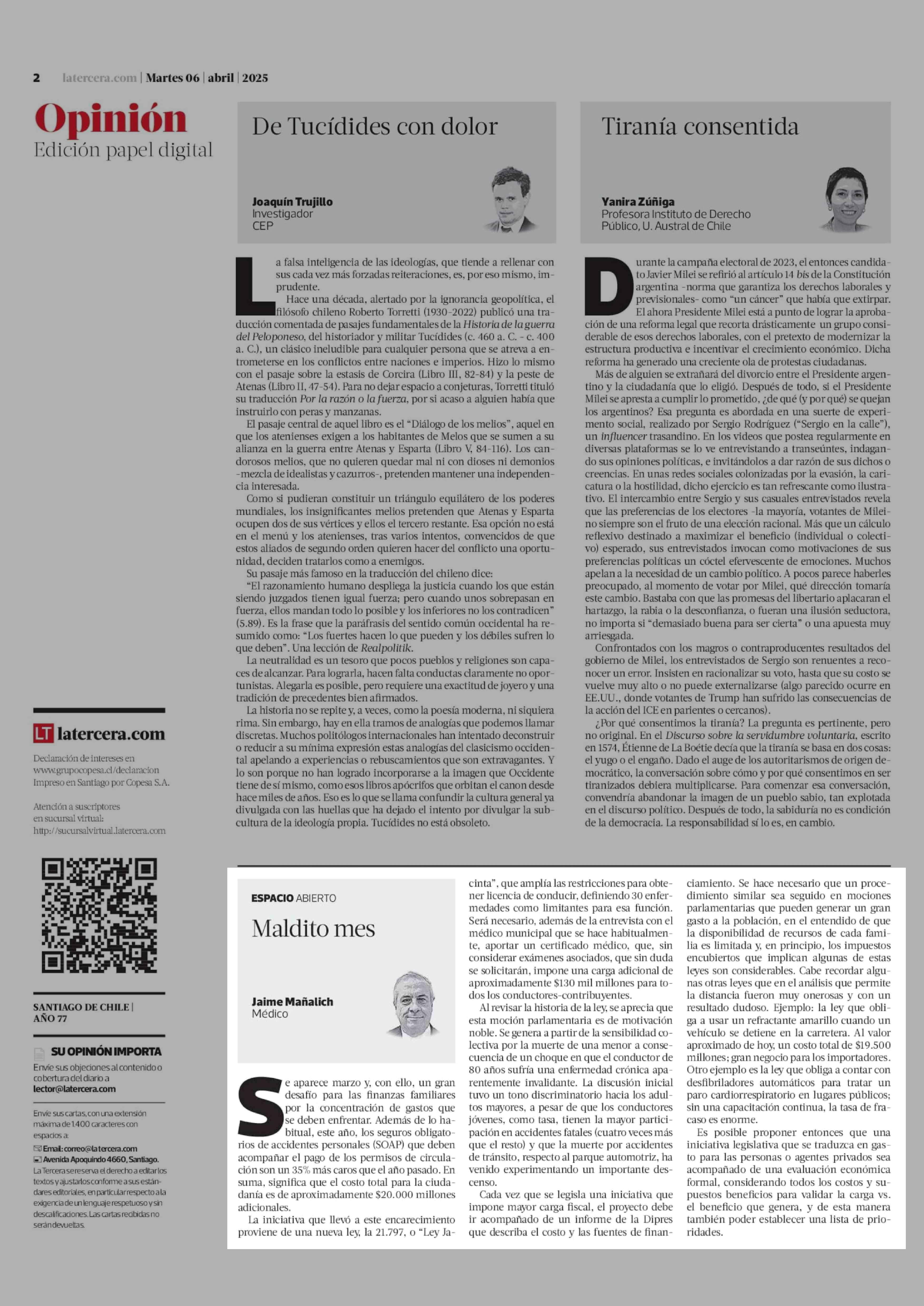 Columnas de Opinión: Maldito mes 25-02-2026 La Tercera |