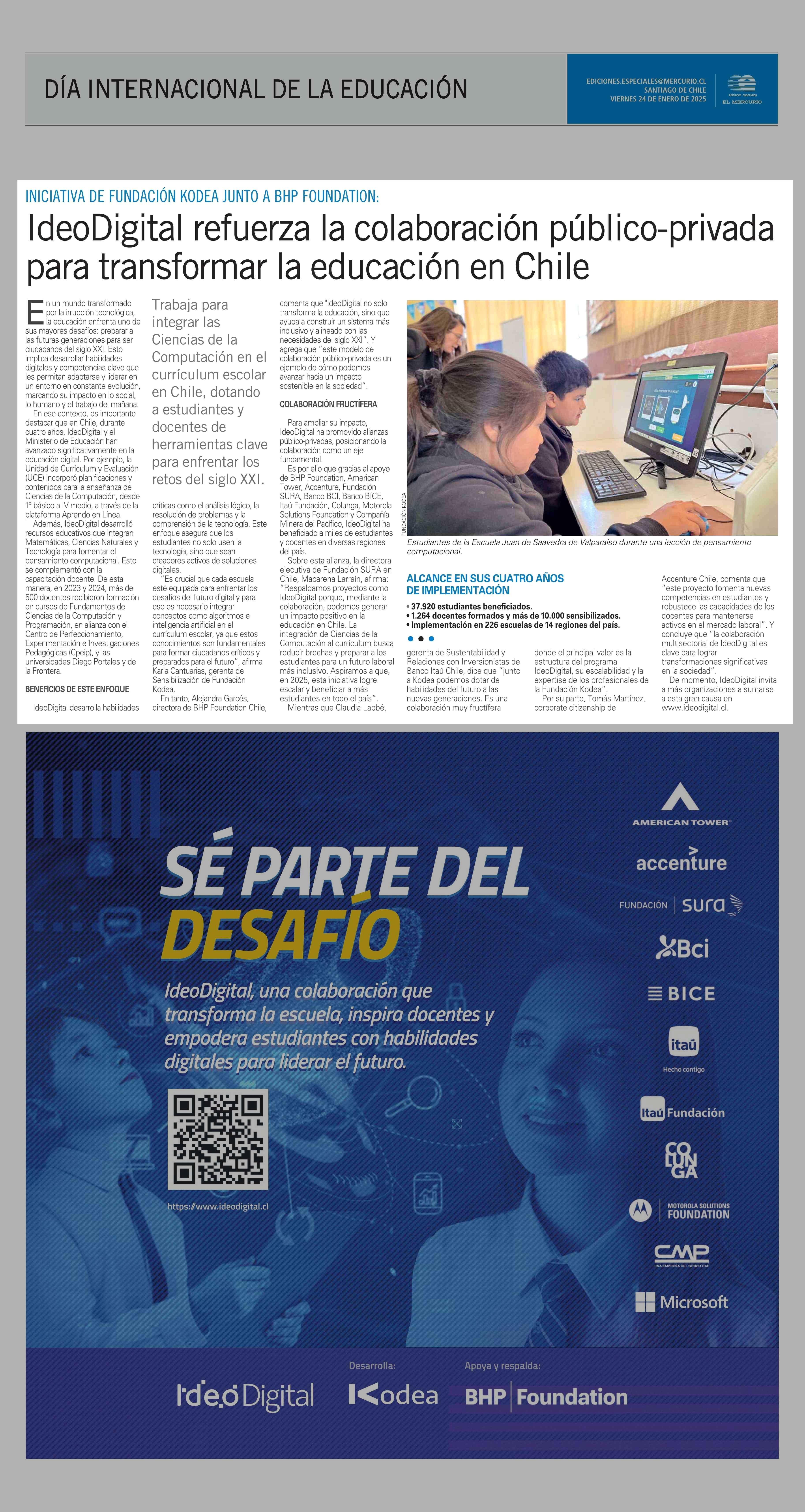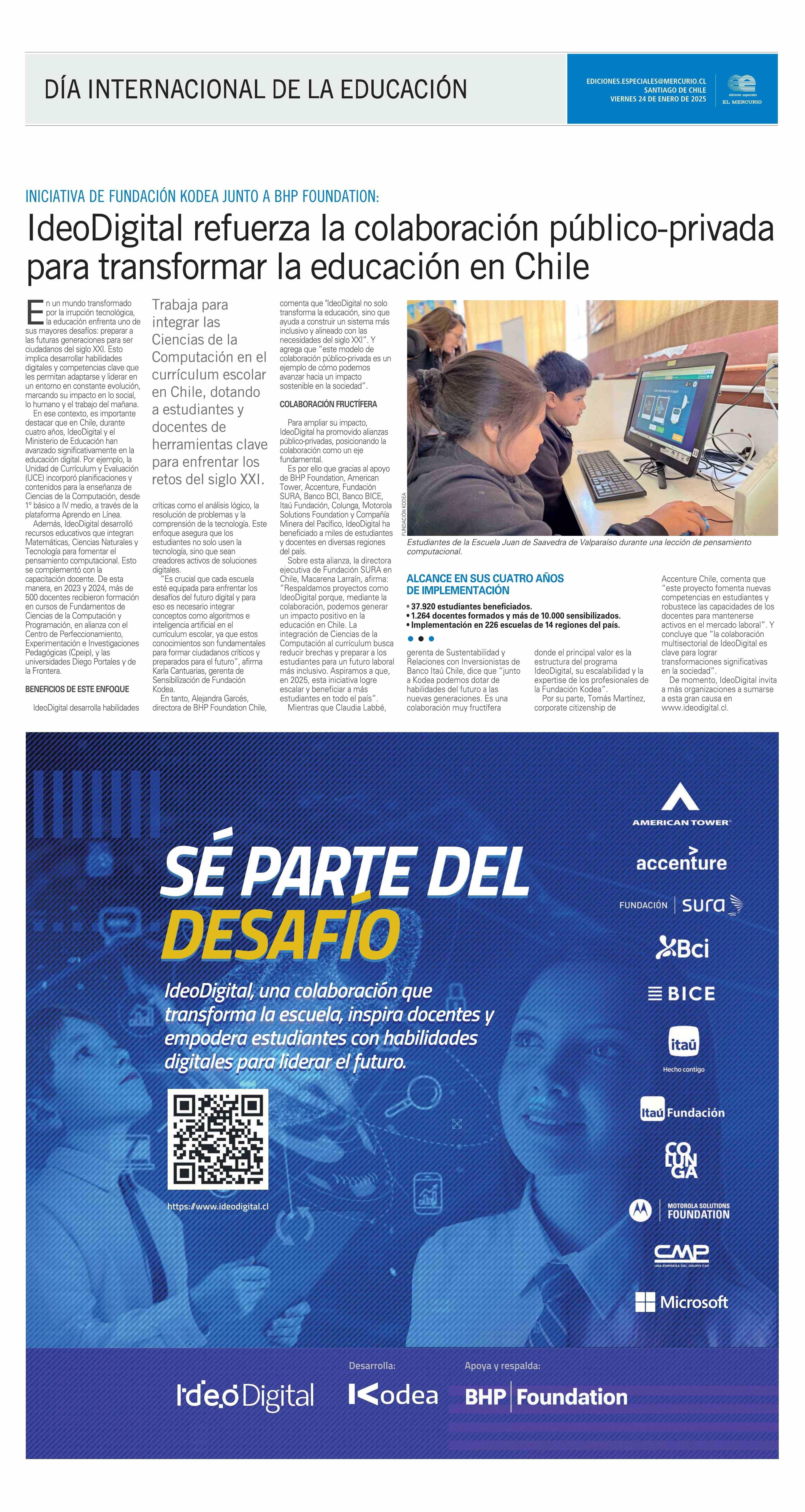 IdeoDigital refuerza la colaboración público-privada para transformar la educación en Chile 24-01-2025 El Mercurio |