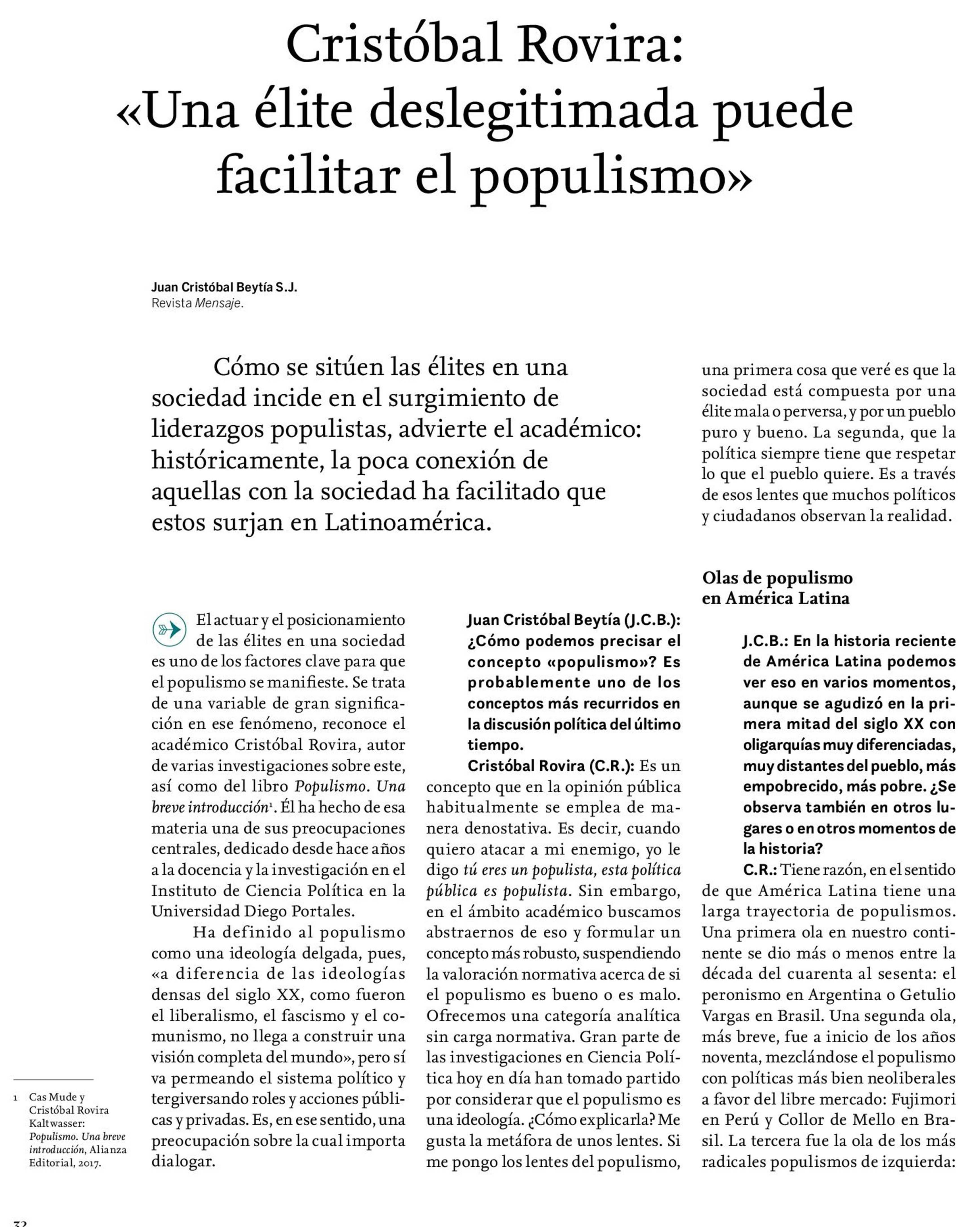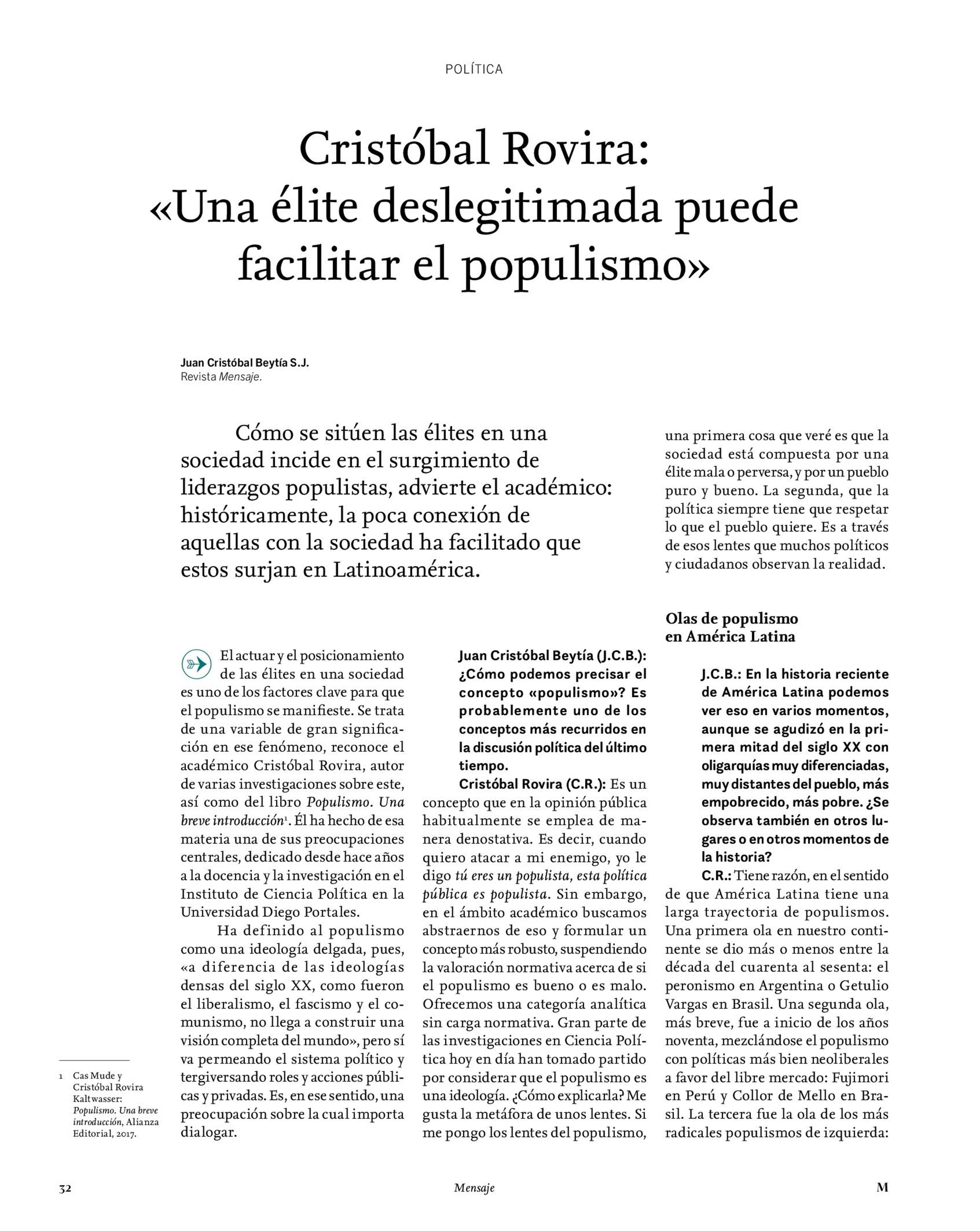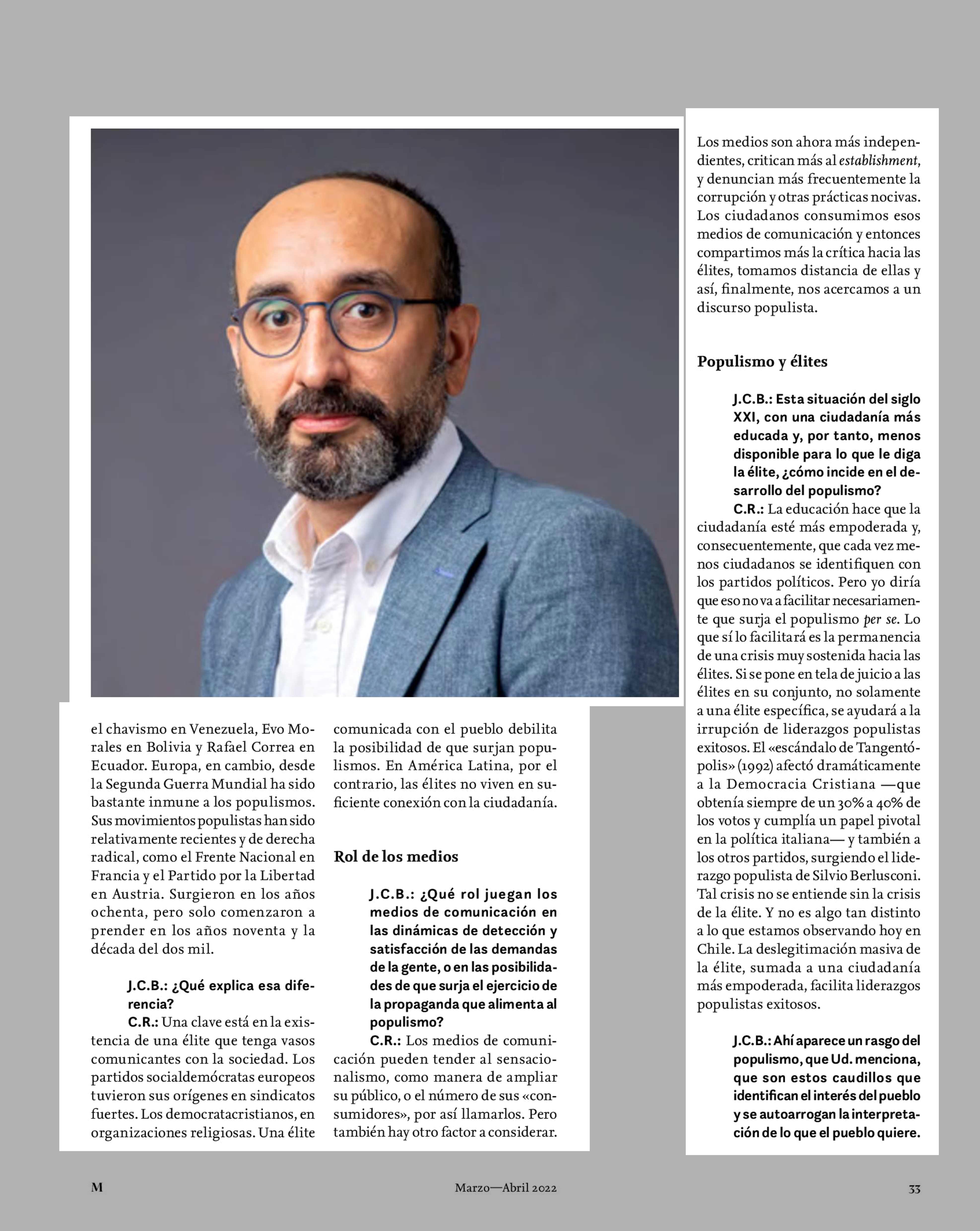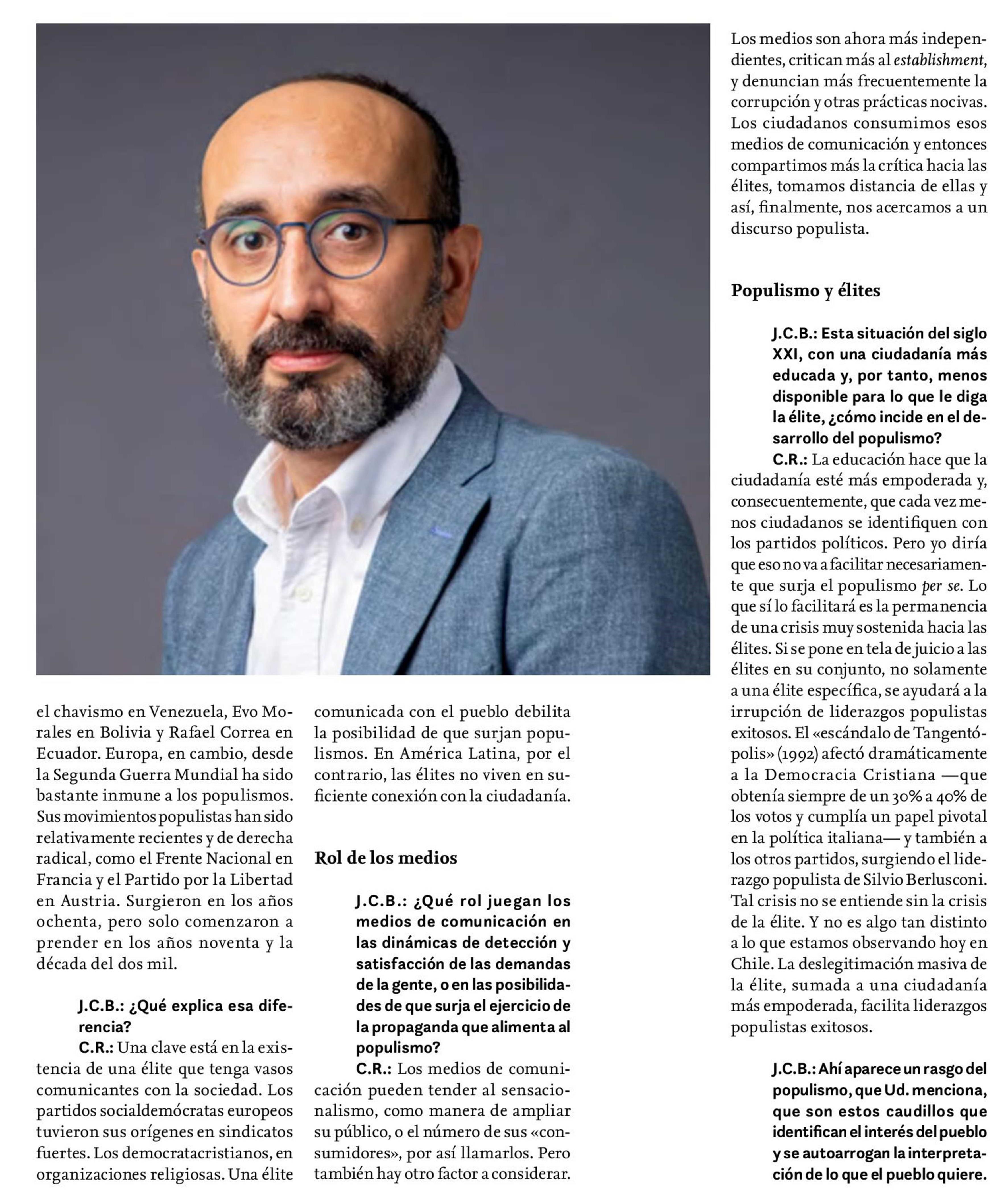 Cristóbal Rovira: «Una élite deslegitimada puede facilitar el populismo» 01-04-2022 Revista Mensaje |
