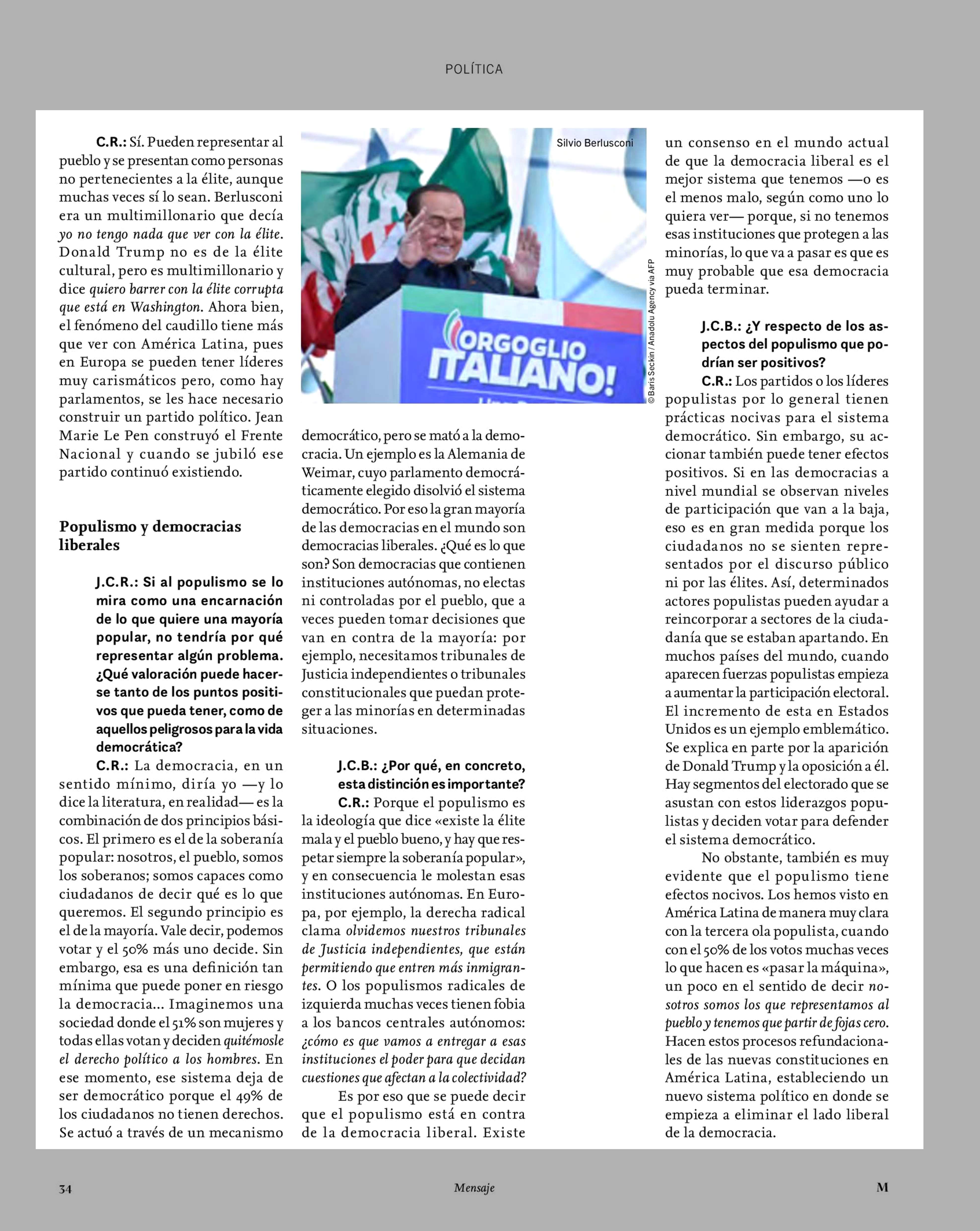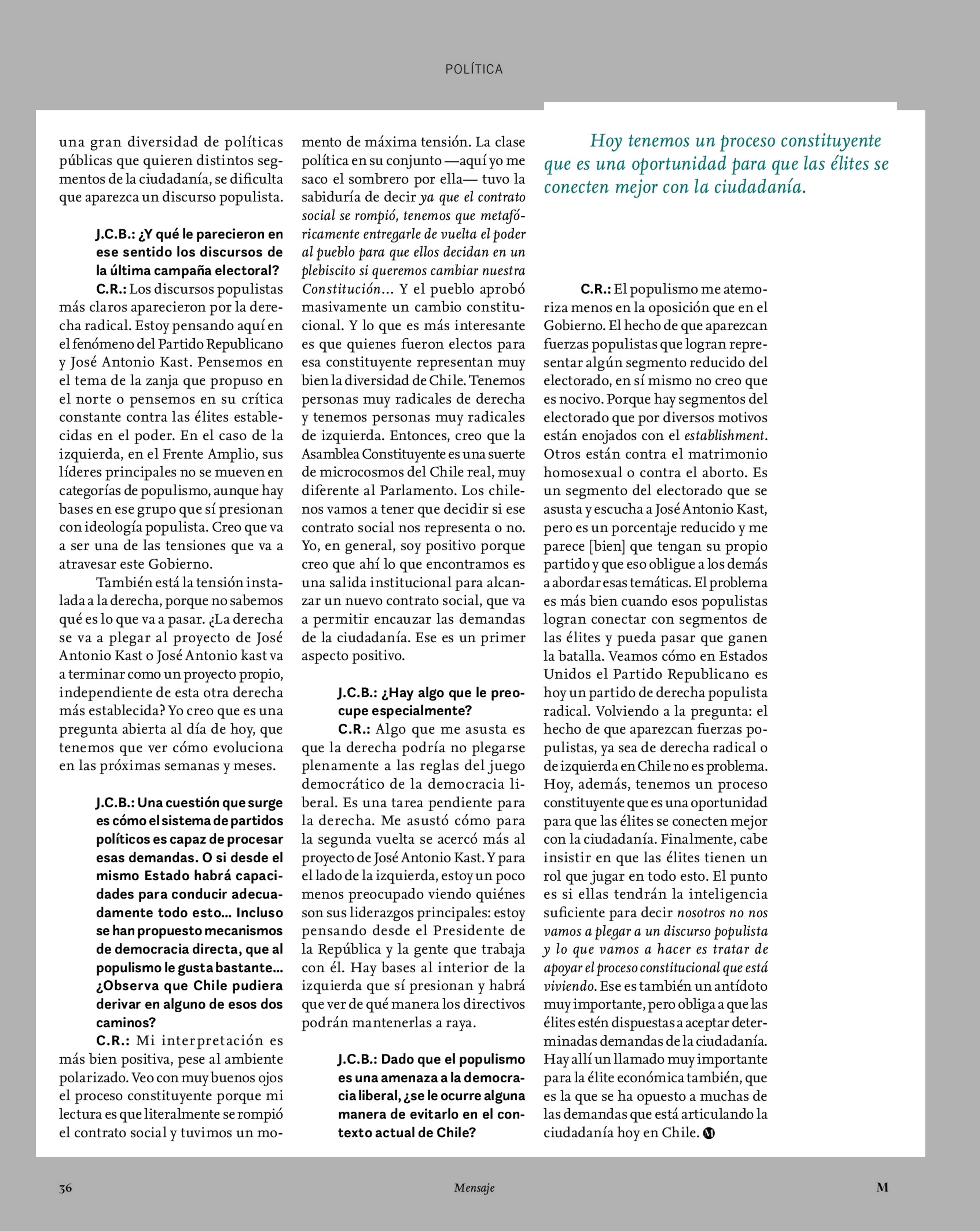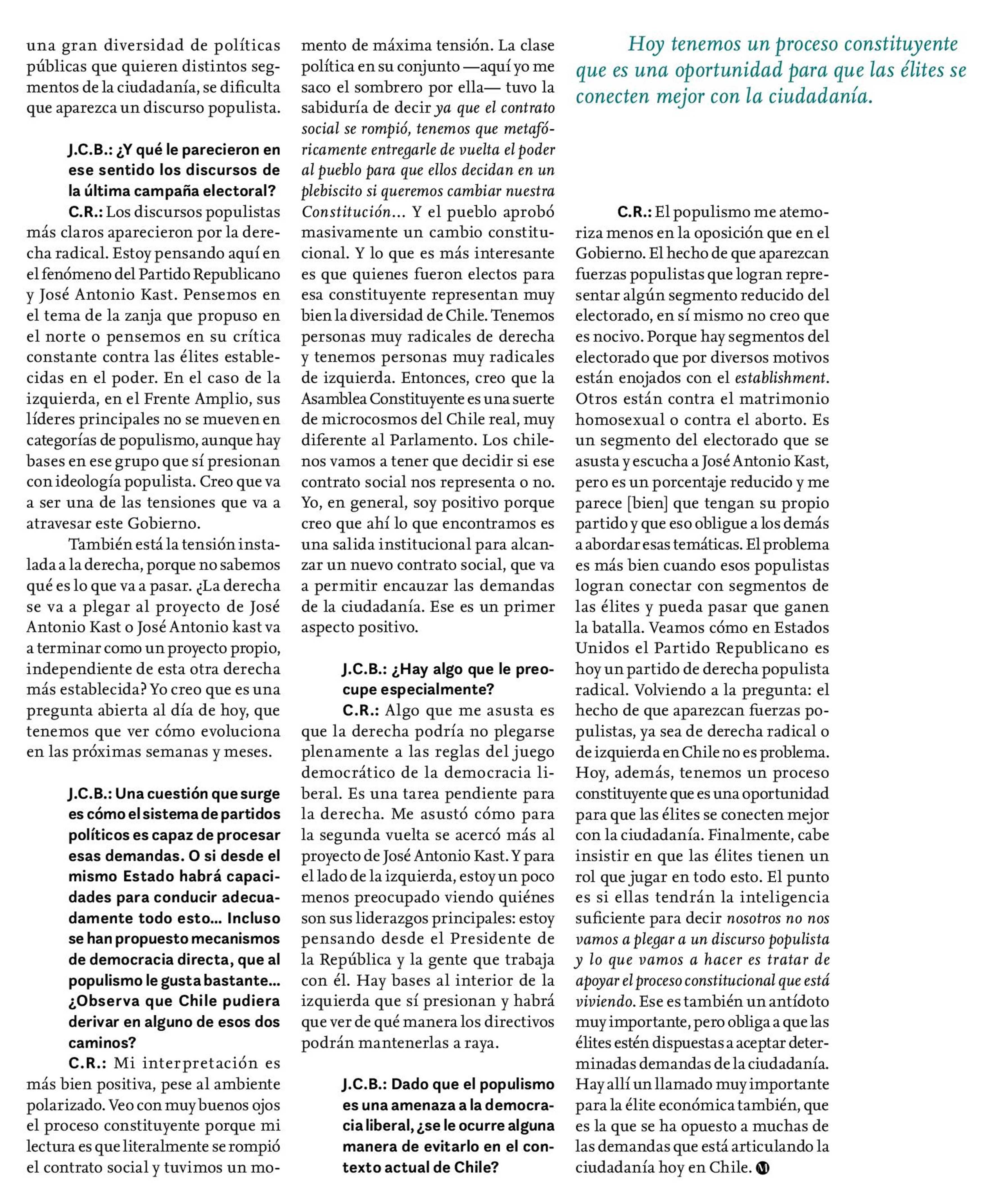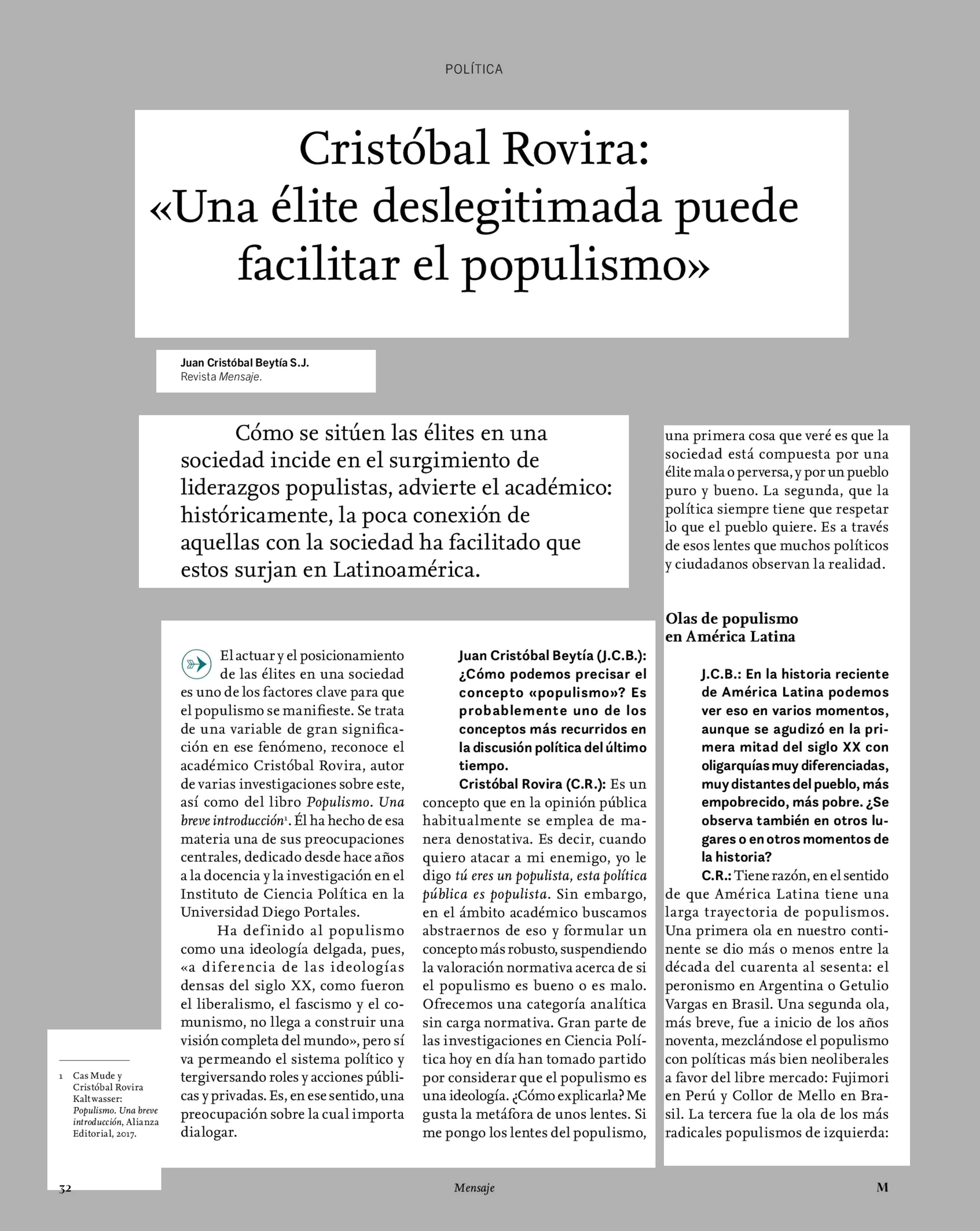 Cristóbal Rovira: «Una élite deslegitimada puede facilitar el populismo» 01-04-2022 Revista Mensaje |