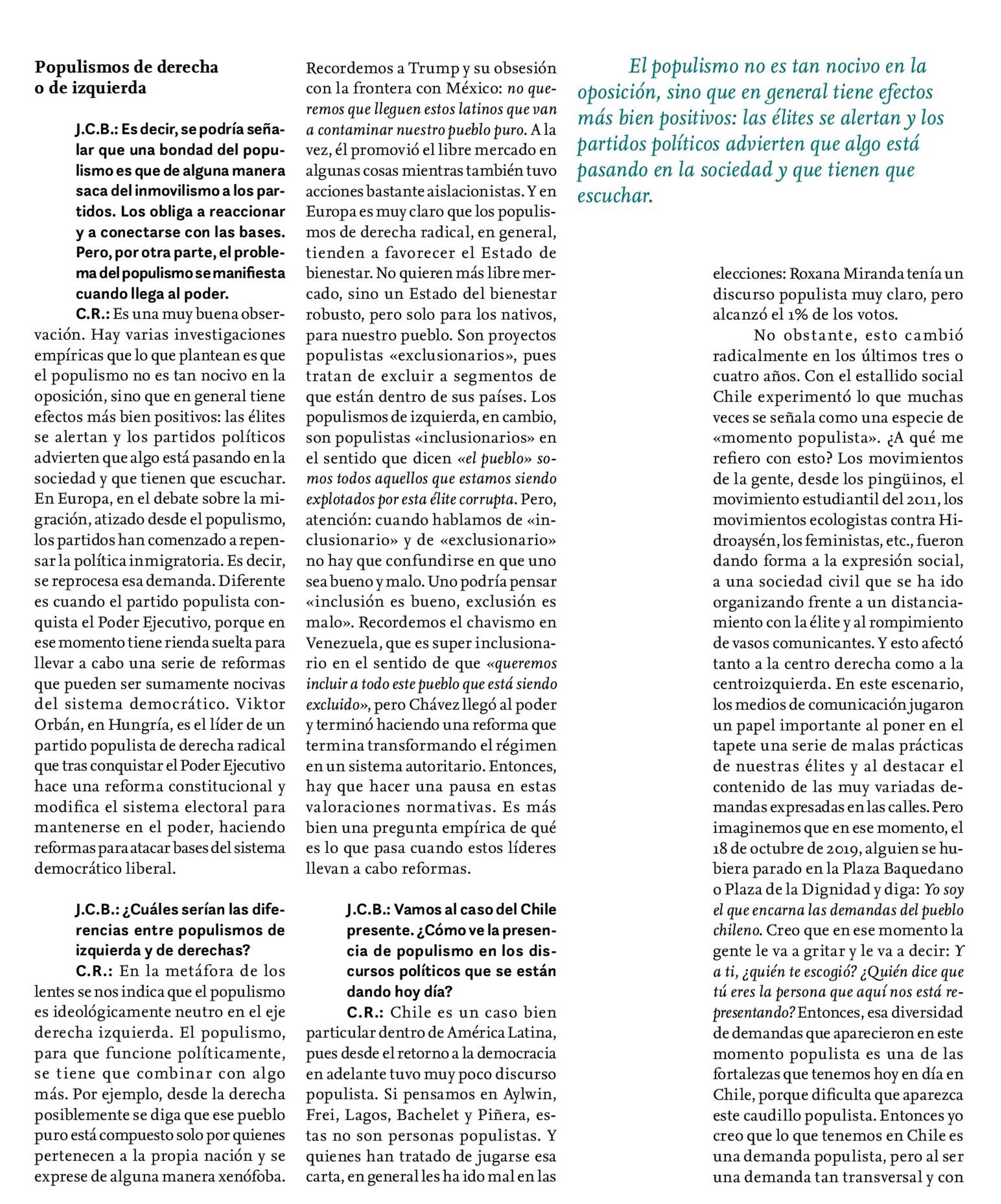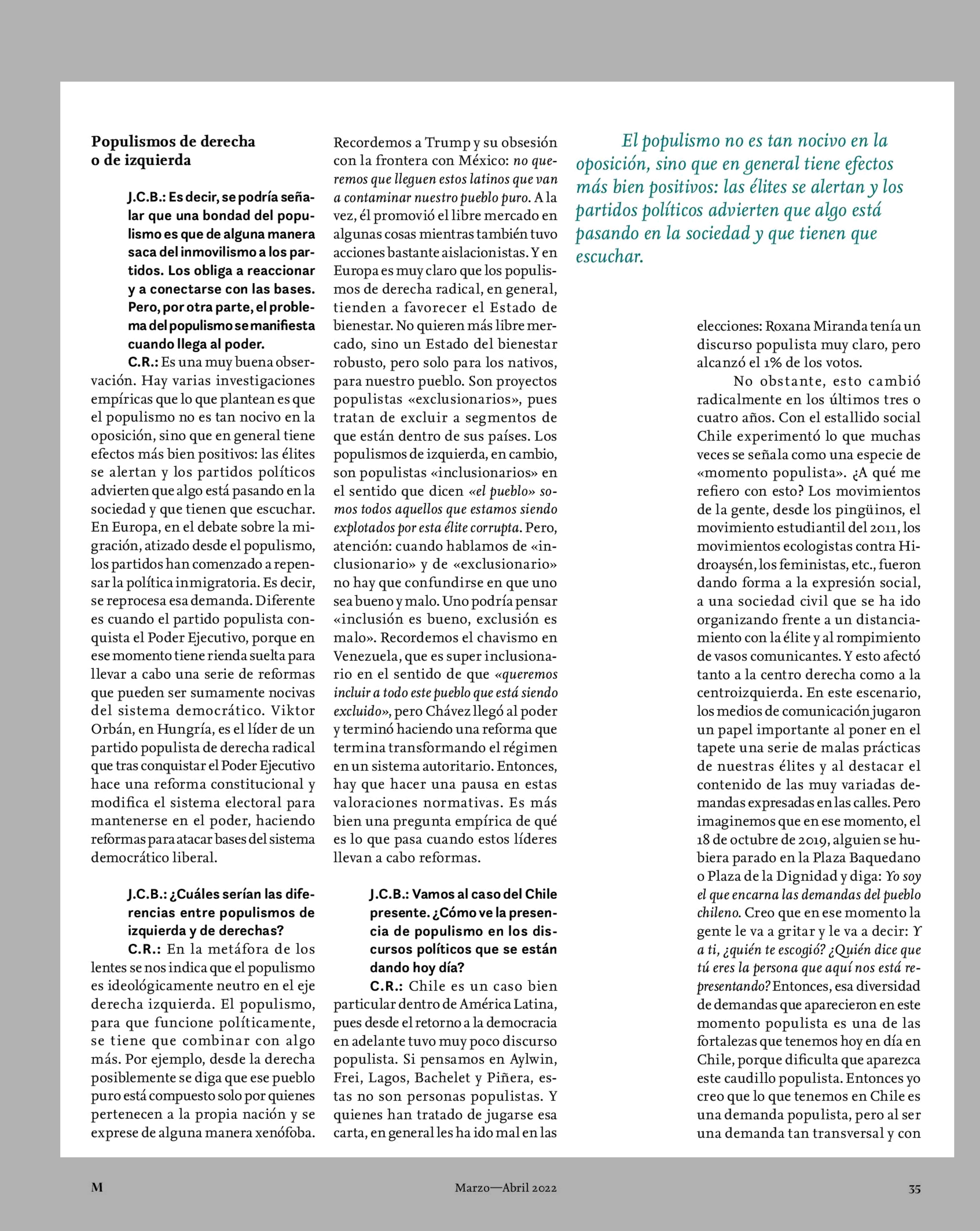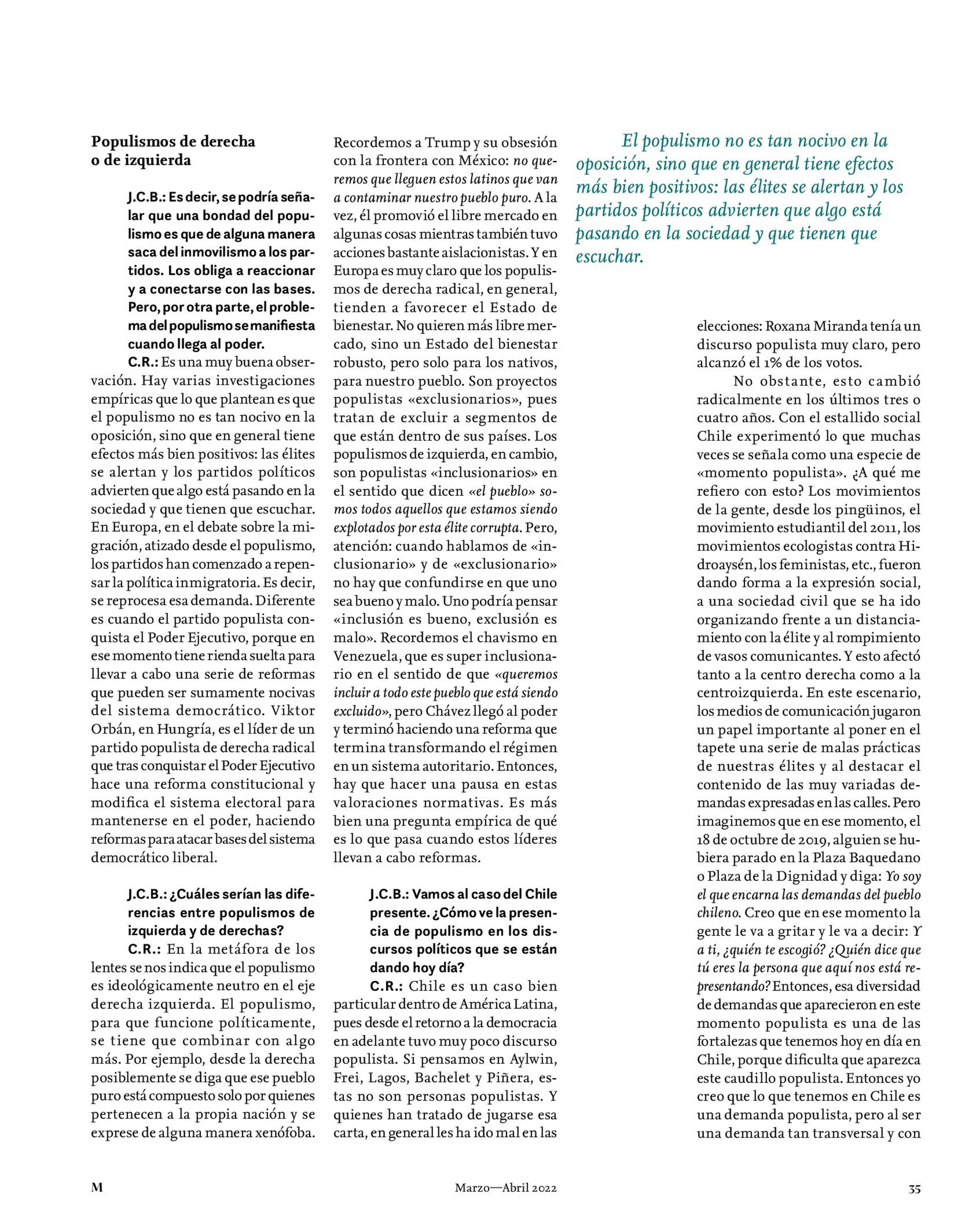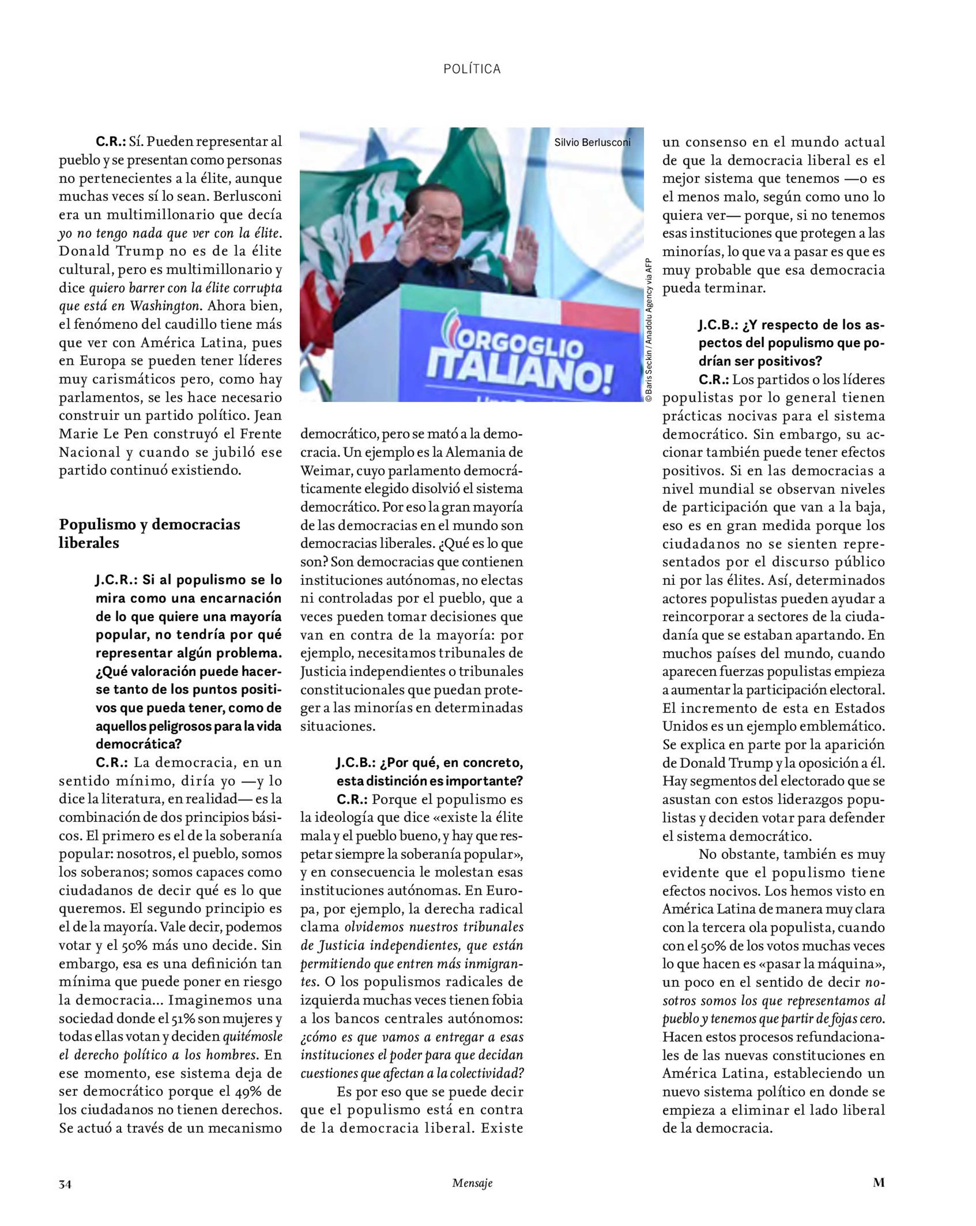 Cristóbal Rovira: «Una élite deslegitimada puede facilitar el populismo» 01-04-2022 Revista Mensaje |
