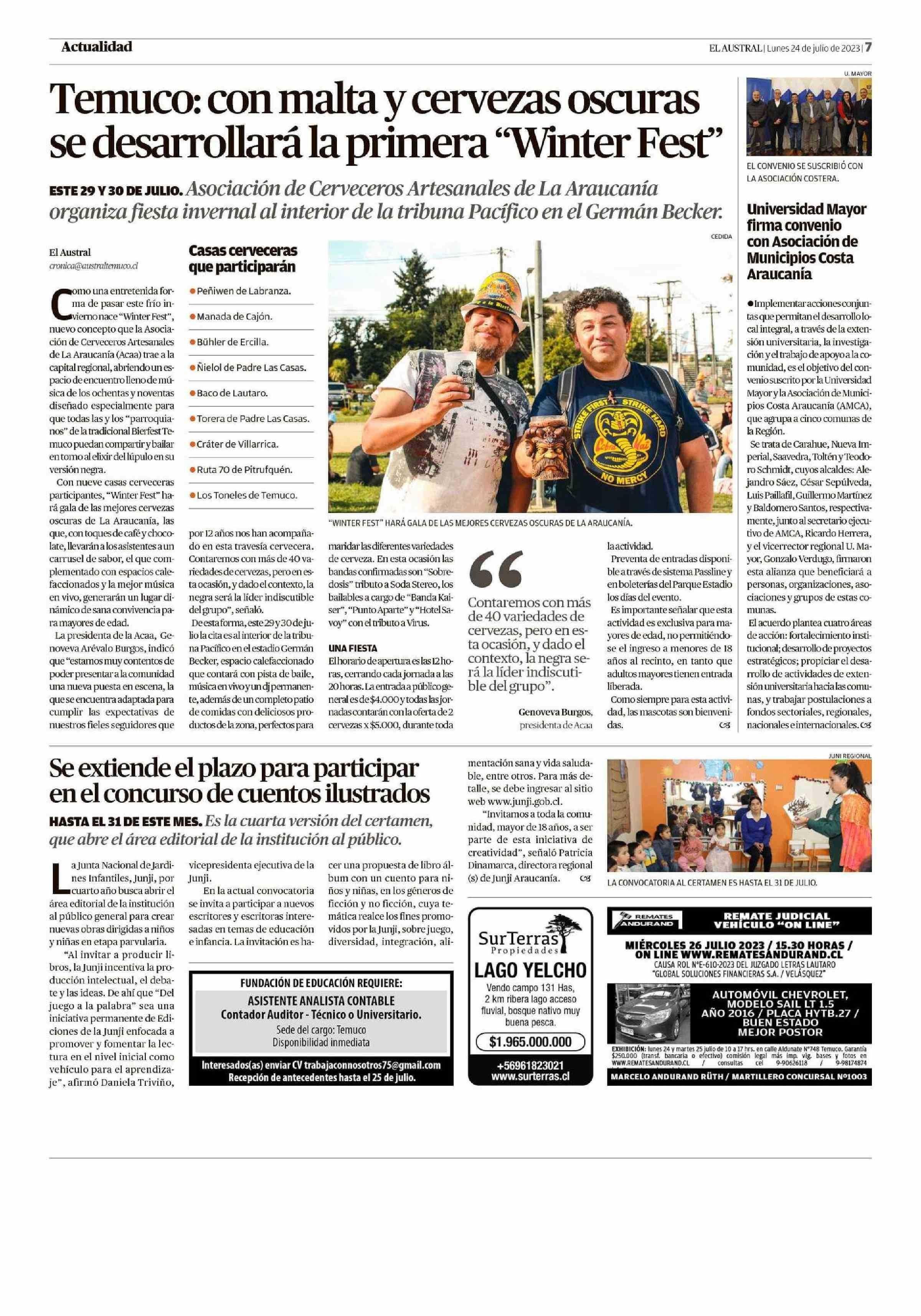 | Fecha: | 24-07-2023 | Sector: | Noticia general | Región: | Región de la Araucanía |