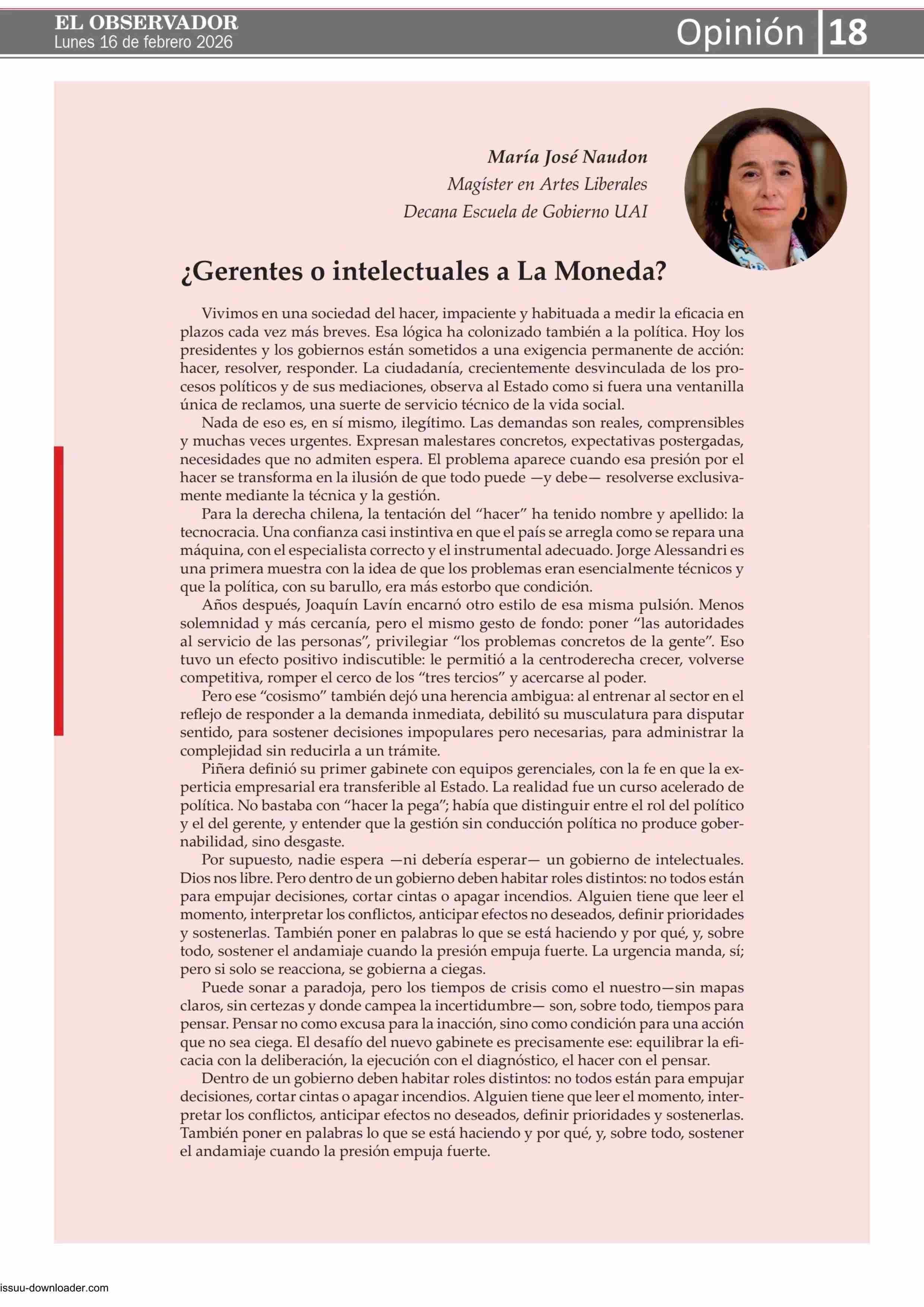 Título: ¿Gerentes o intelectuales a La Moneda?