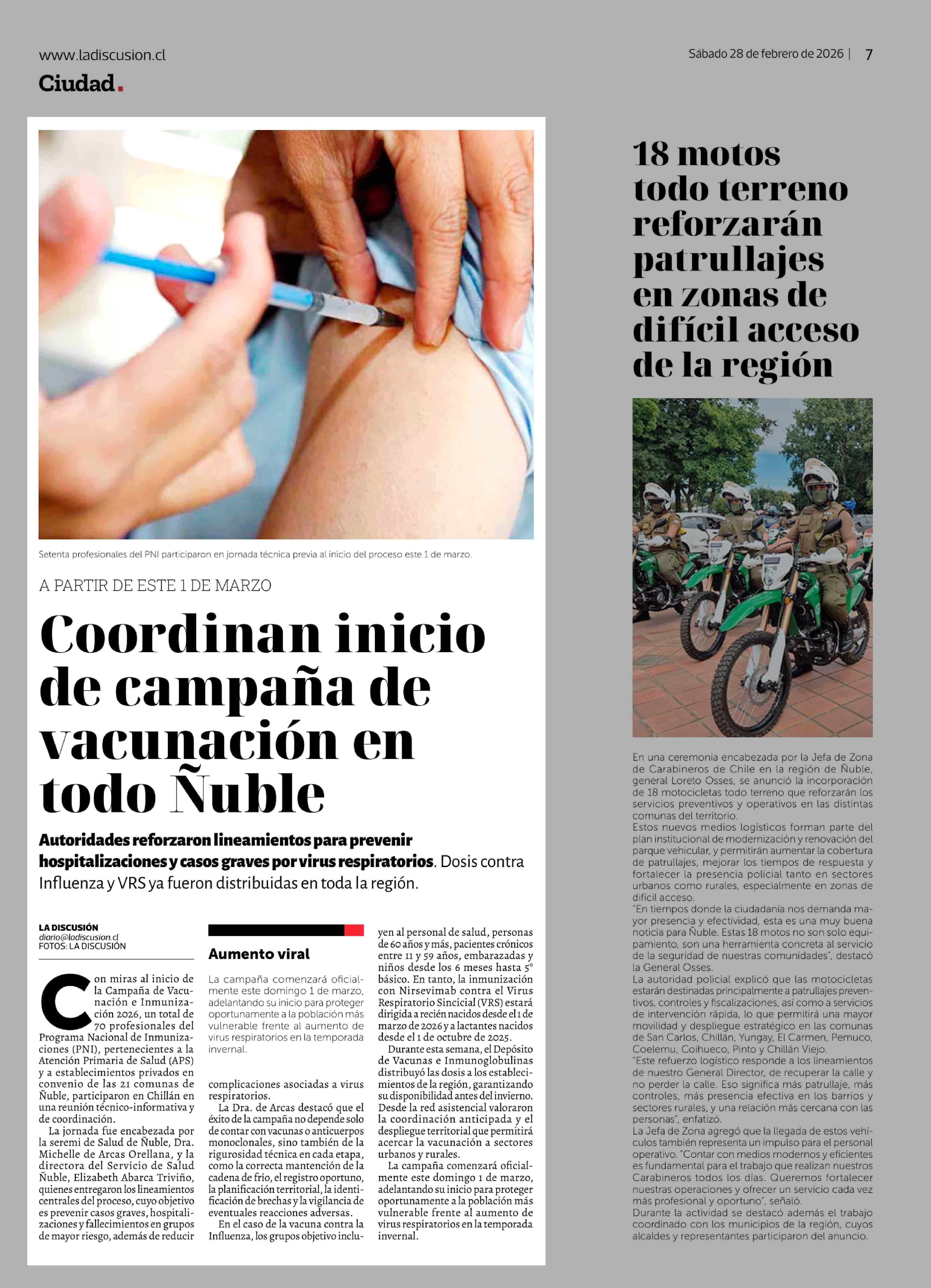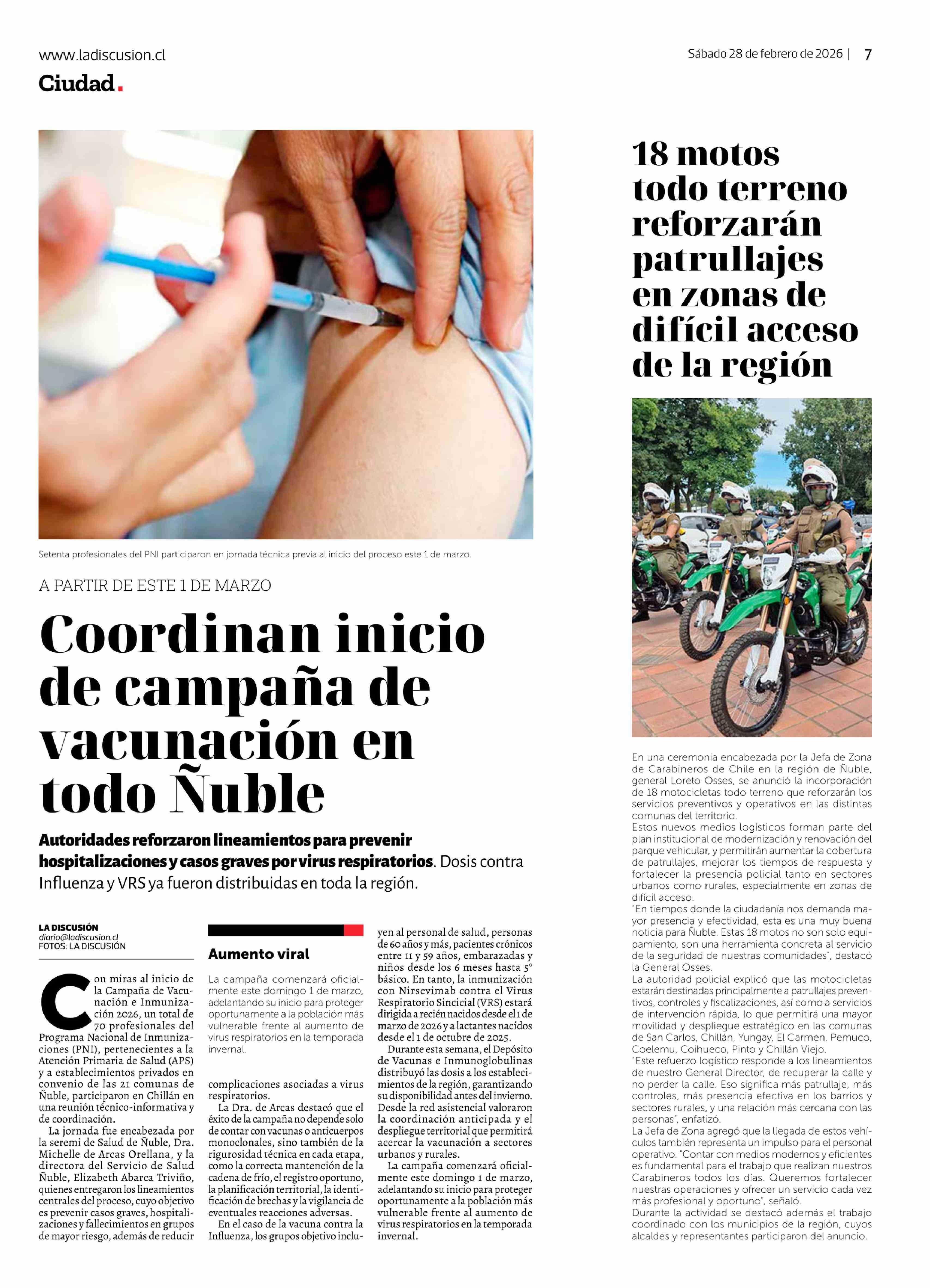 Fecha: 28-02-2026 Sector: Noticia general Región: Región del Ñuble