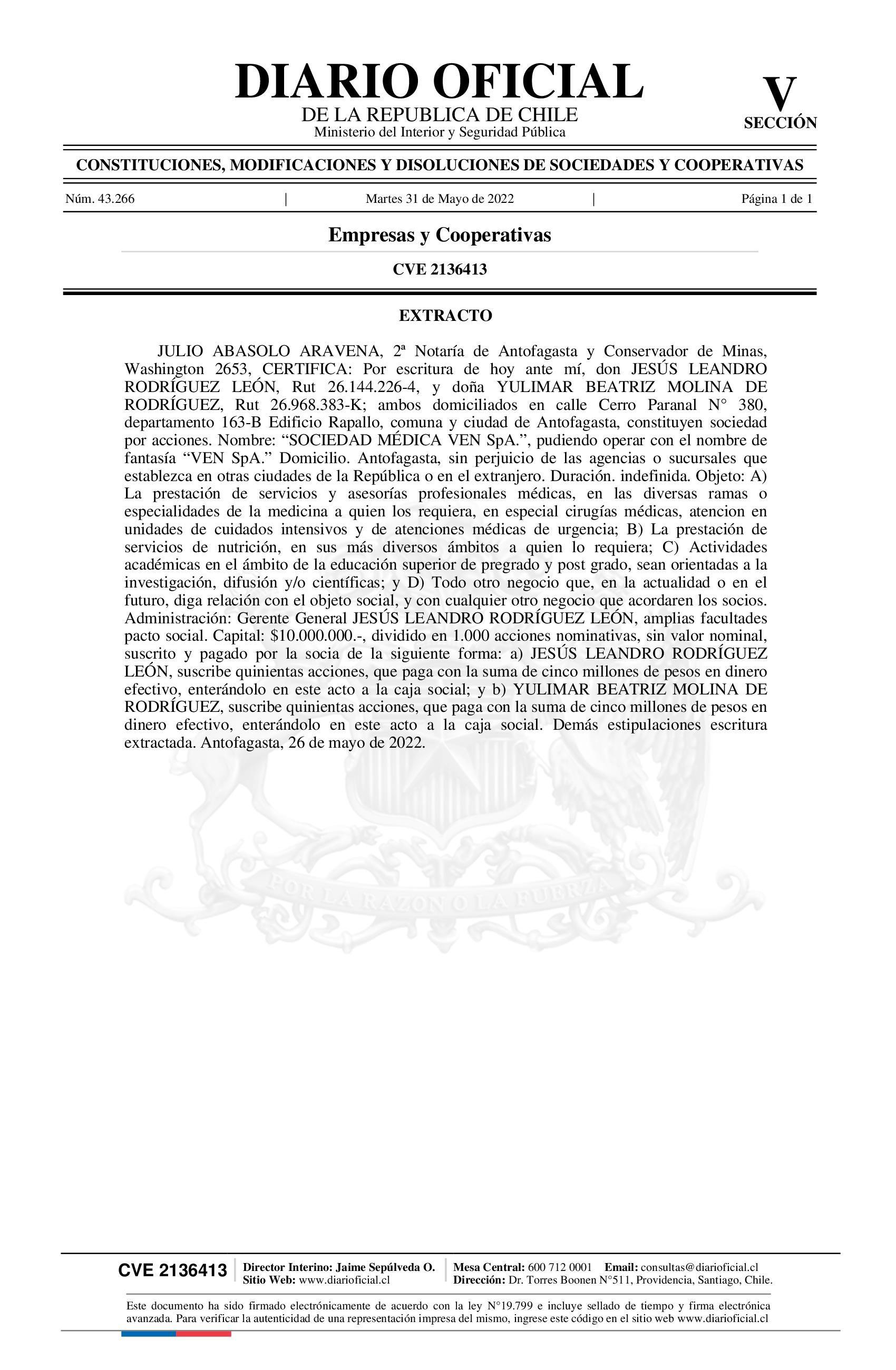 Extracto 31-05-2022 Diario Oficial Edición Electrónica |