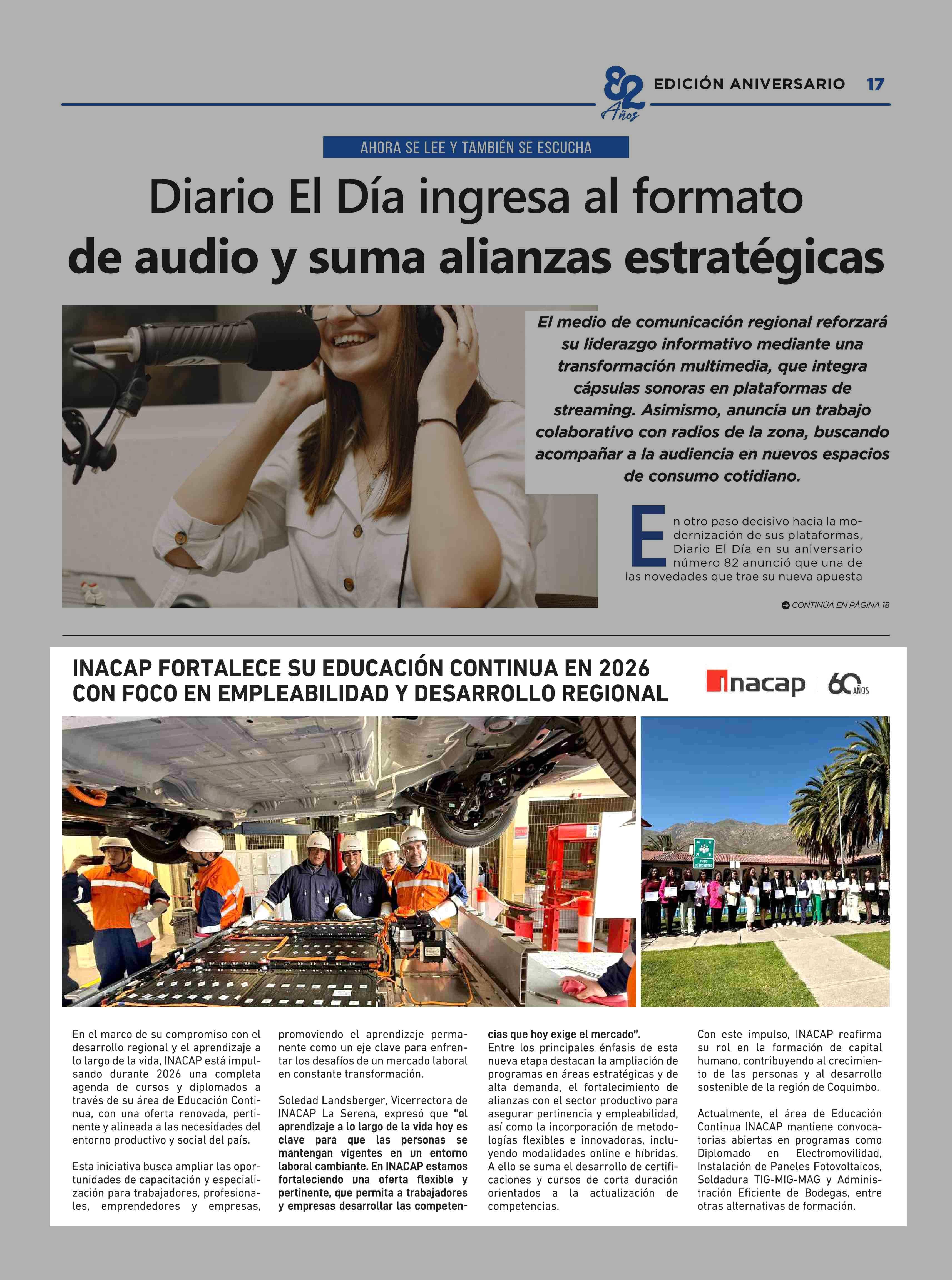 INACAP FORTALECE SU EDUCACIÓN CONTINUA EN 2026 CON FOCO EN EMPLEABILIDAD Y DESARROLLO REGIONAL 01-04-2026 El Día |