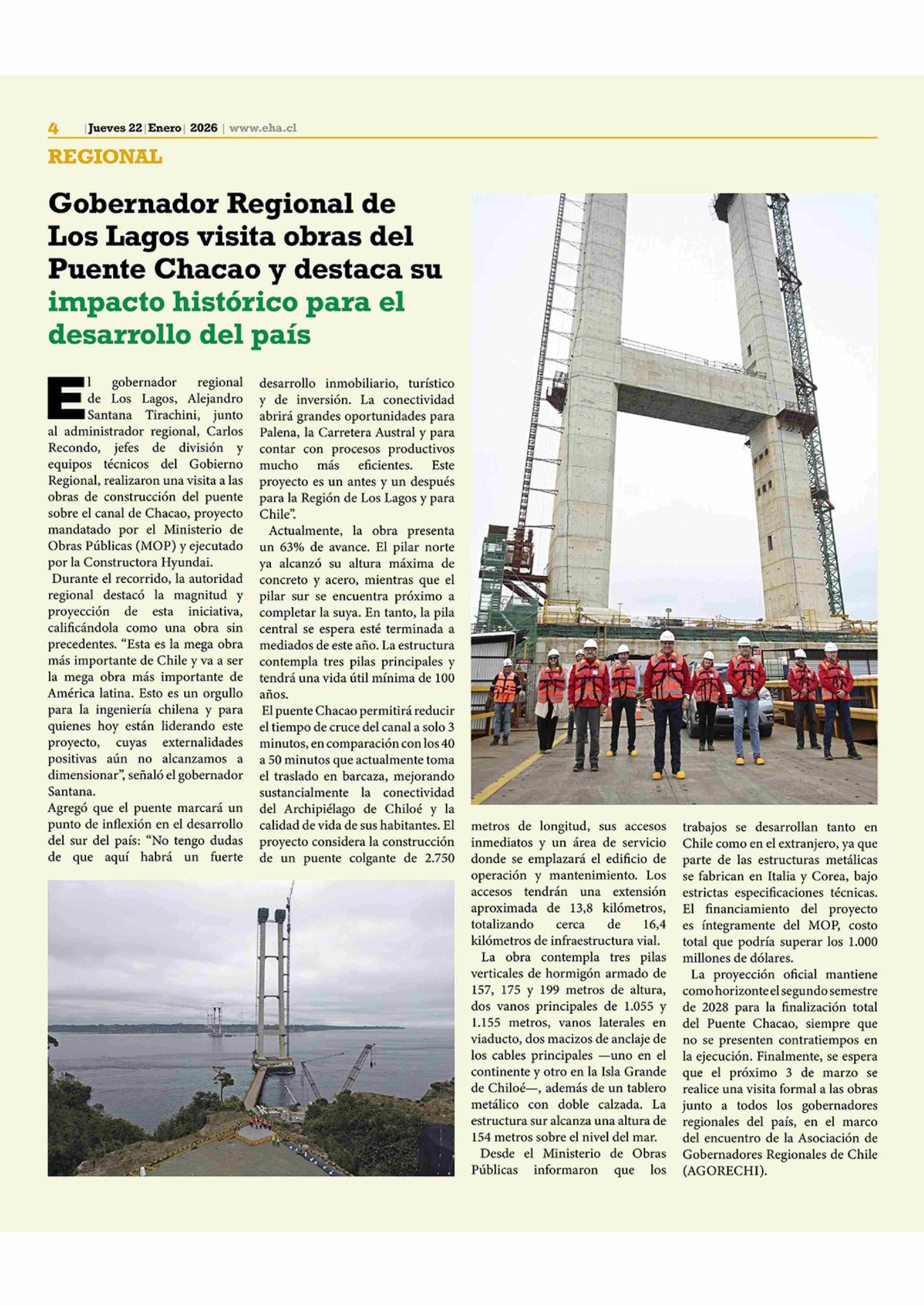 Título: Gobernador Regional de Los Lagos visita obras del Puente Chacao y destaca su impacto histórico para el desarrollo del país