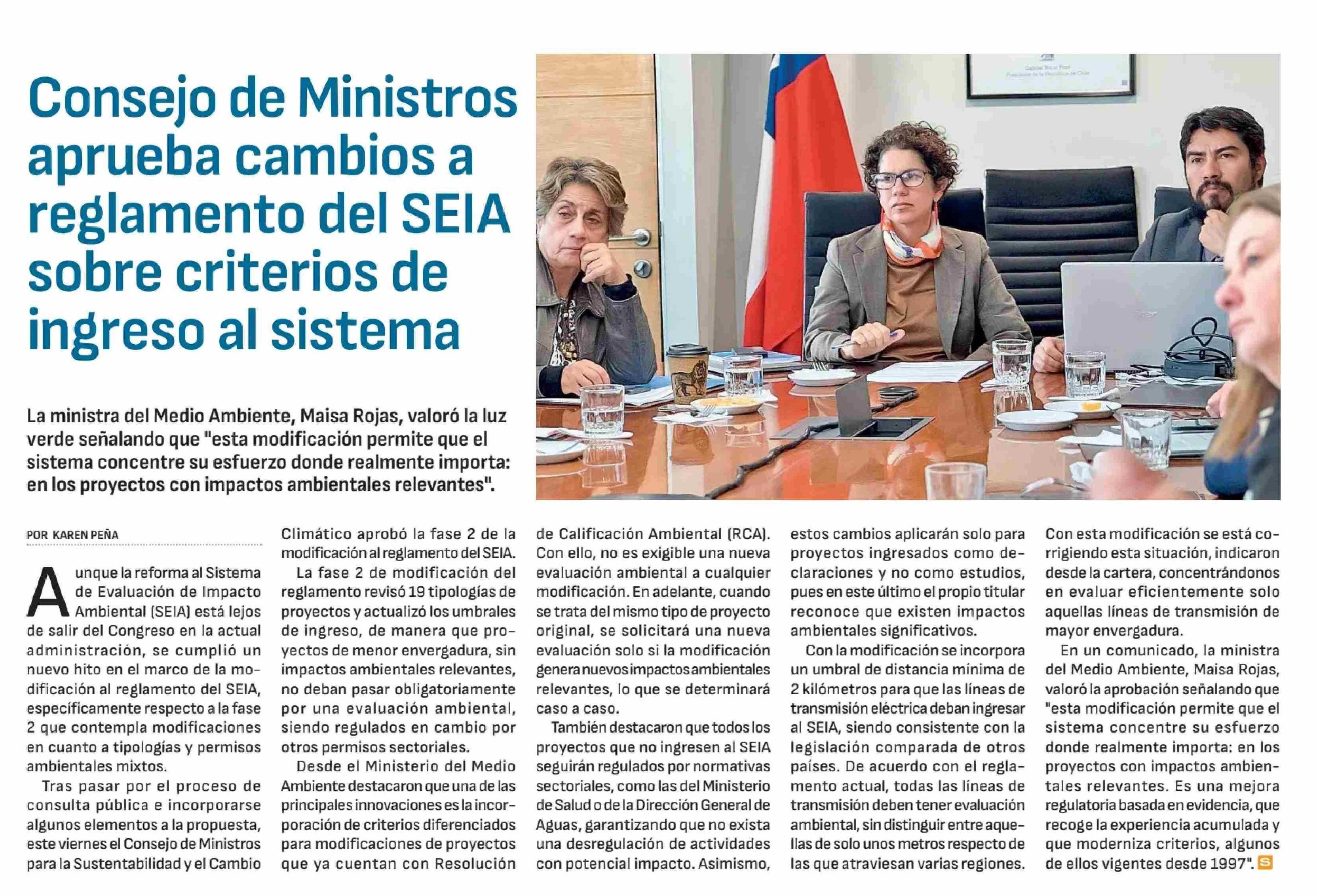 Título: Consejo de Ministros aprueba cambios a reglamento del SElA sobre criterios de ingreso al sistema