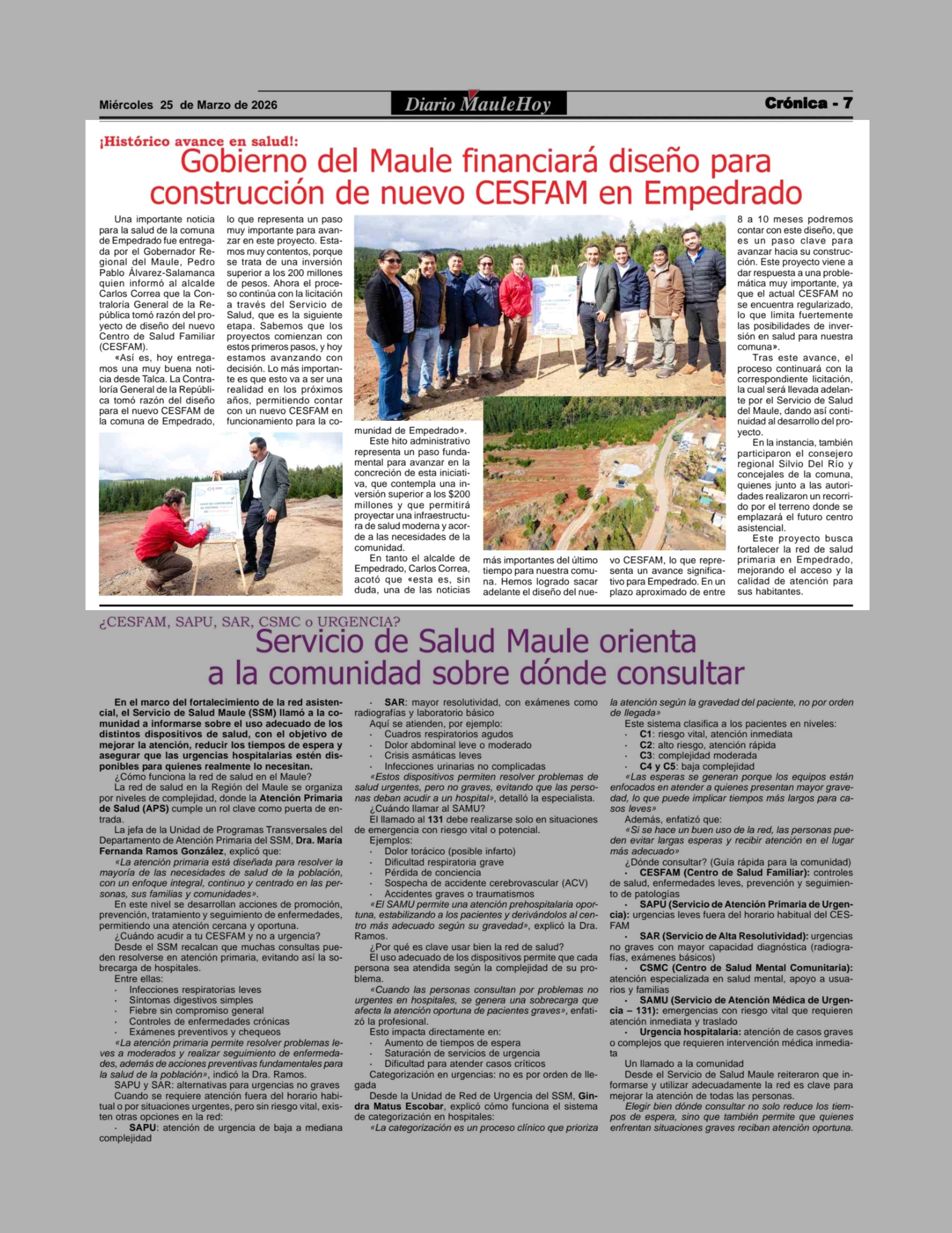 Gobierno del Maule financiará diseño para construcción de nuevo CESFAM en Empedrado 25-03-2026 Maule Hoy |