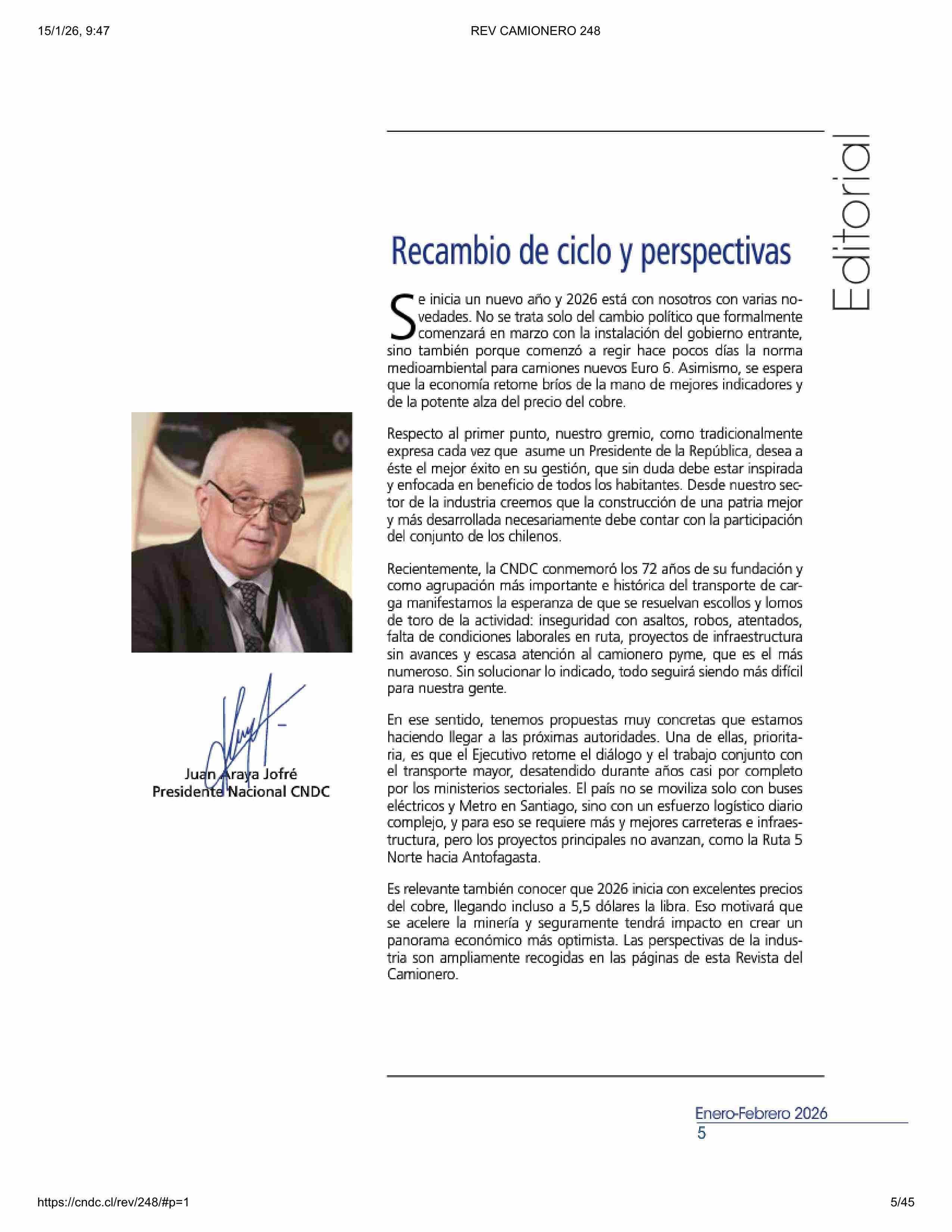 EDITORIAL: Recambio de ciclo y perspectivas 15-01-2026 Revista Del Camionero |