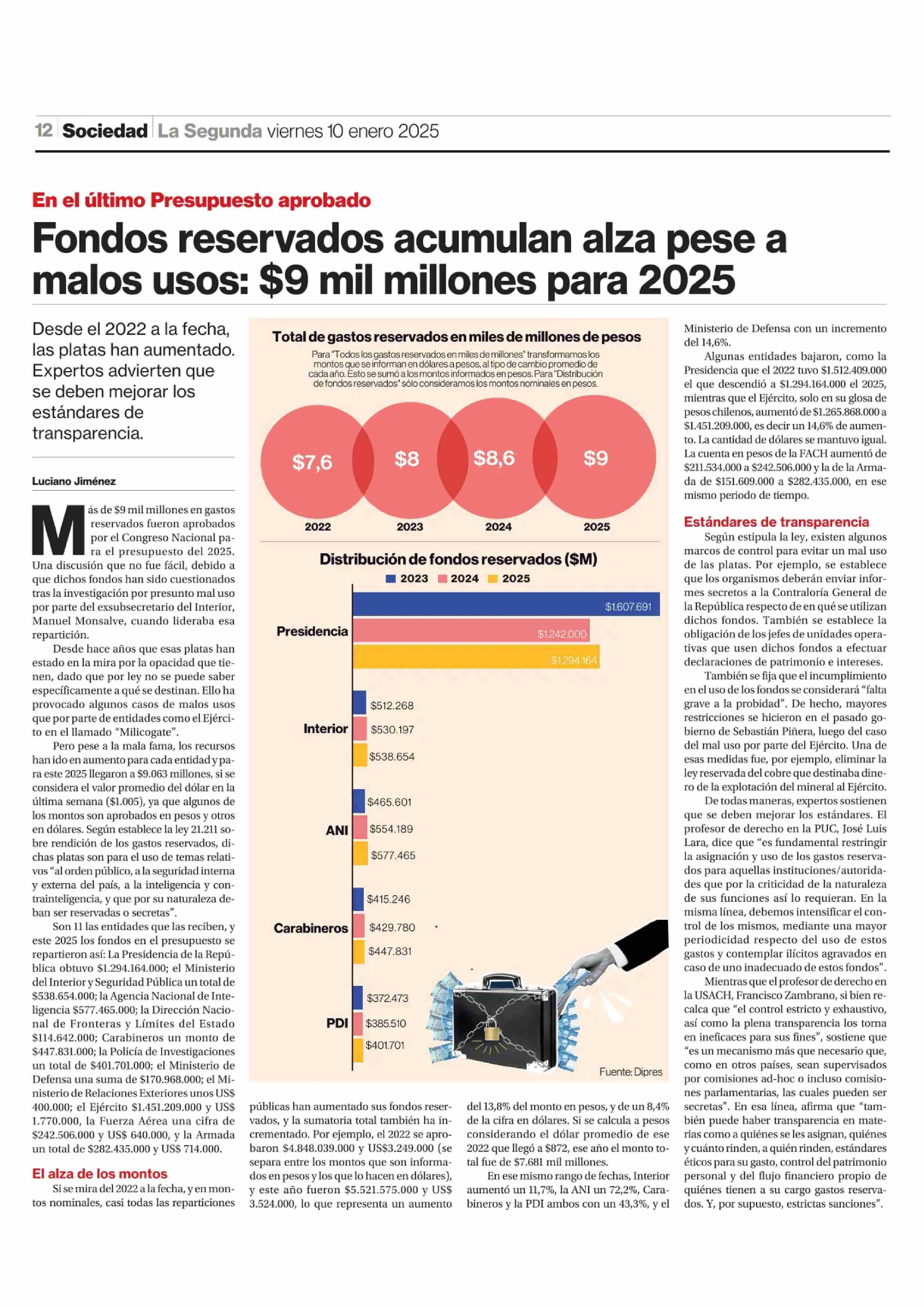 Fondos reservados acumulan alza pese a malos usos: $9 mil millones para 2025 10-01-2025 La Segunda |